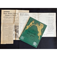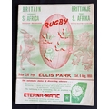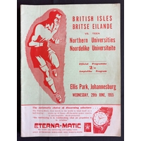 1955 British and I Lions in S Africa Test Rugby Programme: Much sought-after edition from the epic first test at Ellis Park, won 23-22 by the tourists, van der Schyff hooking the vital and none-too-tricky deciding conversion. Not to be missed. VG