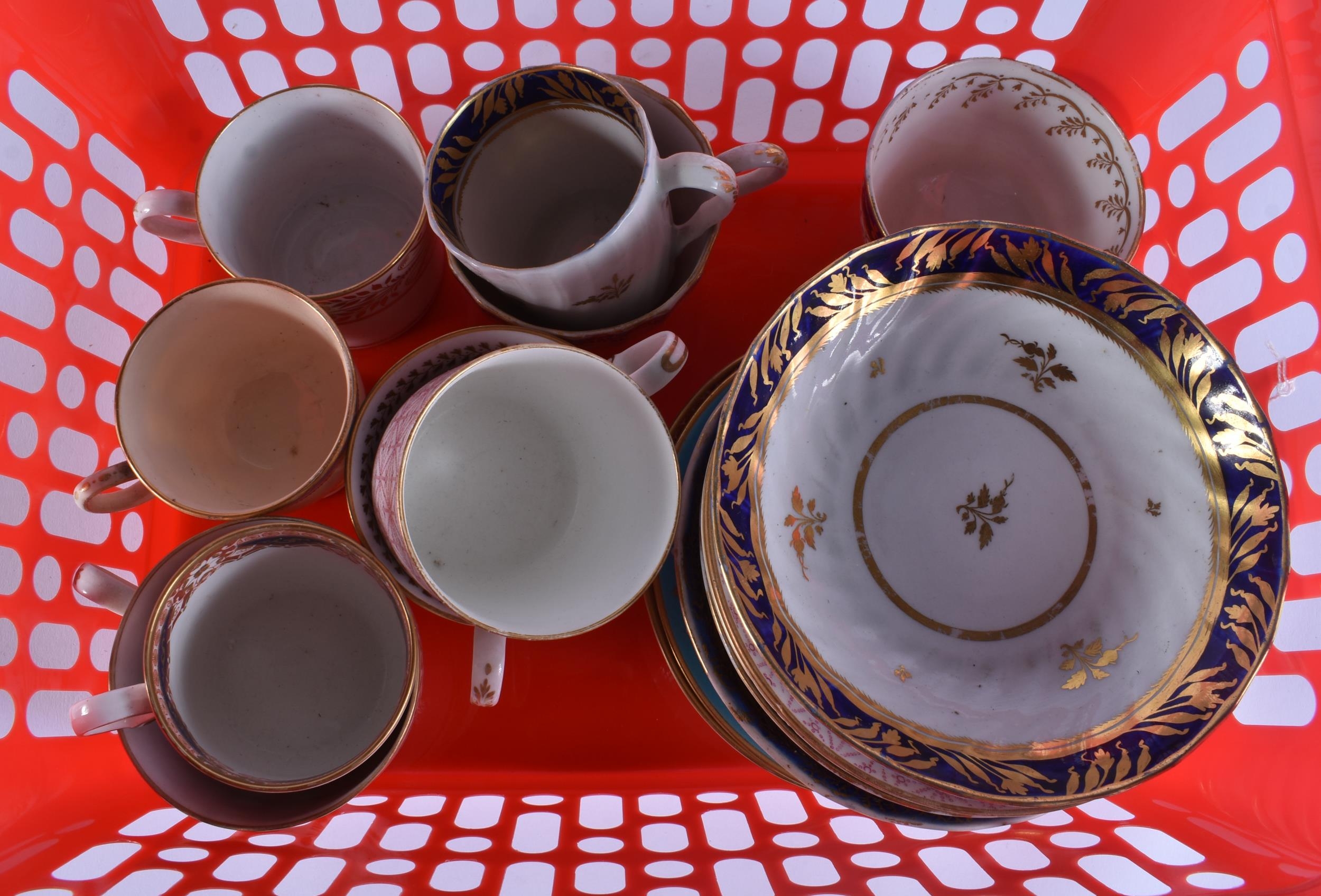 ASSORTED 18TH/19TH CENTURY WORCESTER CUPS AND SAUCERS. (qty)