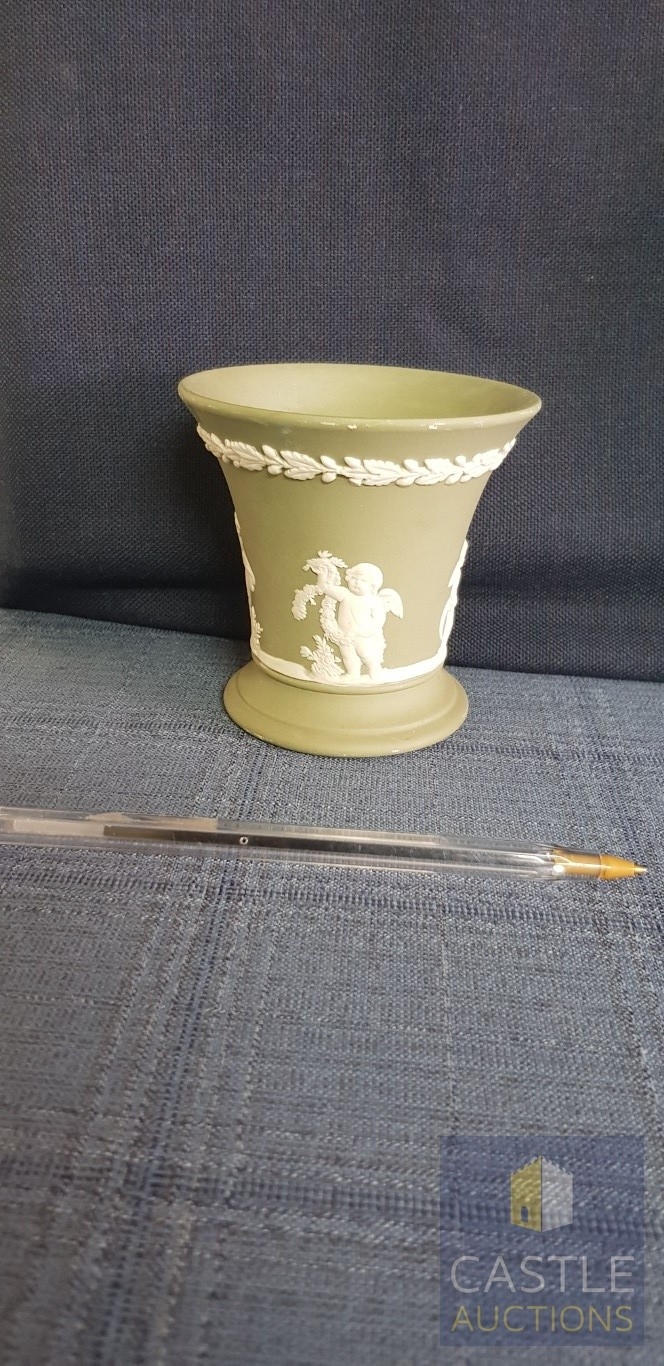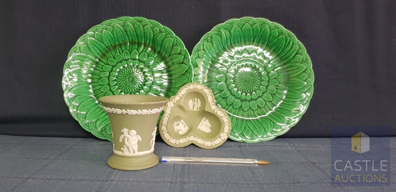 Collectable Wedgwood Jasperware Small Vase & Trinket Dish Together With 2 x Wedgwood Majolica Sunflower Plates.