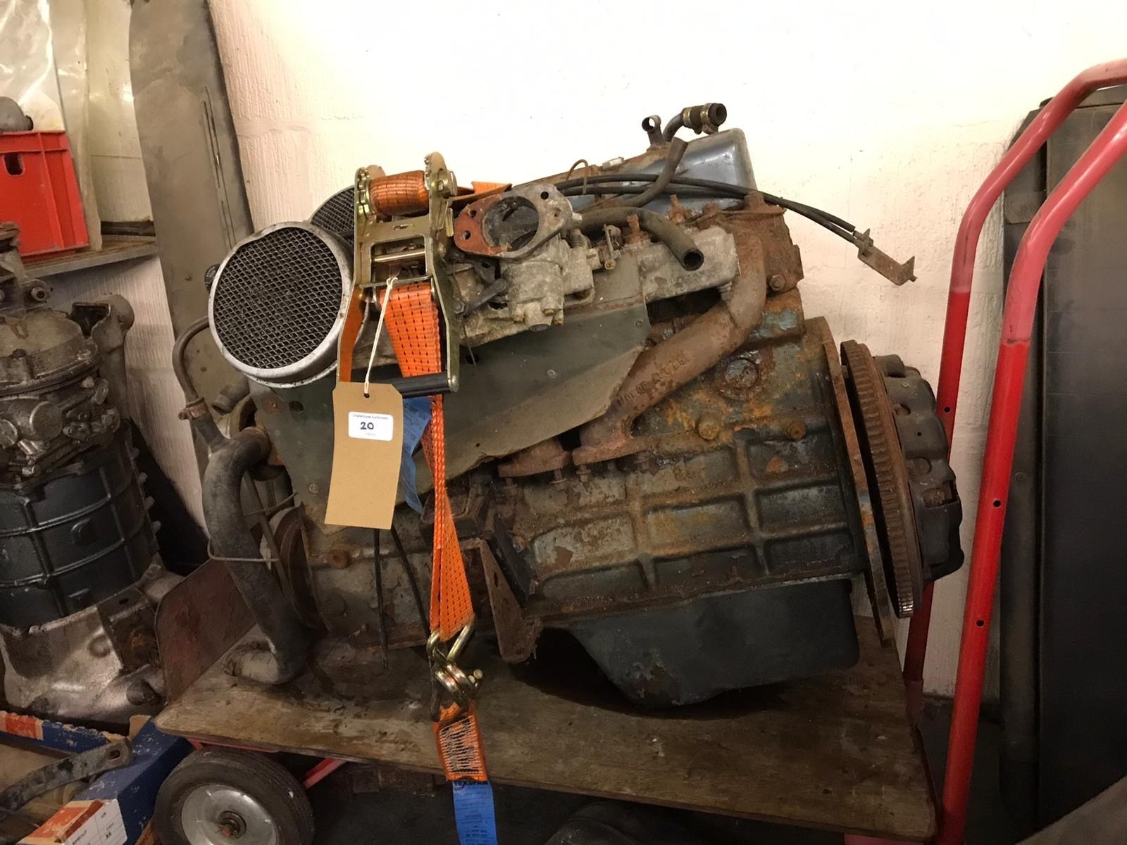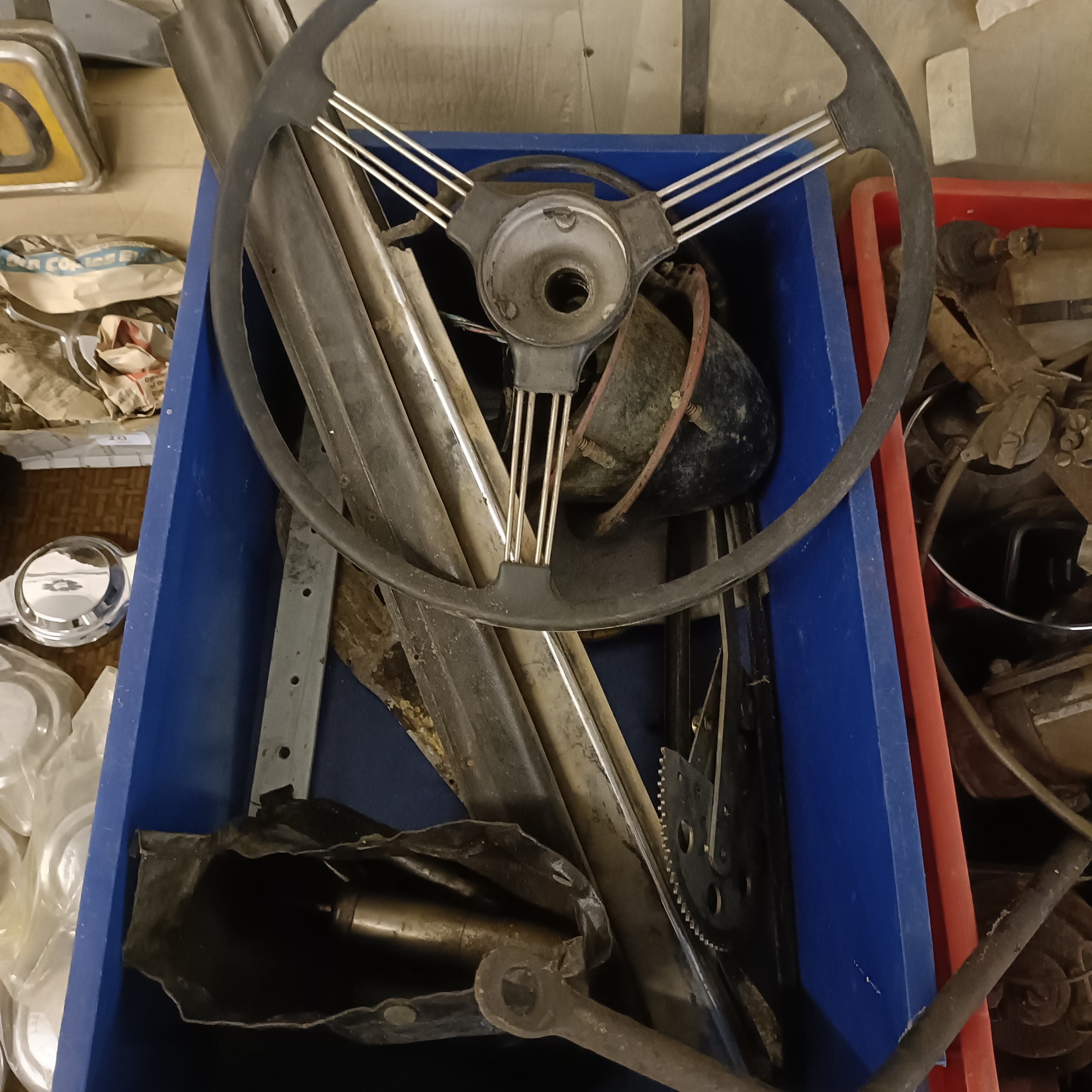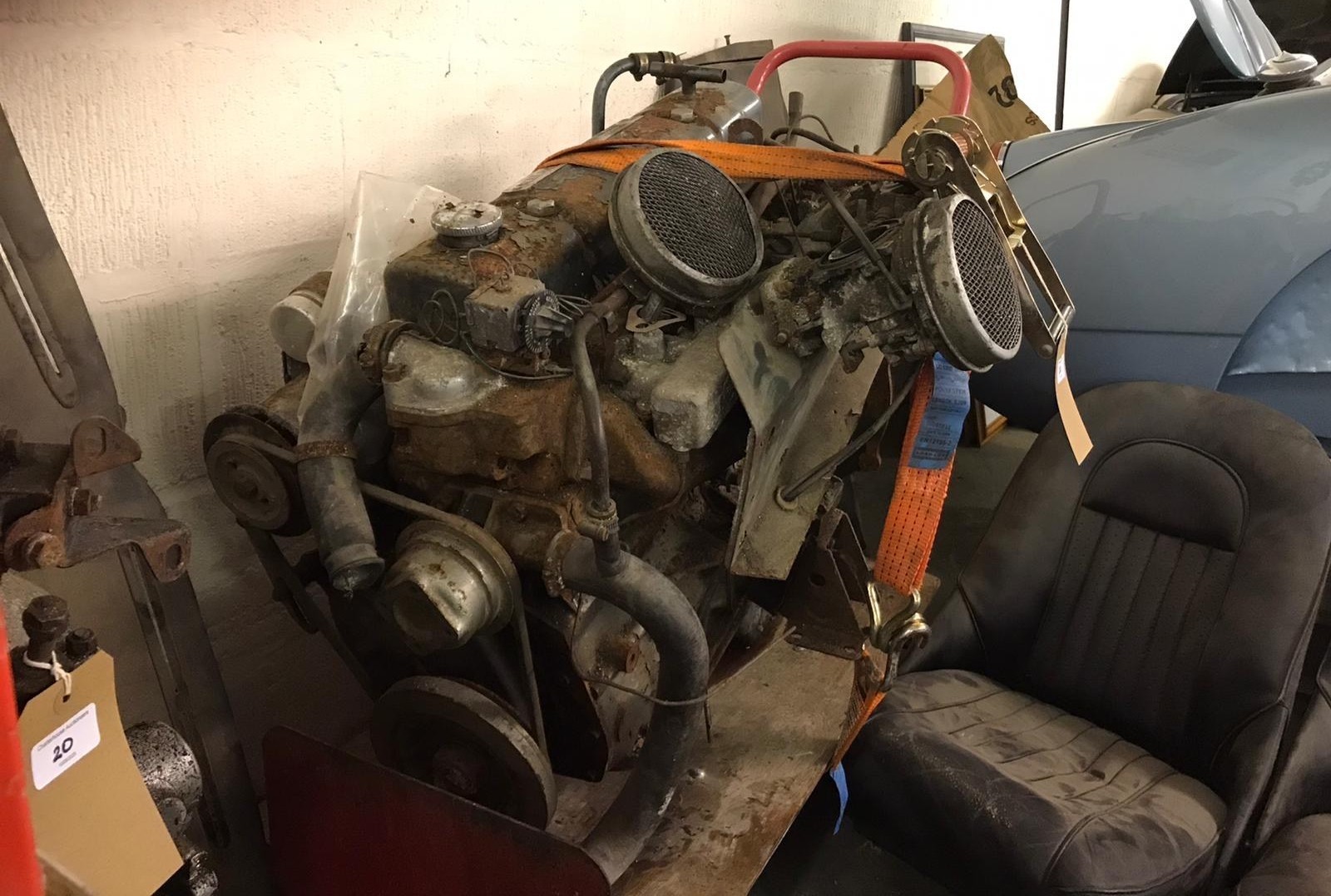 With a large number of Austin-Healey 3000 parts briefly including an engine, gearbox, windscreen, hood frame, seats, trim, radiator, rear axle, walnut dashboard, badges, windows, bumpers, front grill and door cards which were all found in various rooms on numerous shelves throughout the property, please refer to images for an overall view but note there are no wheels