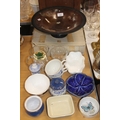 Pedestal bowl, set of six boxed glasses, various ceramics, etc.