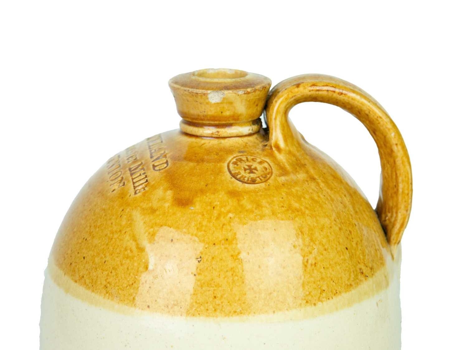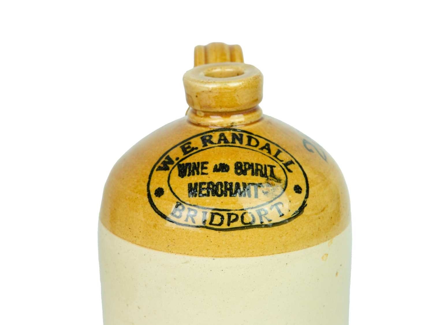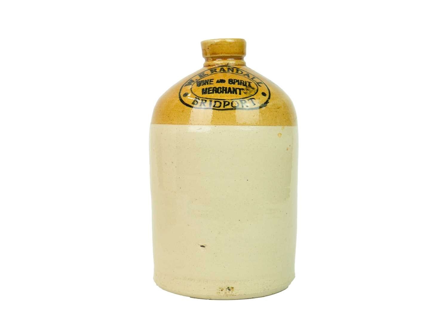 Two stoneware flagons. Buckland Pitminster Mills Taunton, impressed Price Bristol mark, height 30cm, with a W.E. Randall Wine and Spirit Merchant of Bridport flagon (2).