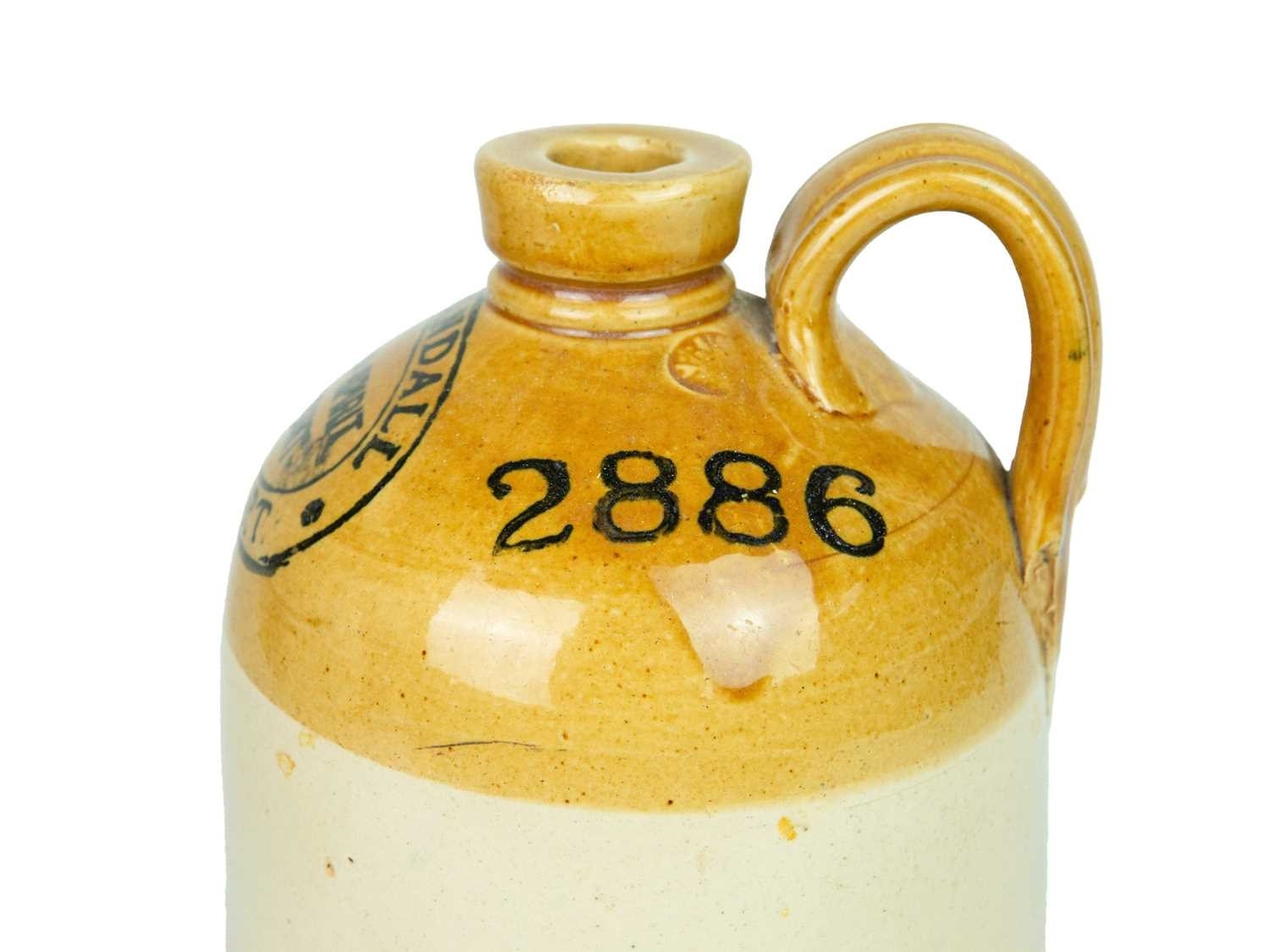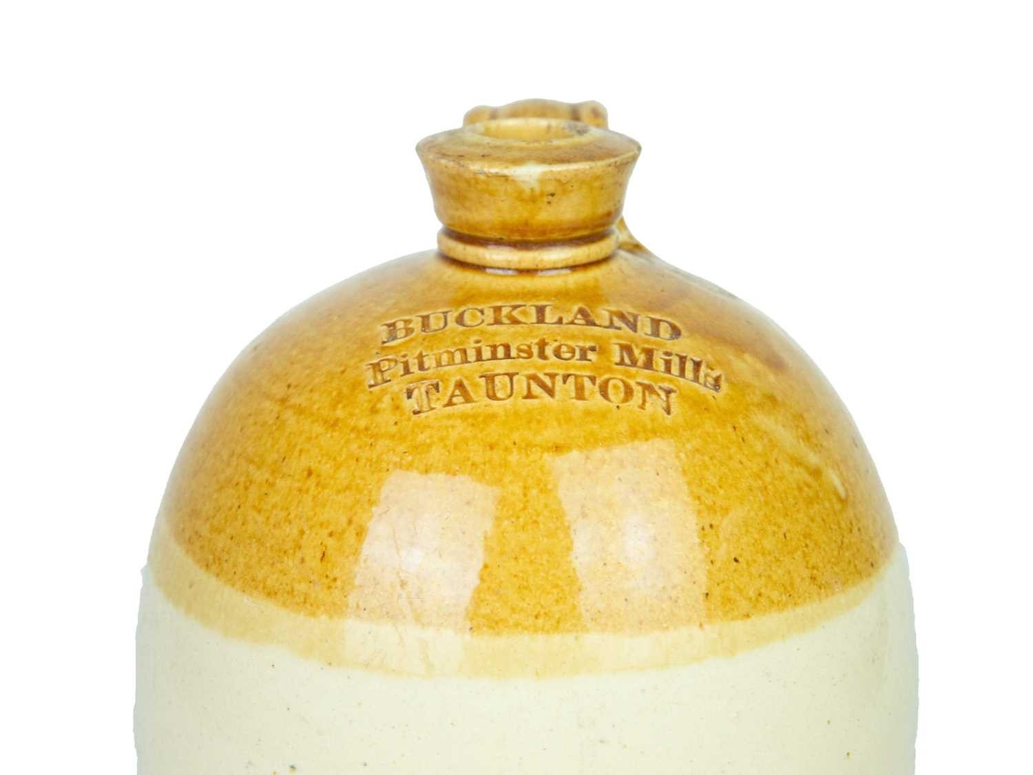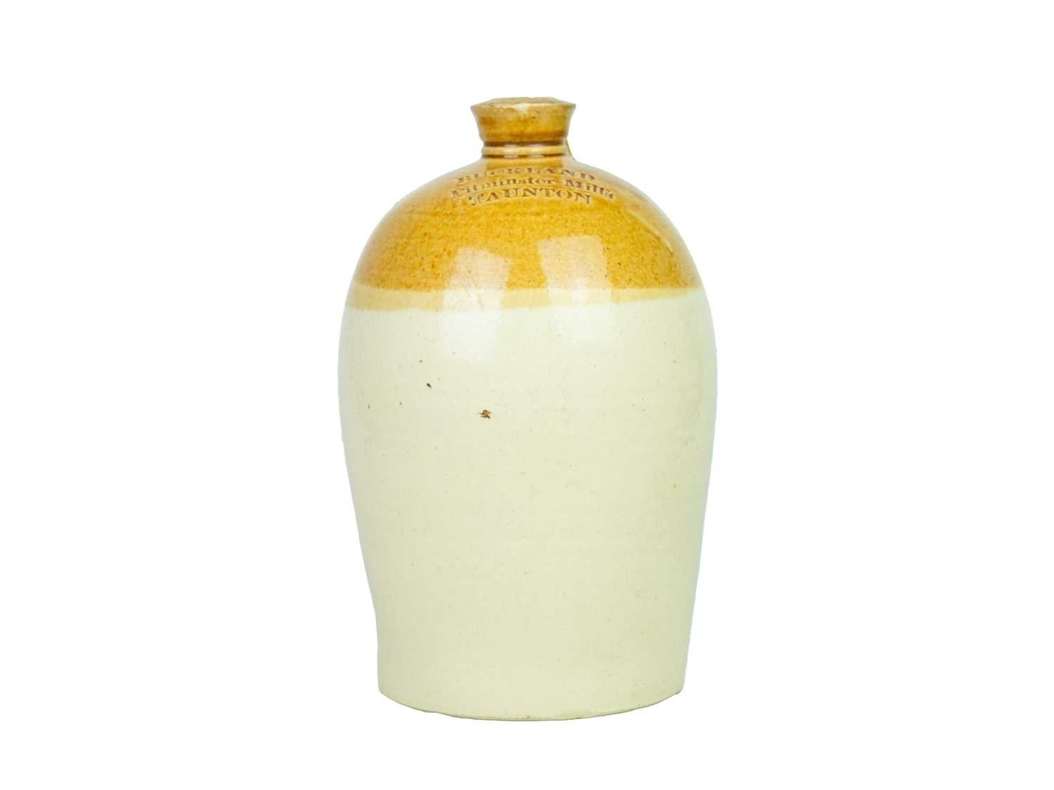 Two stoneware flagons. Buckland Pitminster Mills Taunton, impressed Price Bristol mark, height 30cm, with a W.E. Randall Wine and Spirit Merchant of Bridport flagon (2).