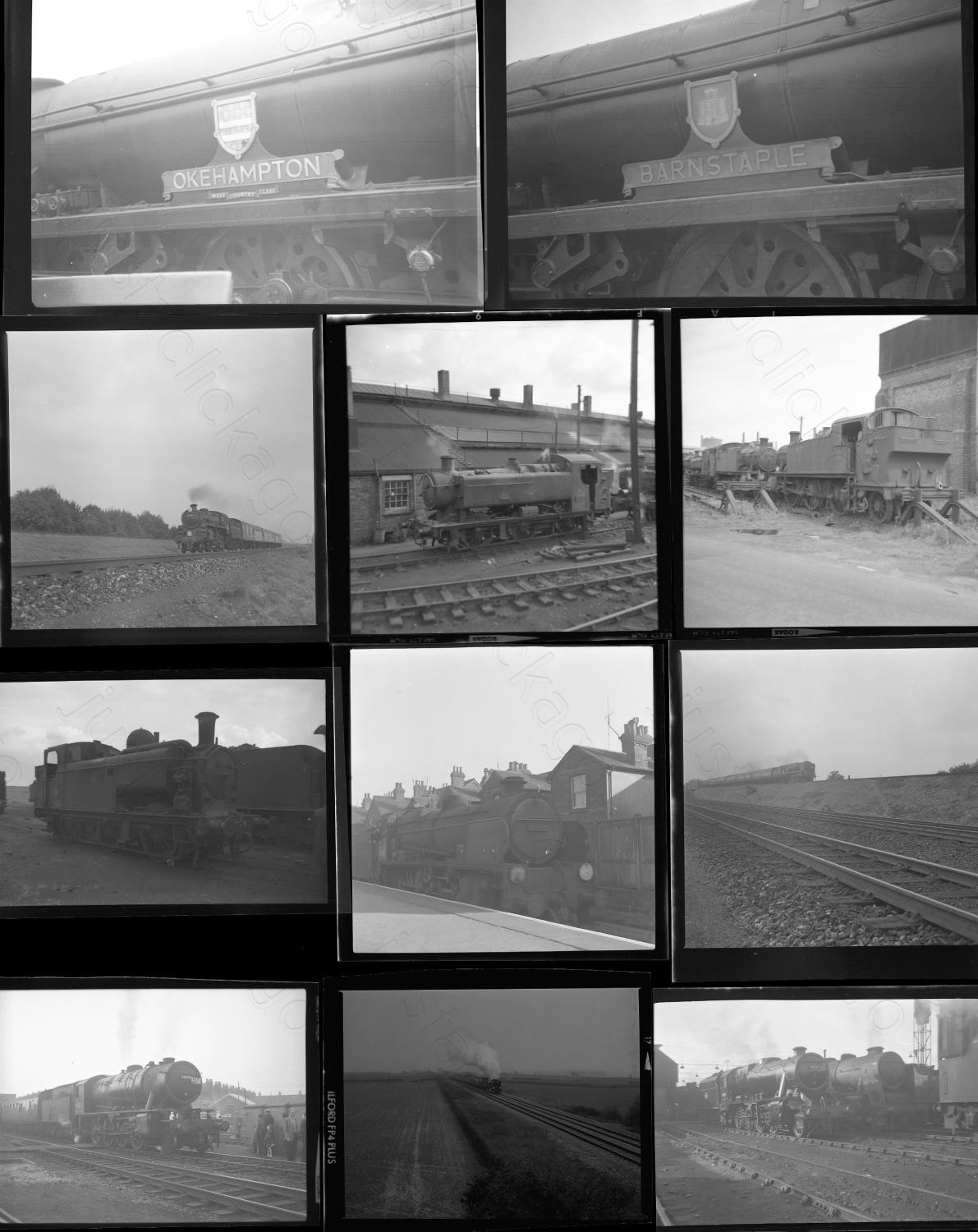 Railway. BR Steam. A small selection of mixed quality negatives. There are approx. 34, mixed sizes, black and white negatives, including one 4" x 3" glass plate. Approx. half of the negatives are nameplates in situ, the rest are mainly ex GWR and Southern steam with a couple of BR Standards mixed in. There are some basic captions and they are sold with copyright. Sample illustrated.