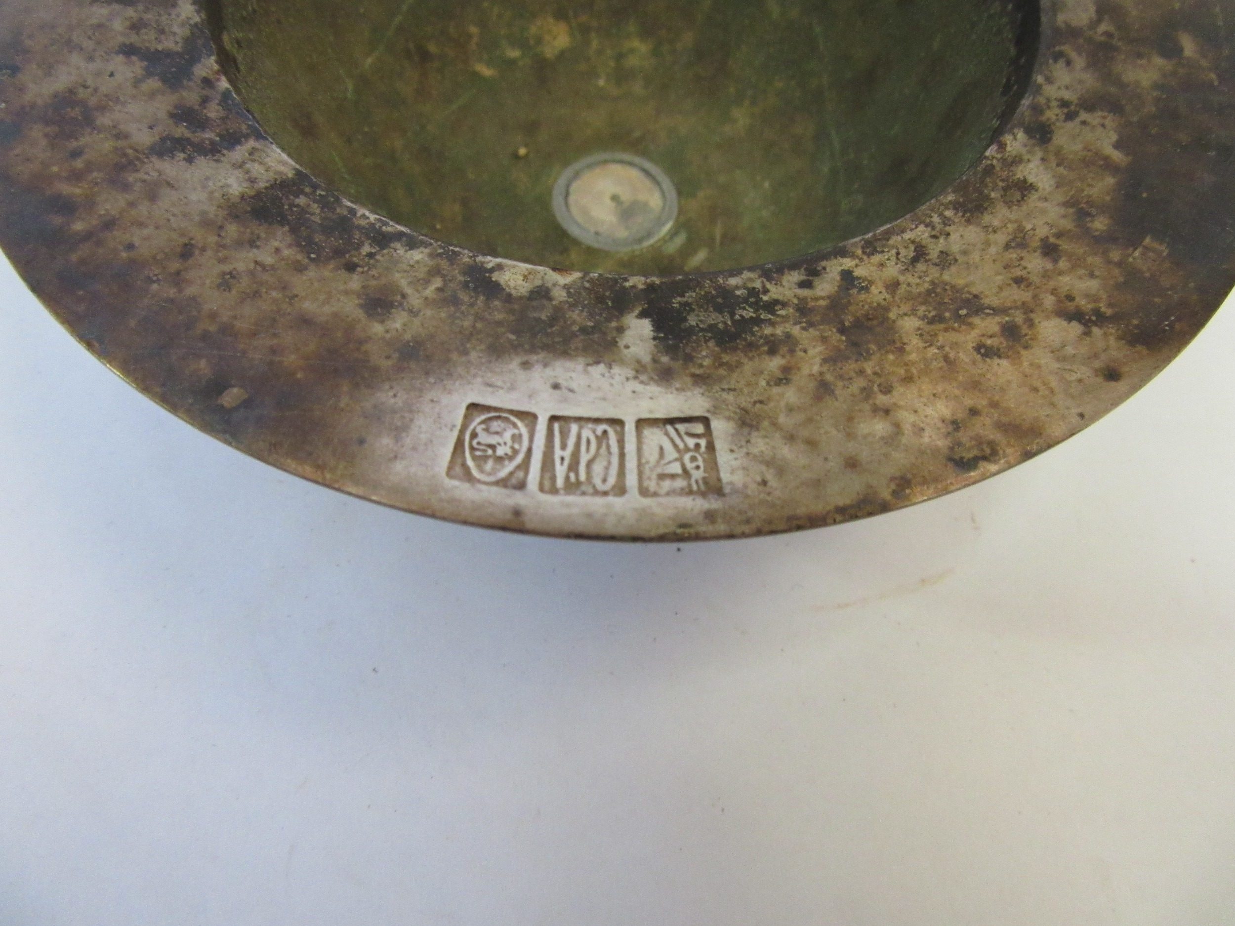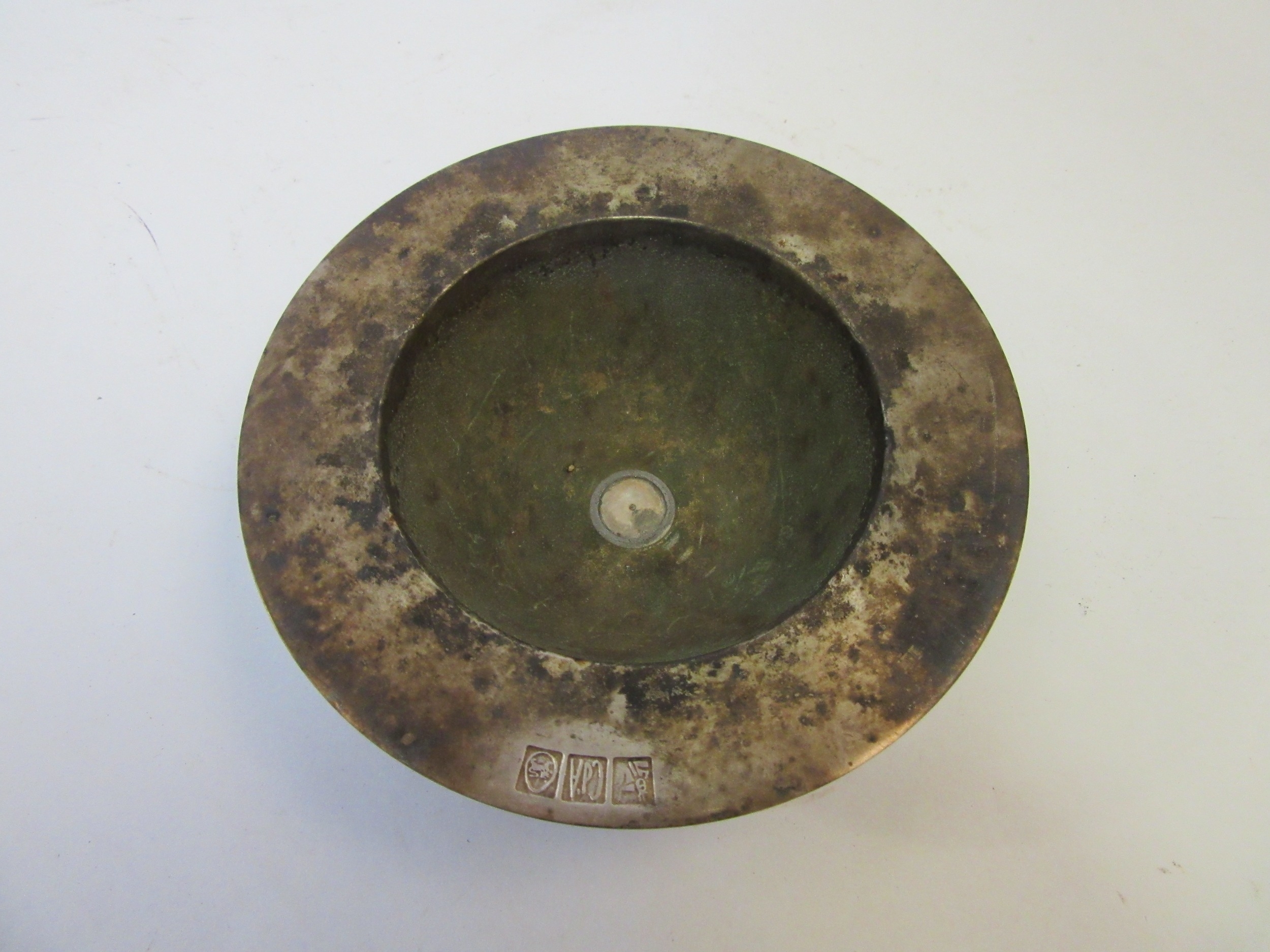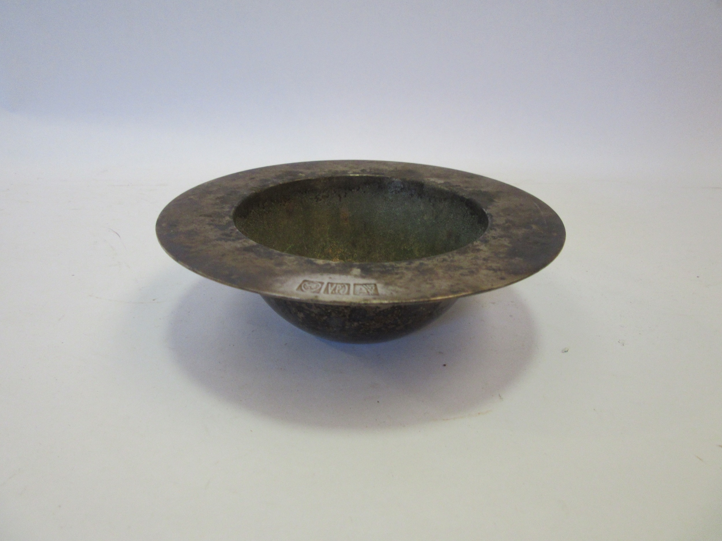 A white metal bowl, marked, 13cm diameter
