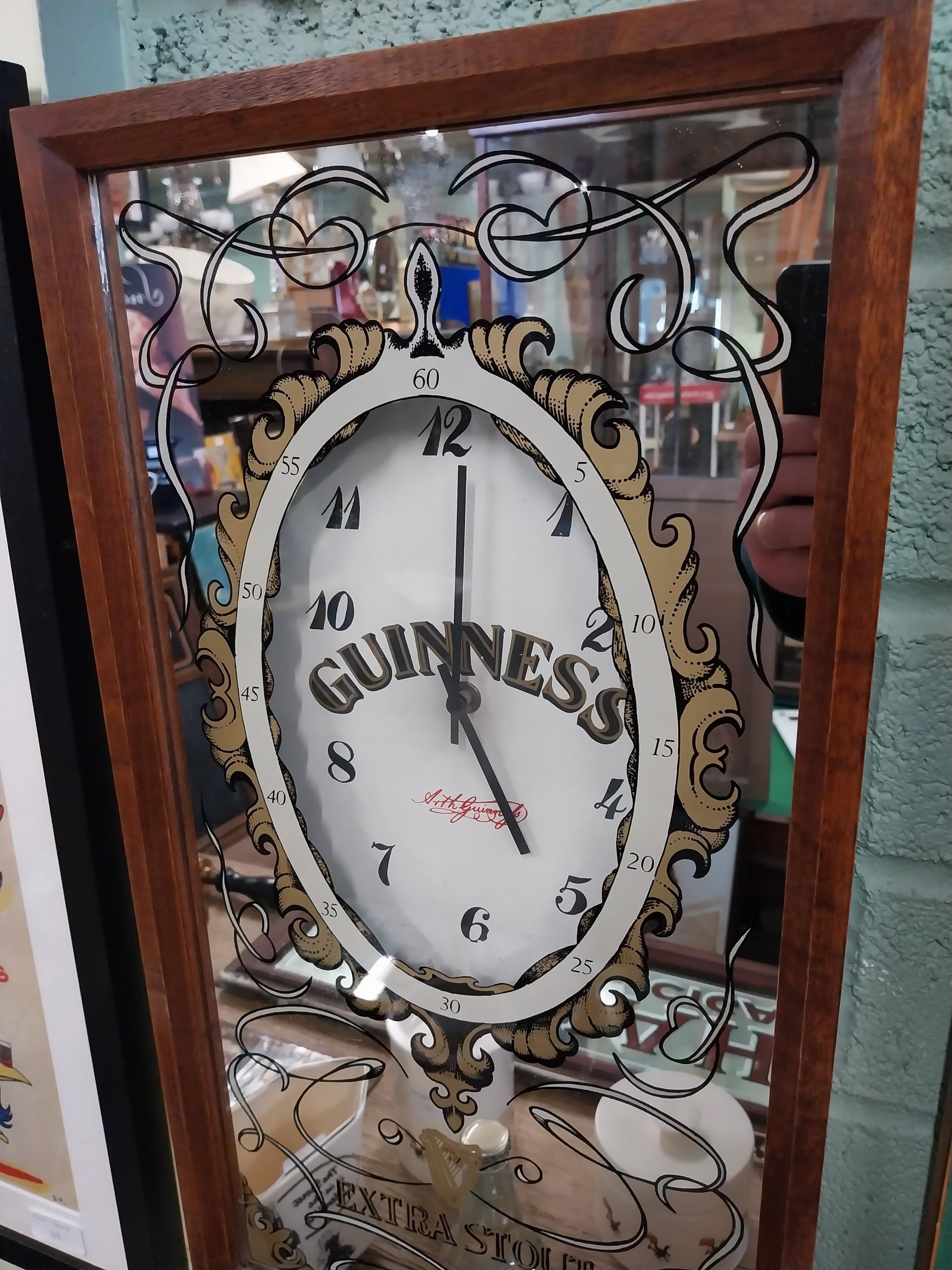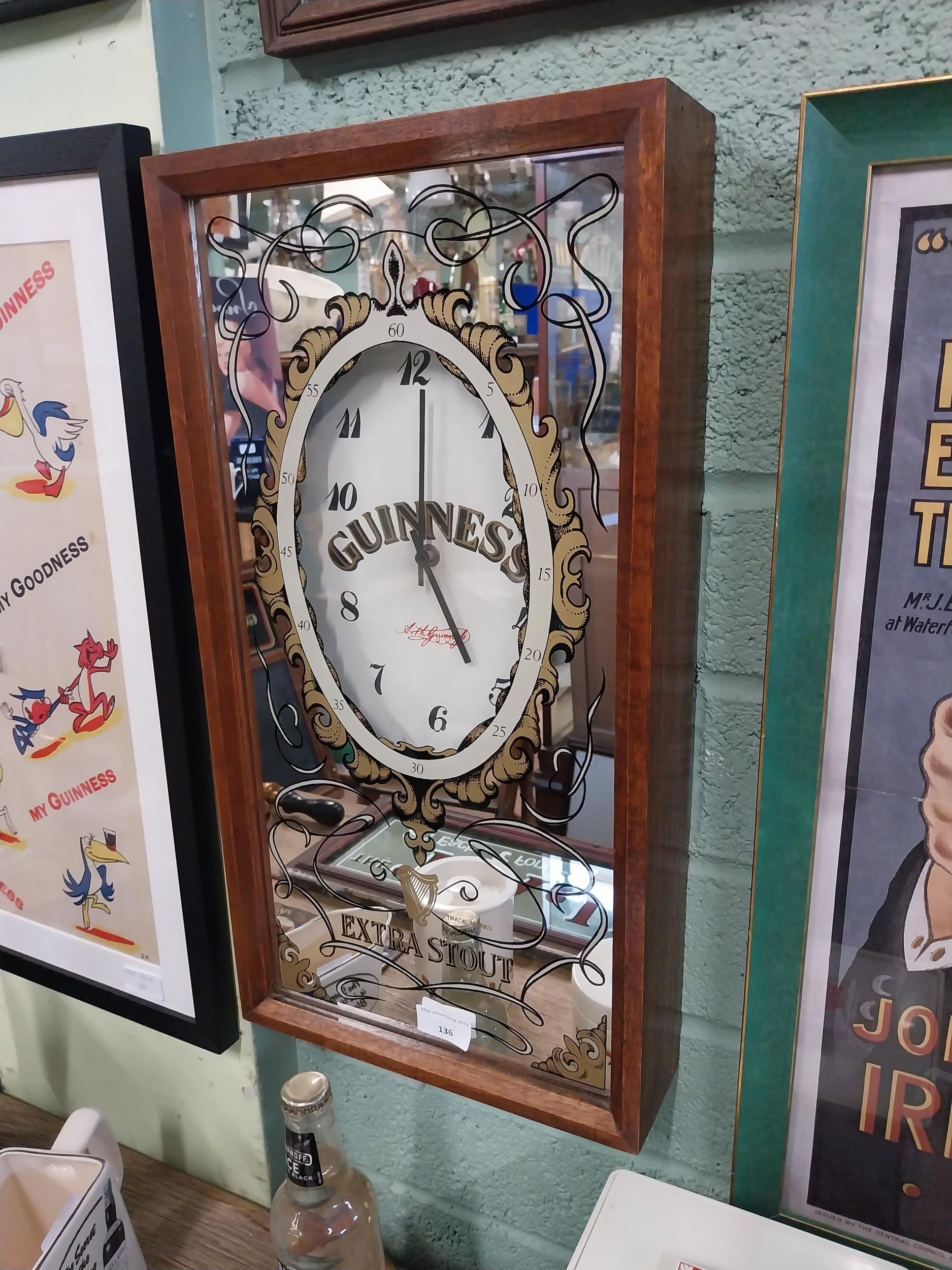 Guinness advertising clock in mahogany frame with mirrored g...