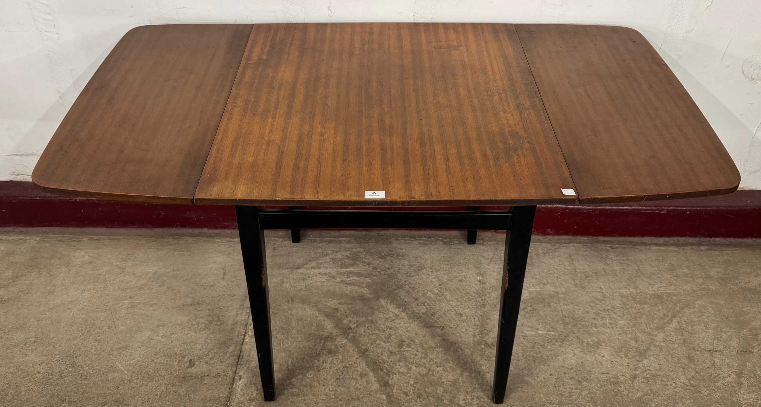 A G-Plan Librenza tola wood and black drop-leaf table