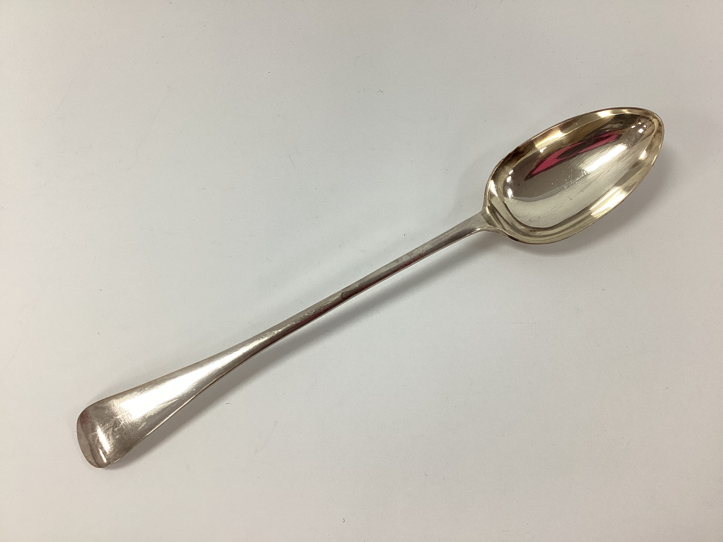 A Hallmarked Silver Old English Pattern Basting Spoon, EV, Sheffield 1930, 33cm long (170grams).