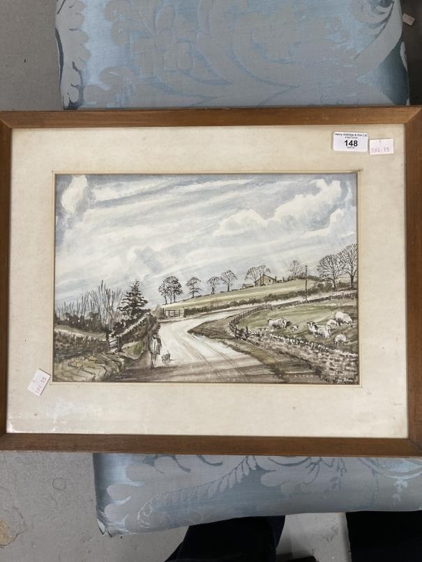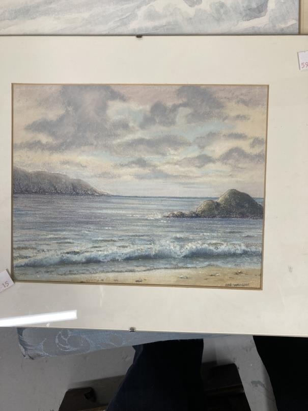 F. H. Ayton: 20th cent. Watercolour on paper pastoral scene, signed bottom right, framed and glazed. 13½ins. x 9½ins. Plus Zoe Wright coastal scene, signed bottom right, framed and glazed. 9½ins. x 7½ins.