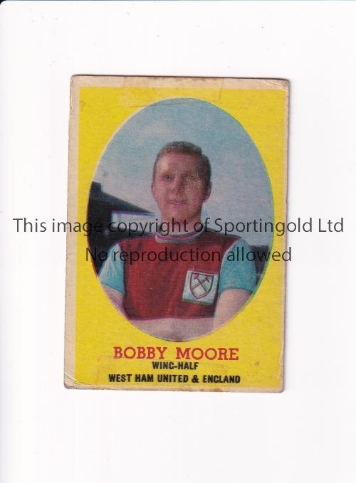 BOBBY MOORE 1962 ROOKIE TRADE CARD Trade card issued by Bazooka, number 20, very slight marks and the top and bottom where tape has been removed. Generally good