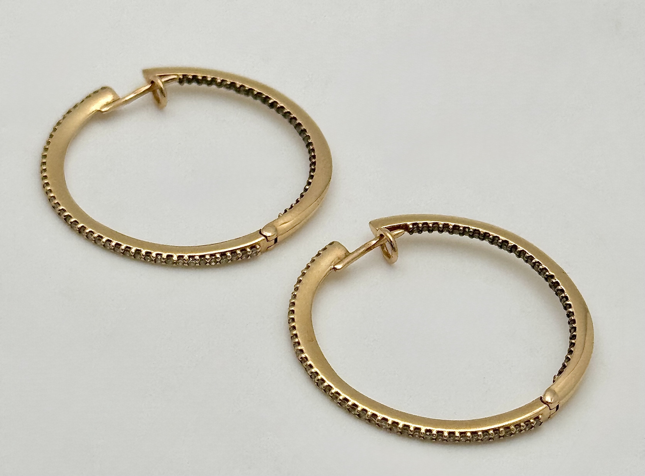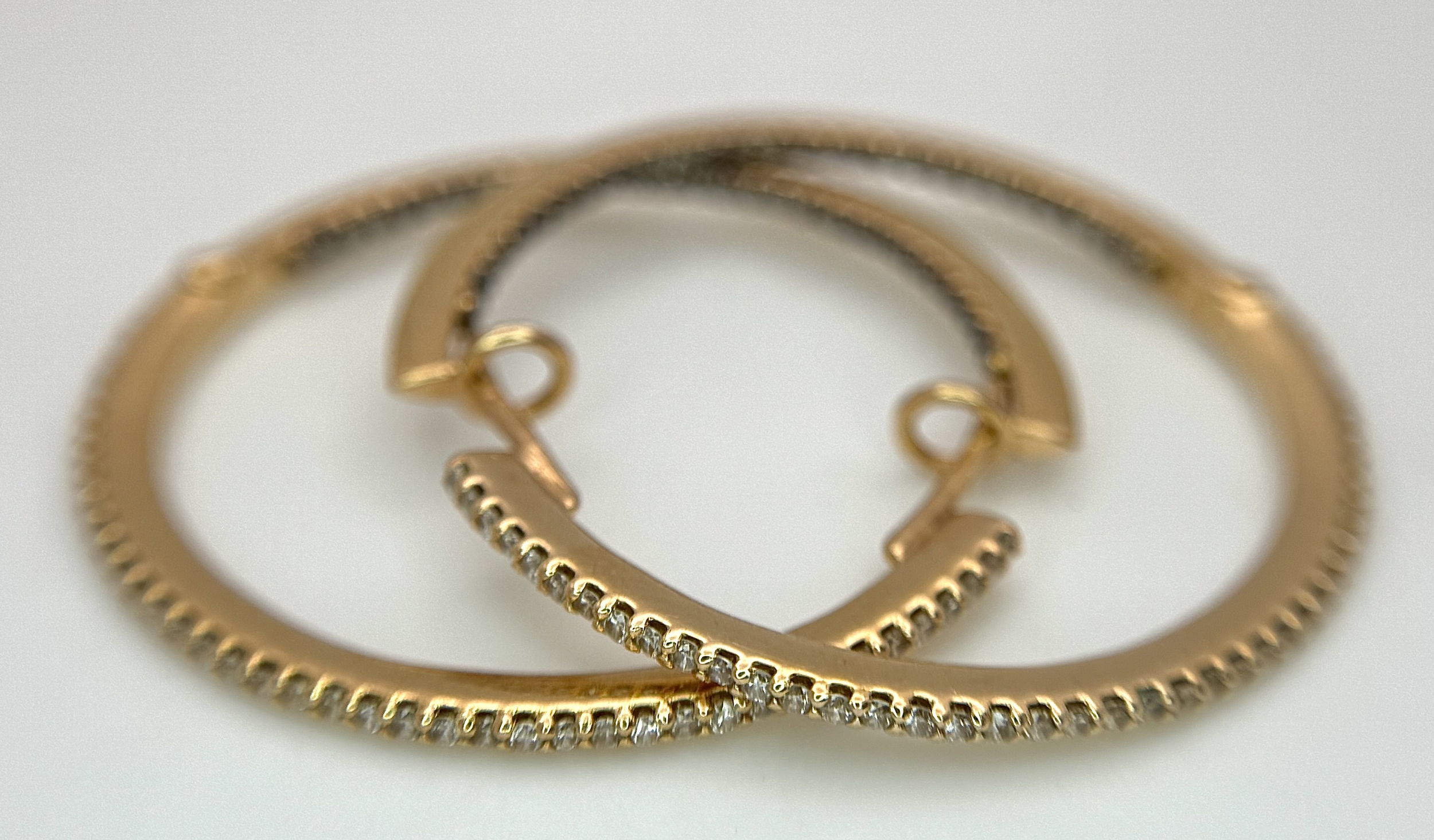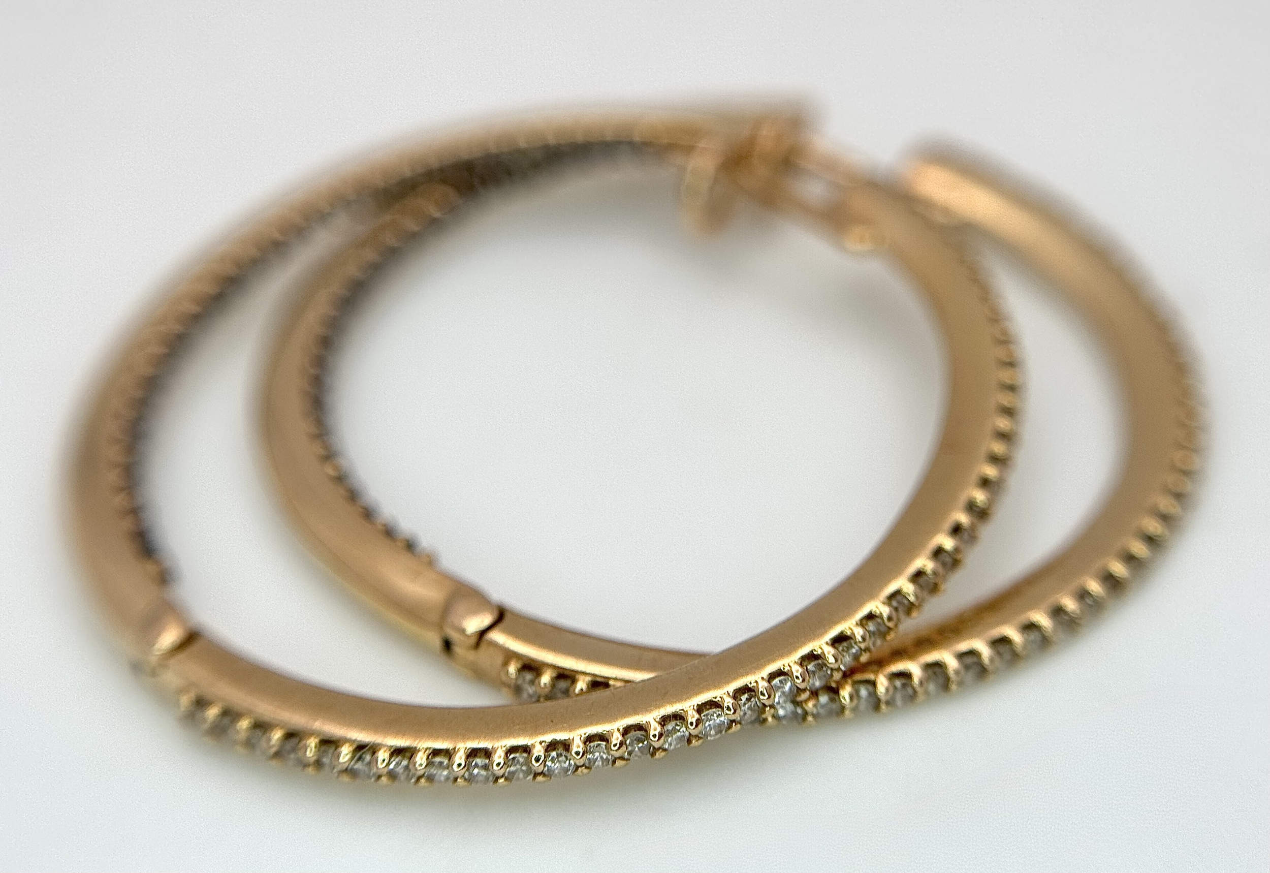 A Pair of 18K Yellow Gold Diamond Hoop Earrings set with 140 Round Brilliant Cut Diamonds - 0.70ctw, having G-H colour and VS2-SI1 clarity. 6.25g total weight. Ref: 96341