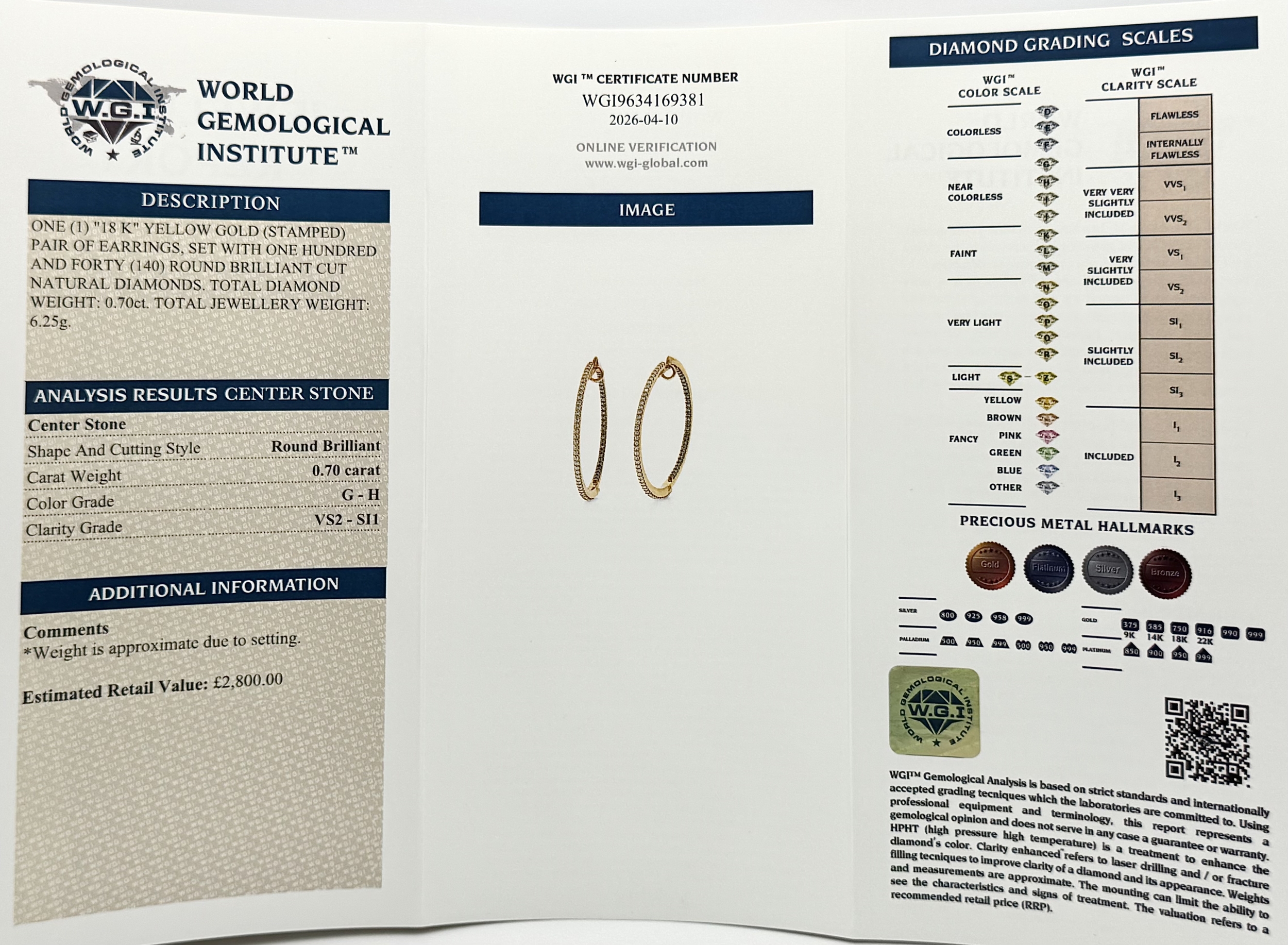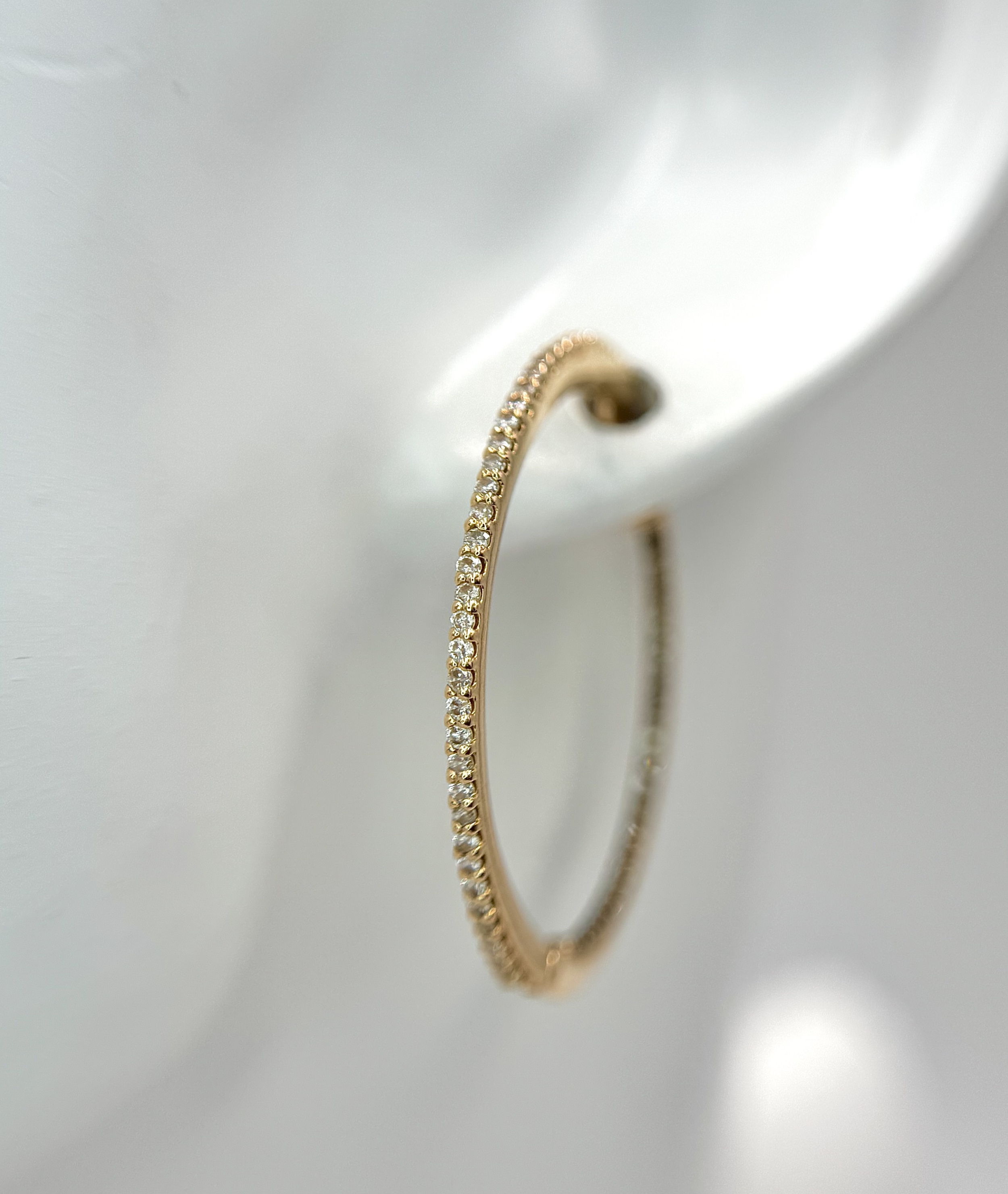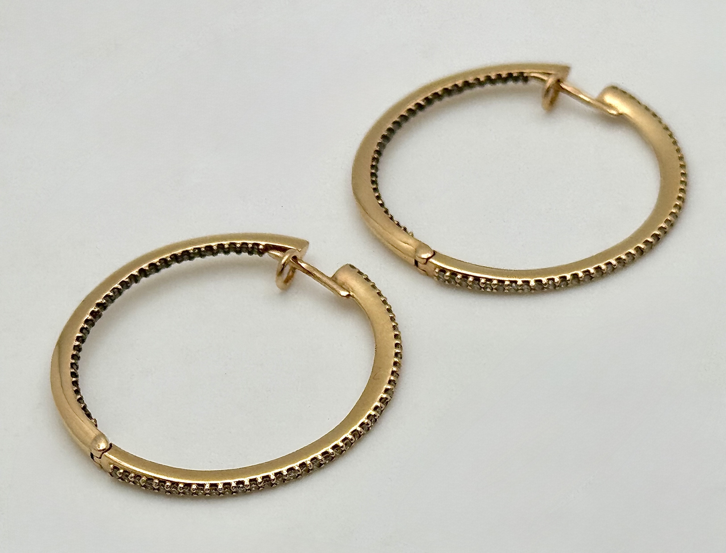 A Pair of 18K Yellow Gold Diamond Hoop Earrings set with 140 Round Brilliant Cut Diamonds - 0.70ctw, having G-H colour and VS2-SI1 clarity. 6.25g total weight. Ref: 96341