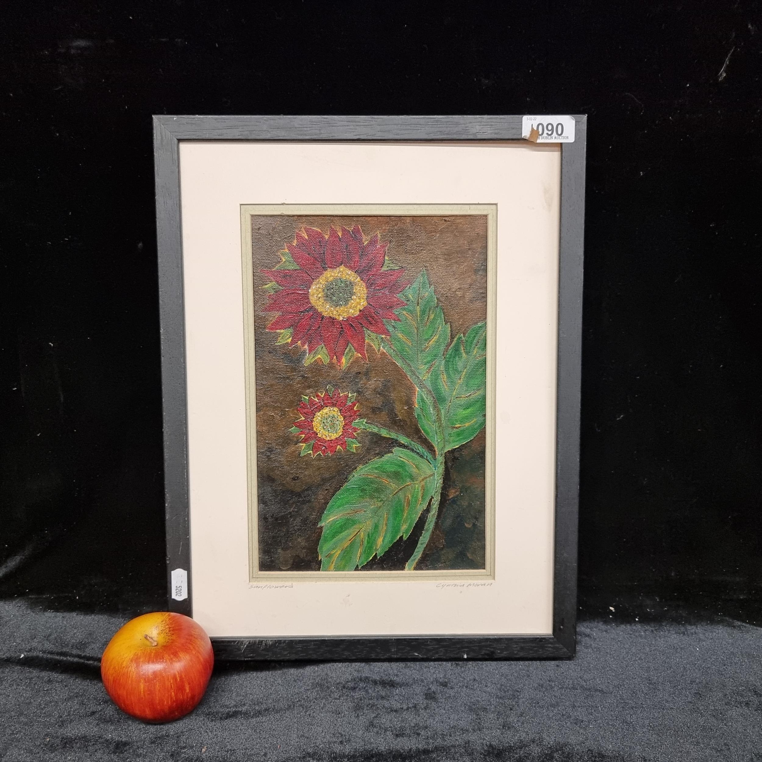 A good sized original oil on canvas by the well established Irish painter and sculptor Cynthia Moran Killeavy titled 'Sunflowers', the artist has made the unusual choice to render the sunflowers in red rather than the traditional yellow.