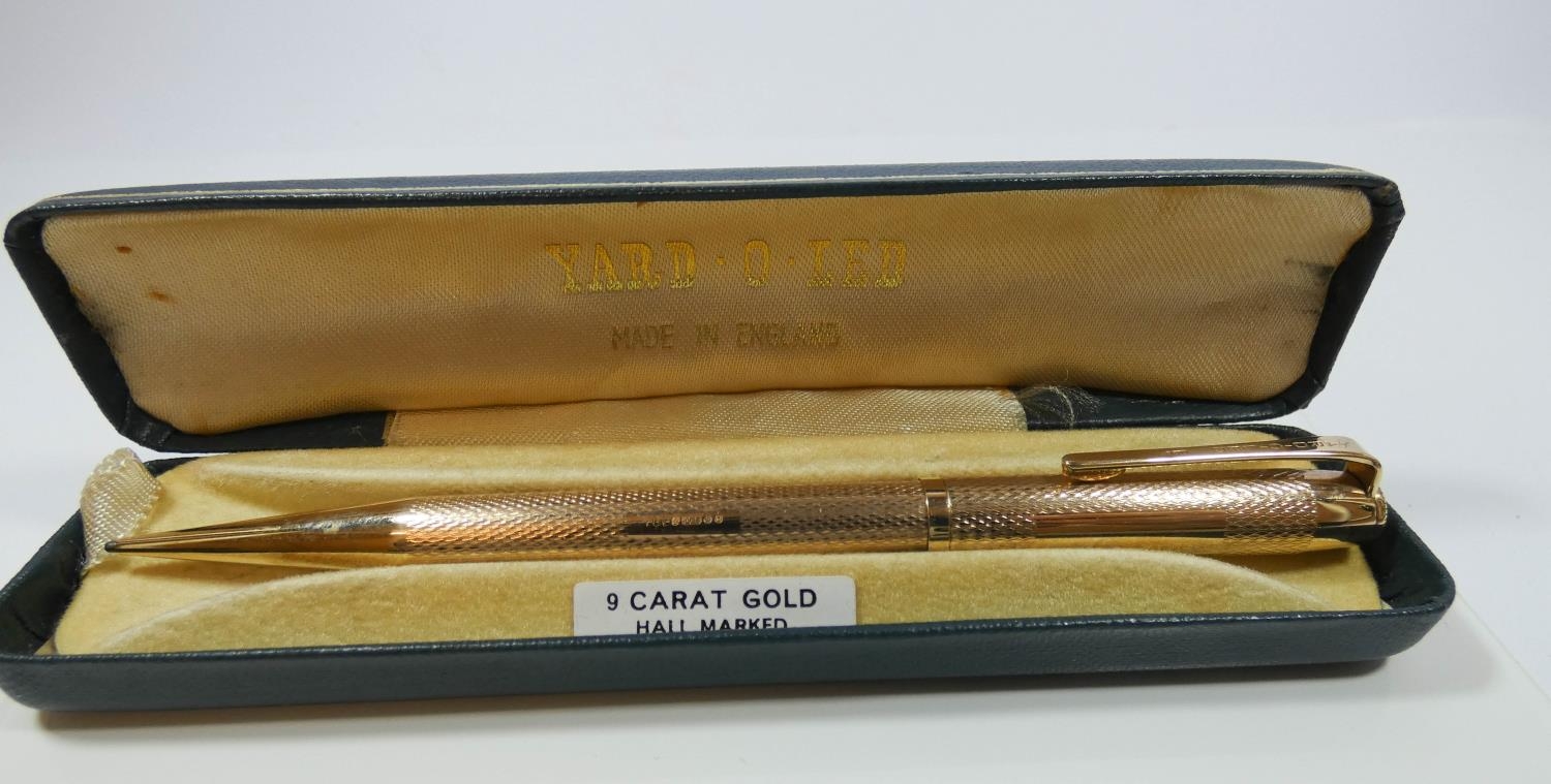 9ct gold Yard-O-Led propelling pencil in original box, excellent condition, gross weight all in 27.8gms