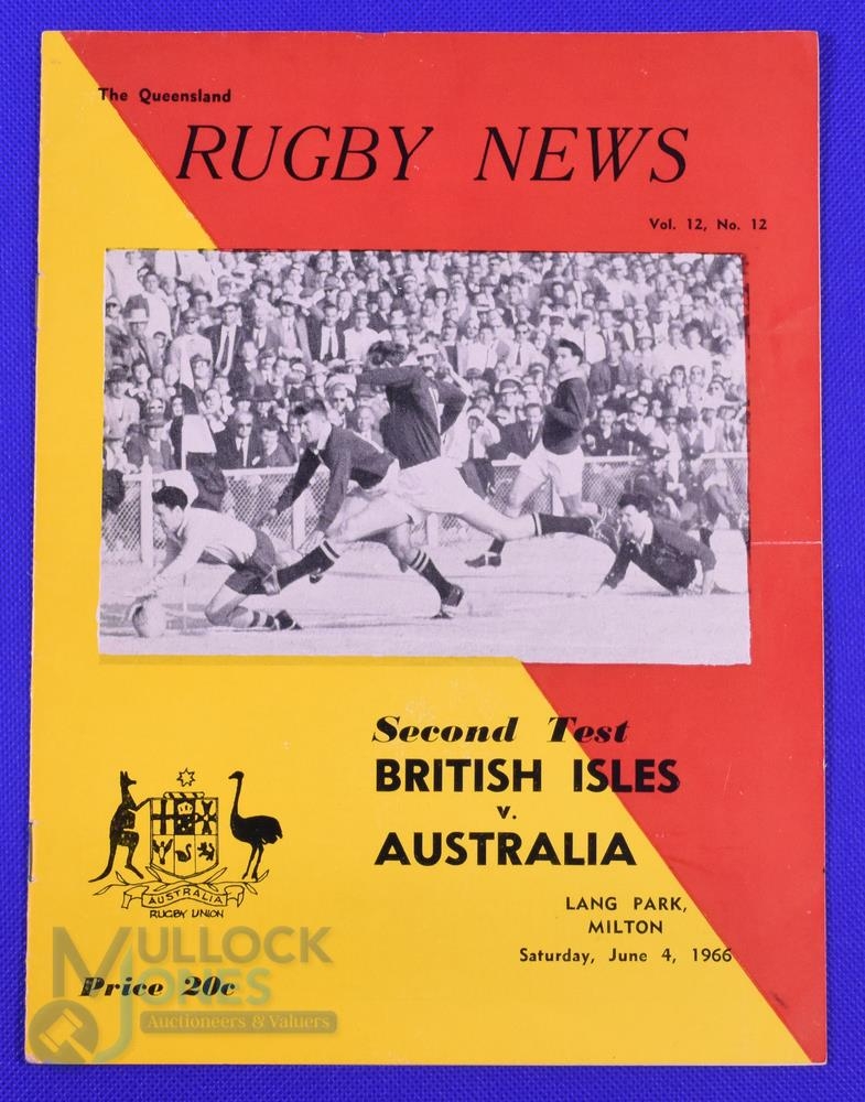 1966 British and I Lions 2nd Test v Australia Rugby Programme: Less-often seen Brisbane issue from the second test, a big win for the Lions. Bright, clean and detailed. VG