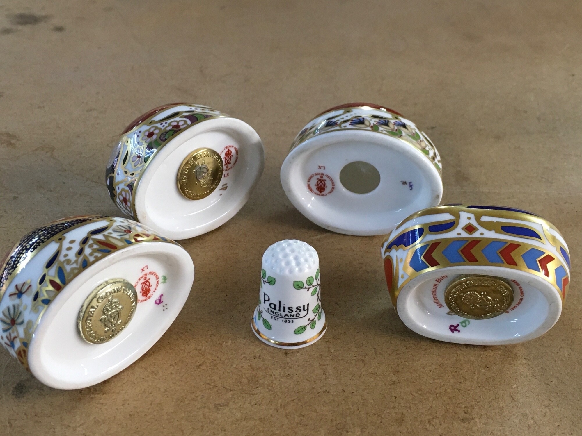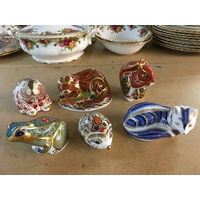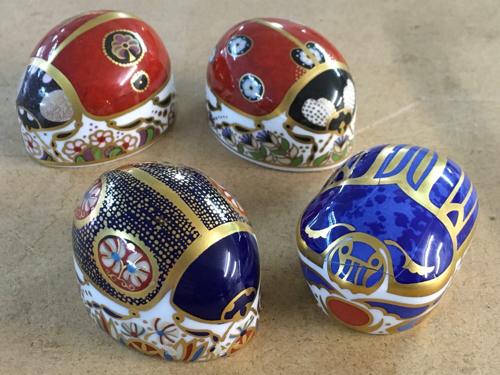 Four Royal Crown Derby paperweights in the form of beatles, including Scarrab Beatle - with damage.