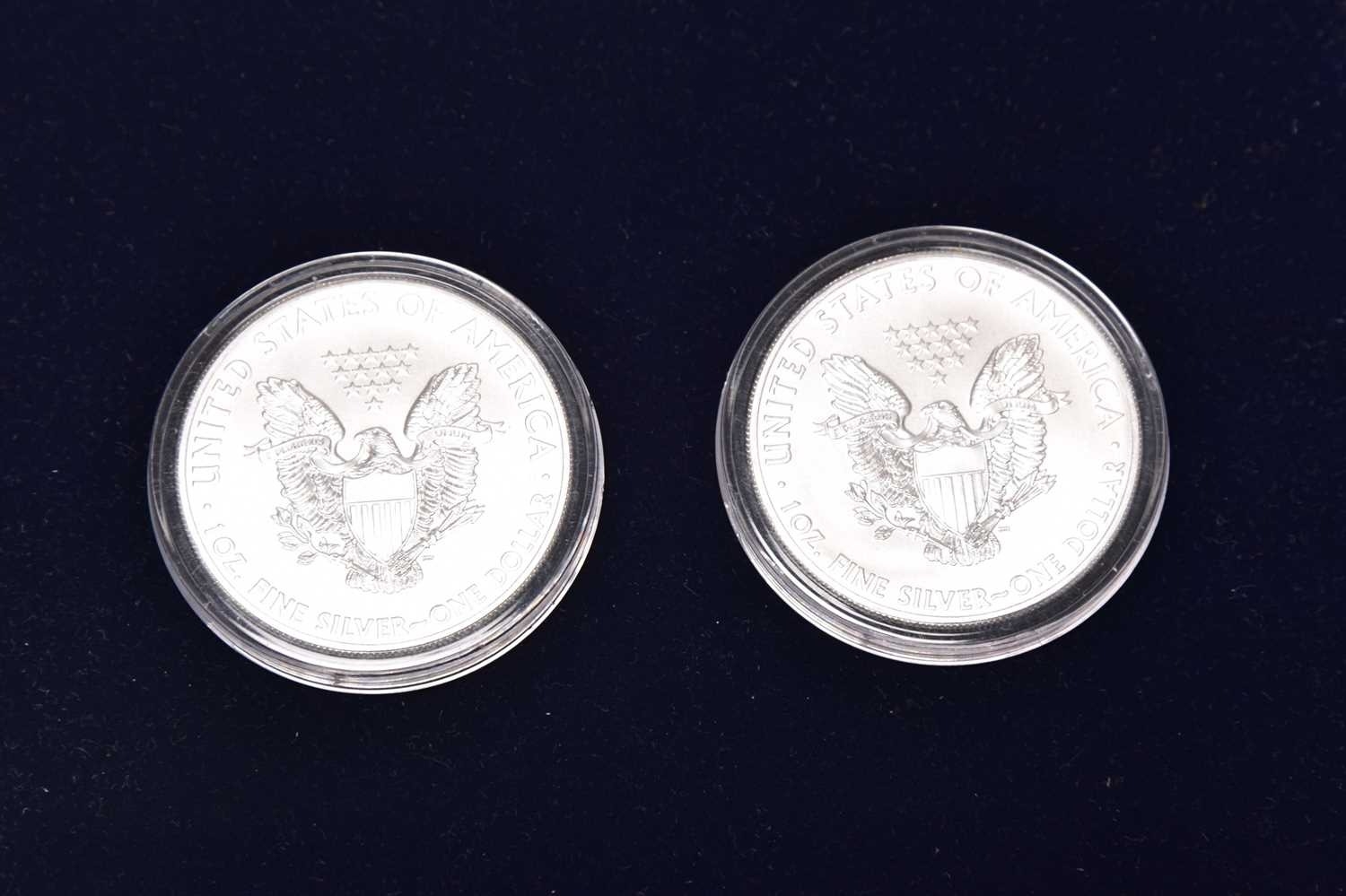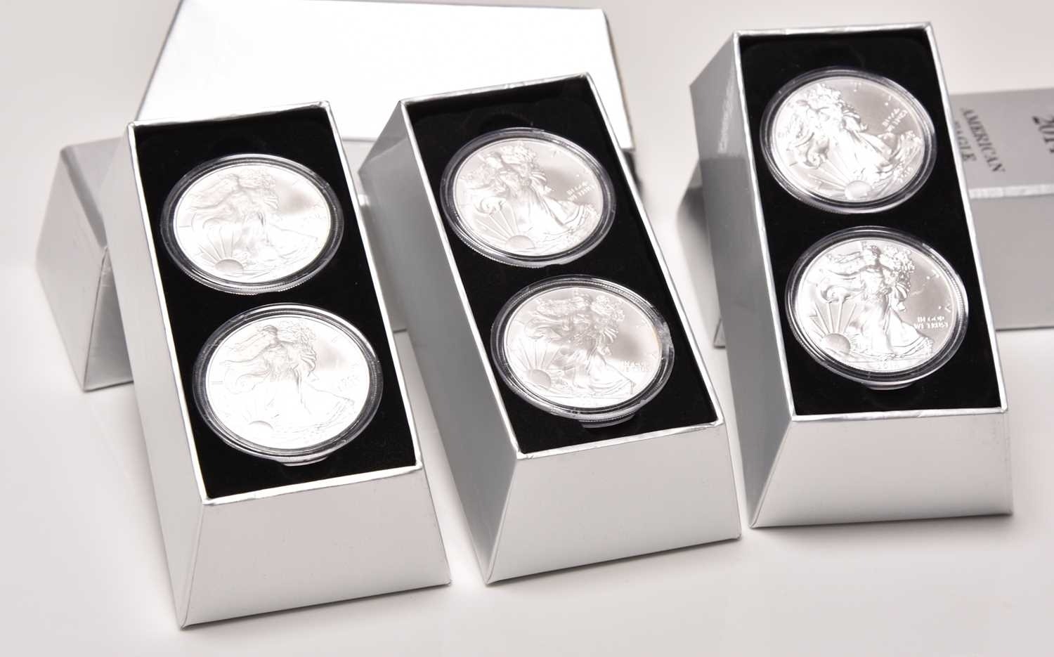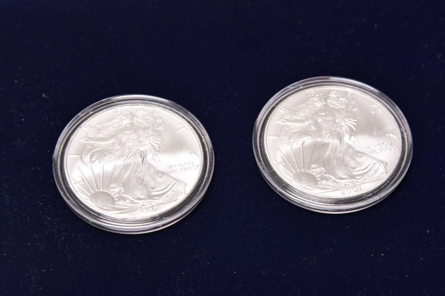 USA, six proof silver 1oz fine silver American Eagle silver dollars, dated 2007, 2008 and 2014, all within capsules (6)