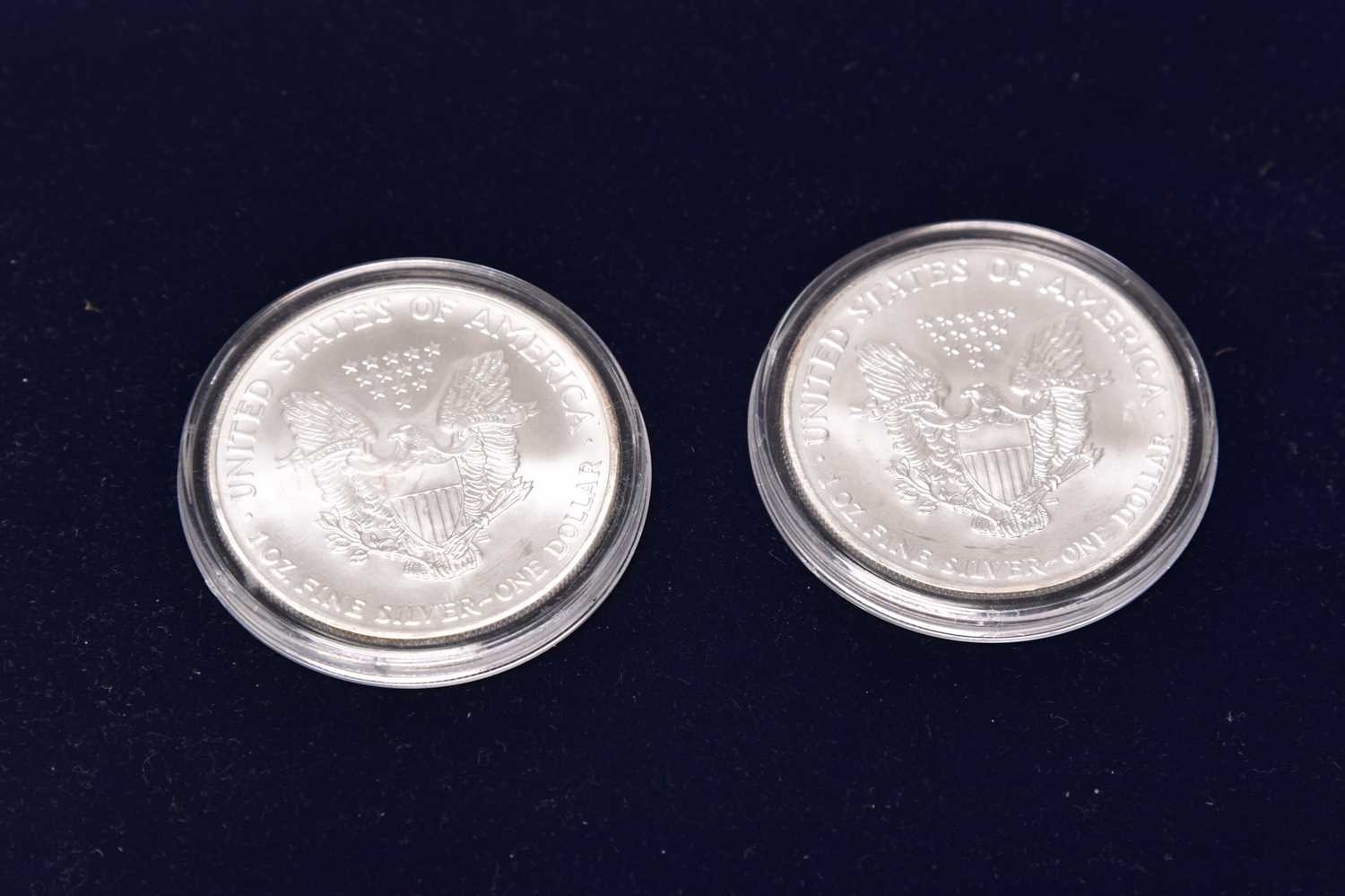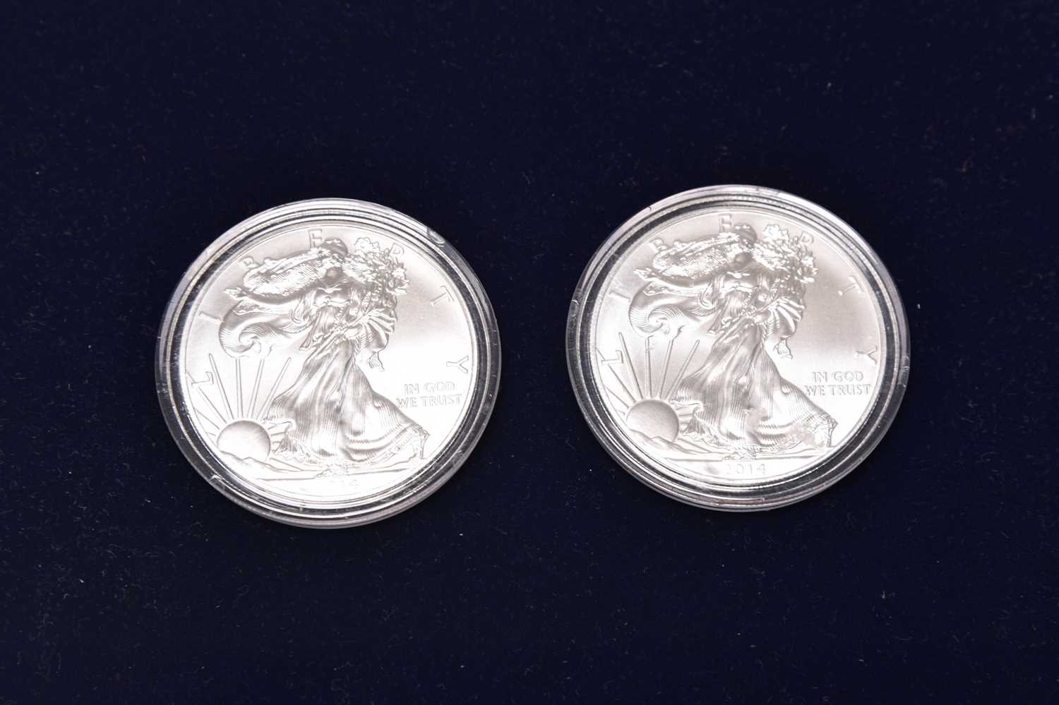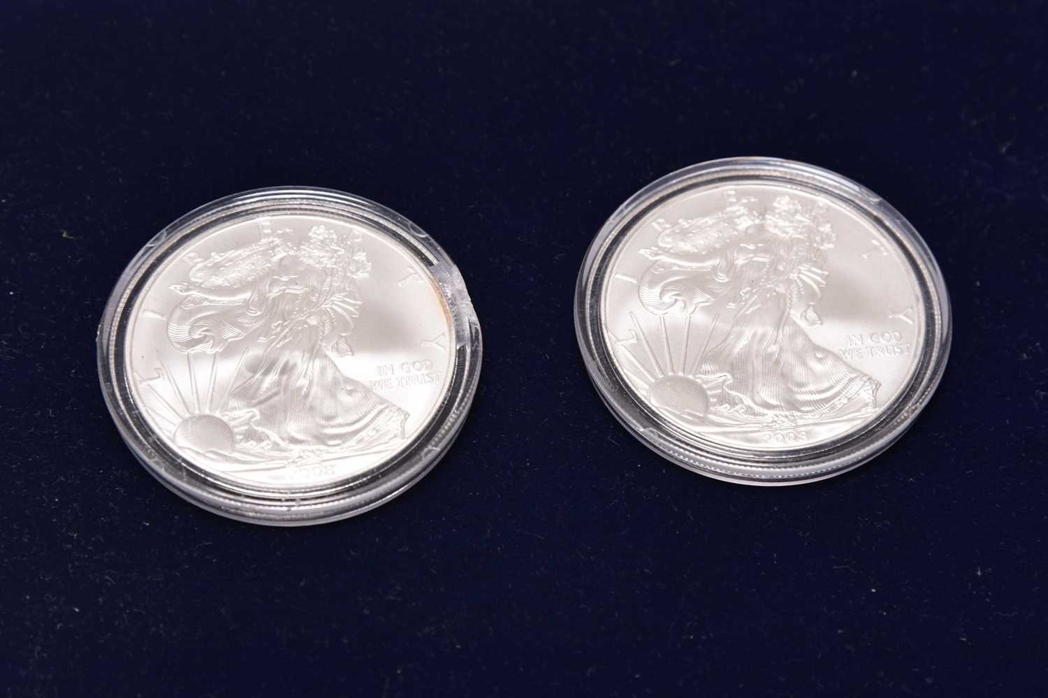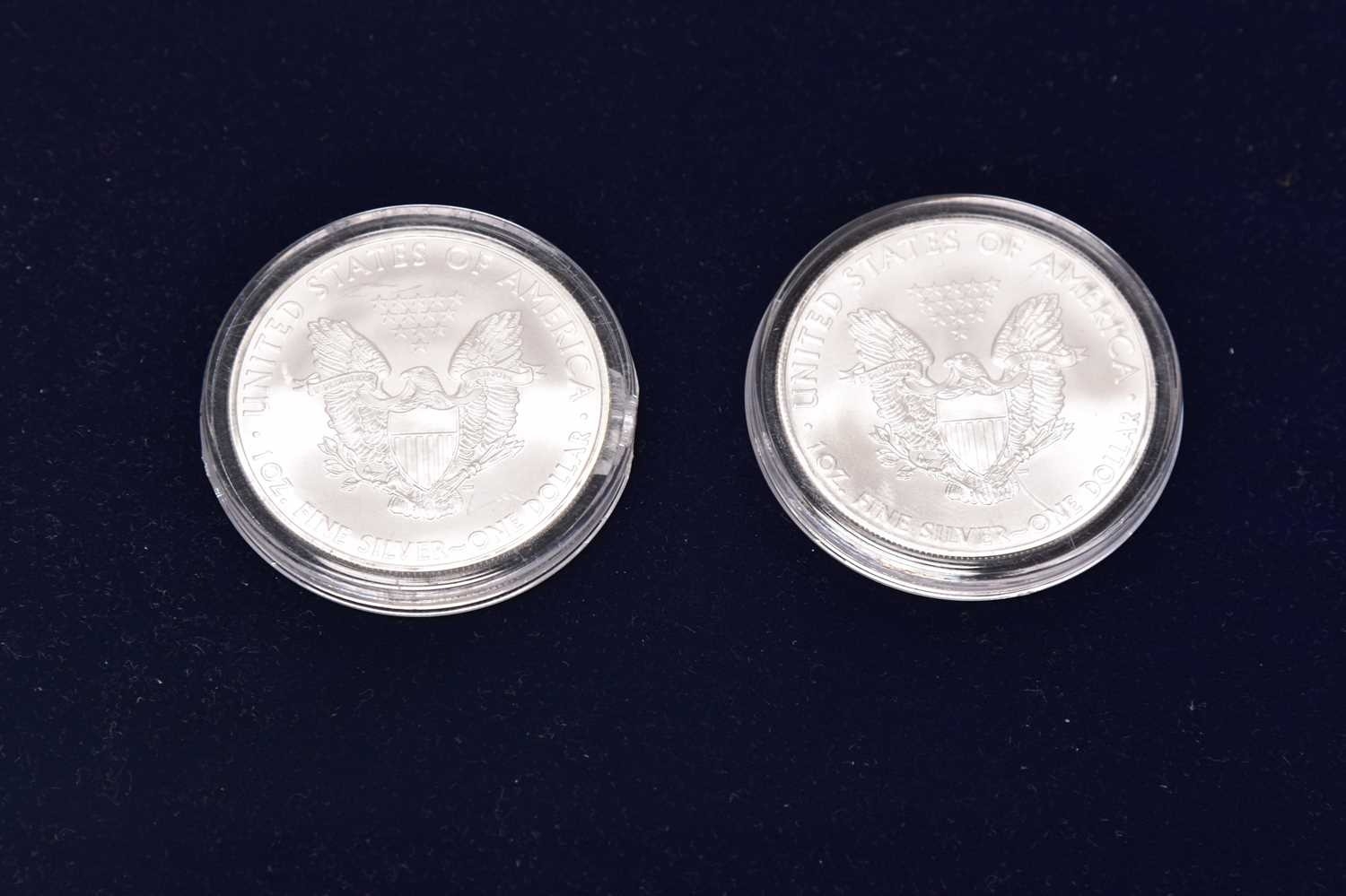 USA, six proof silver 1oz fine silver American Eagle silver dollars, dated 2007, 2008 and 2014, all within capsules (6)