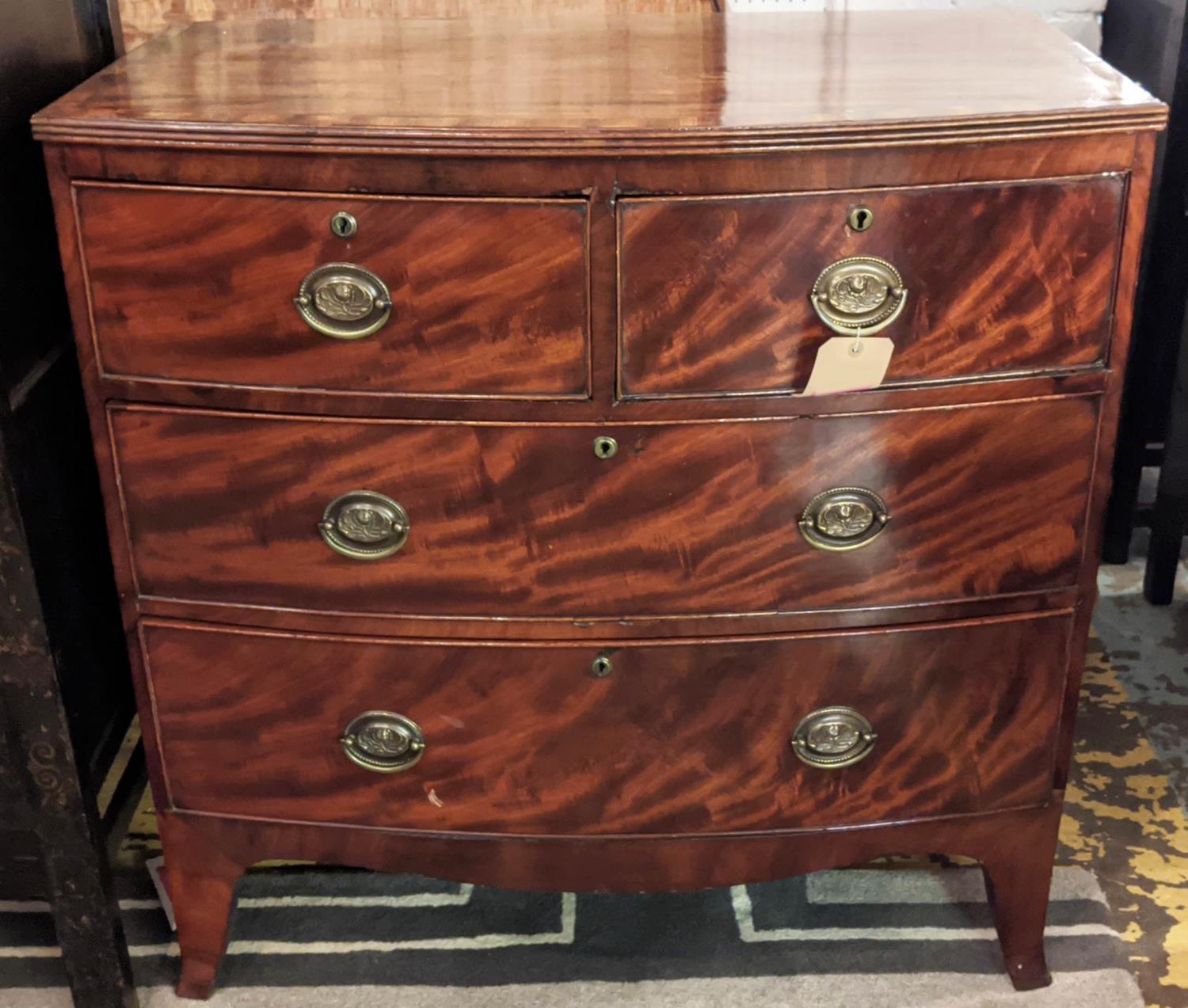 BOWFRONT CHEST, 89cm W x 90cm H x 48cm D 19th century mahogany with two short above two long drawers.