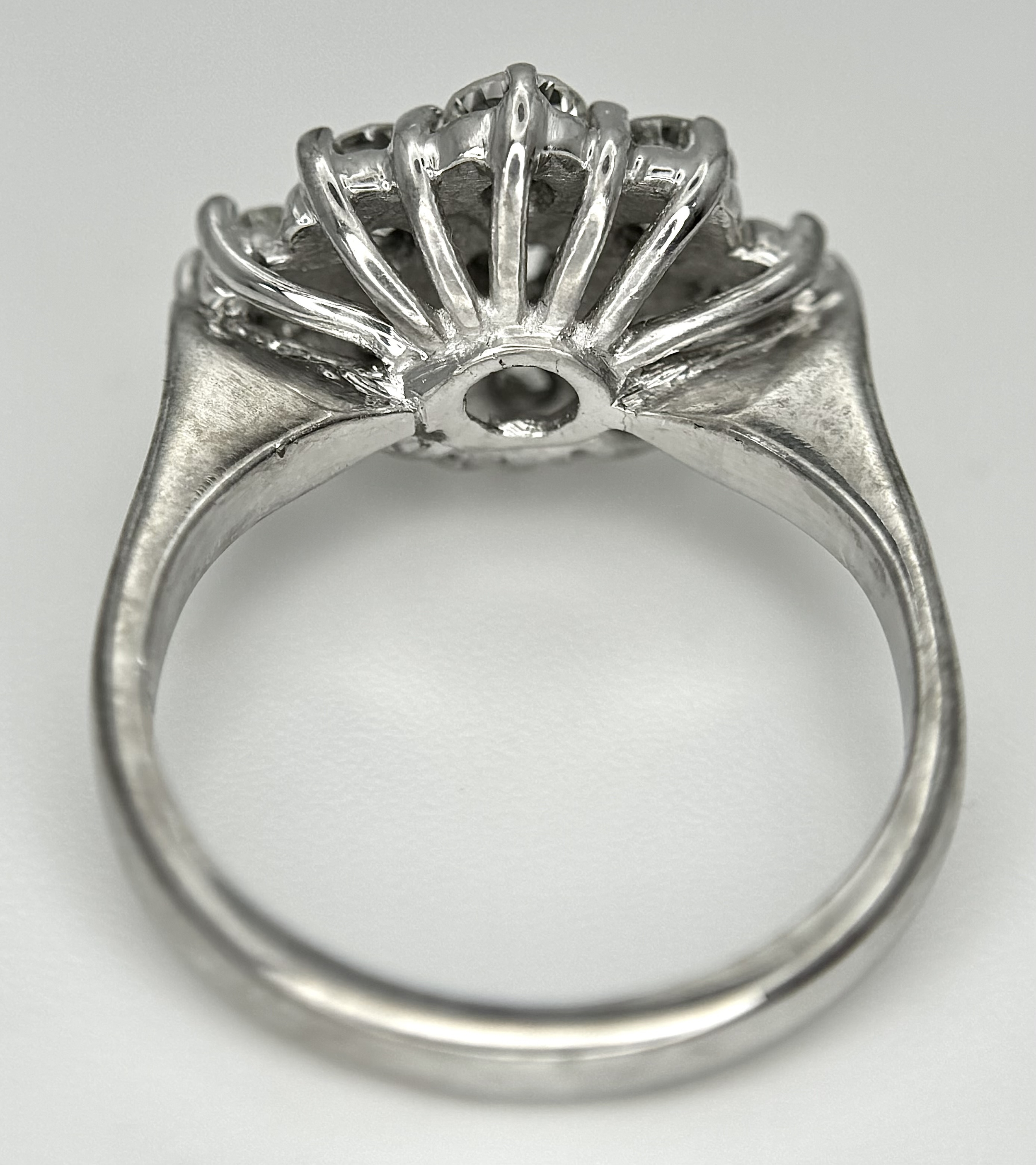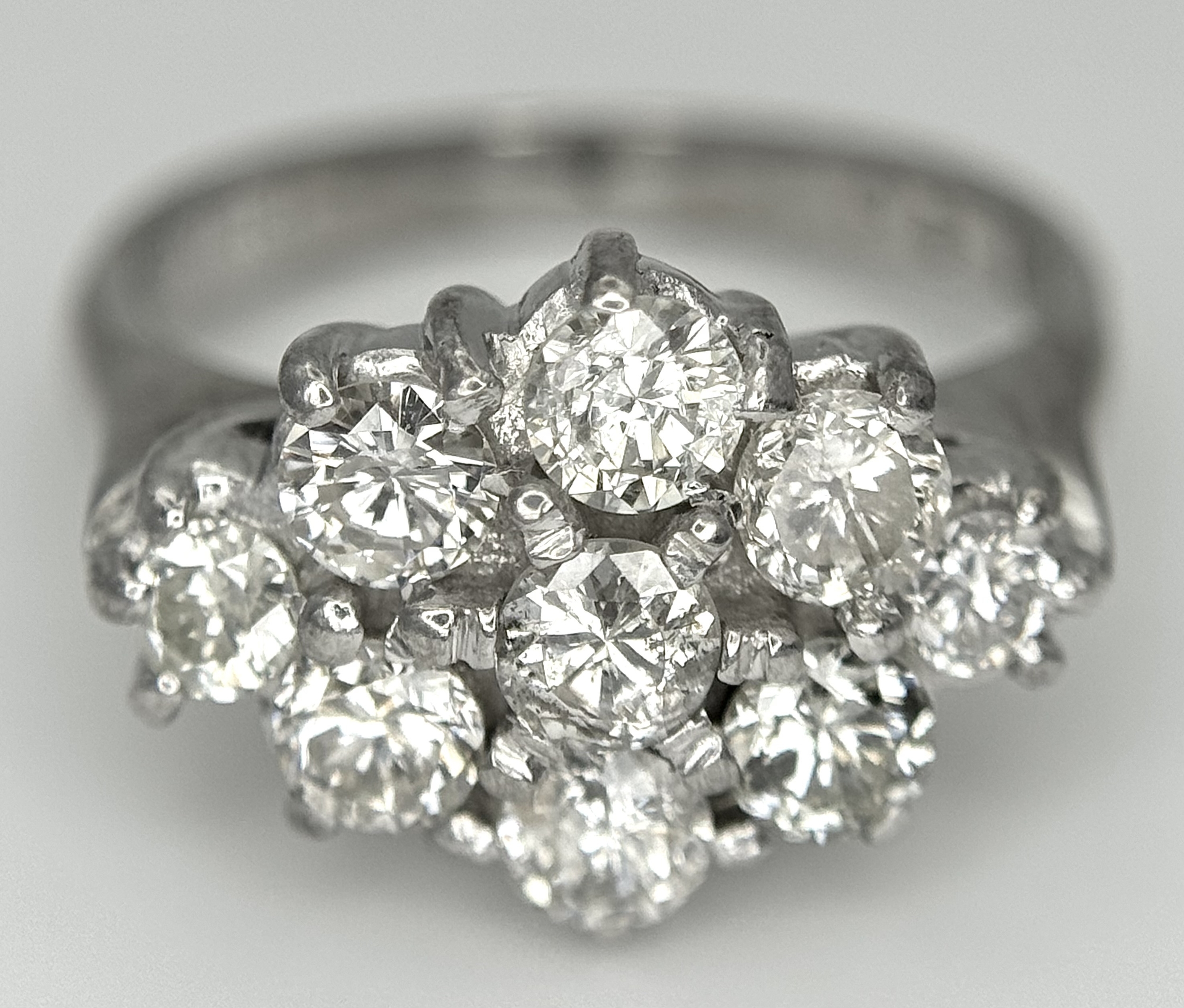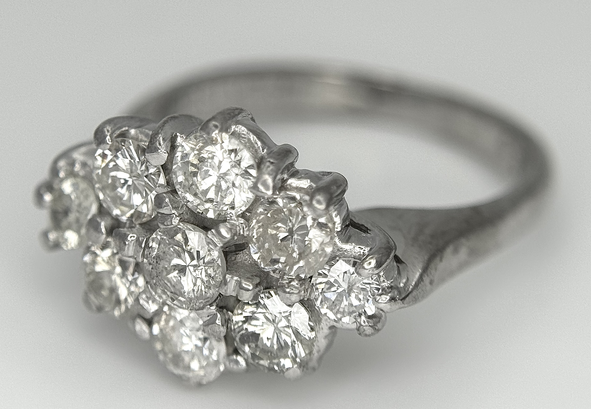 AN 18K WHITE GOLD DIAMOND SET CLUSTER RING. 1.20CTW. 5.8G. SIZE J. SPSA-3009.