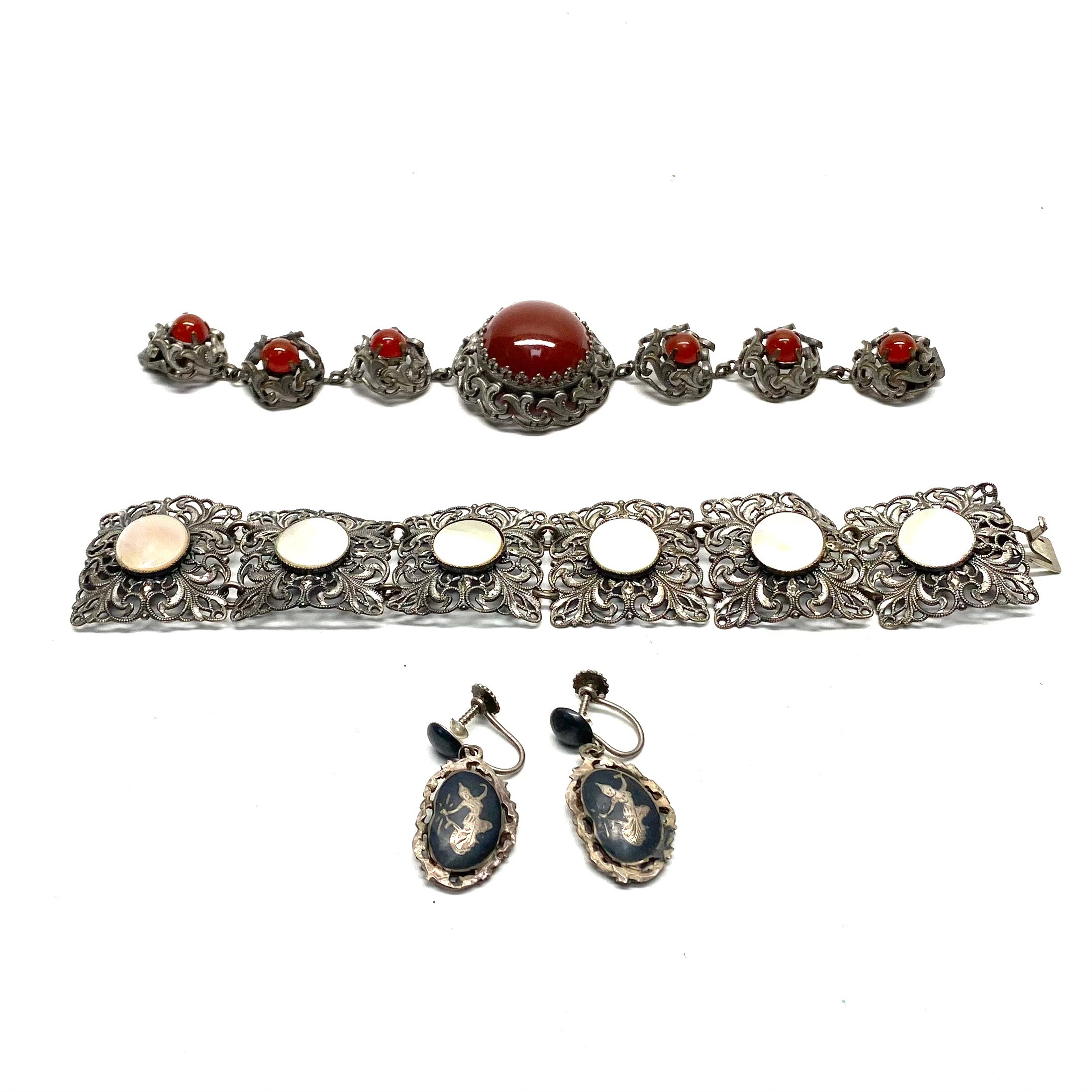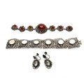 Bracelet with semi precious stone, probably red cabochon carnelian and a fine filigree with mother of pearl.