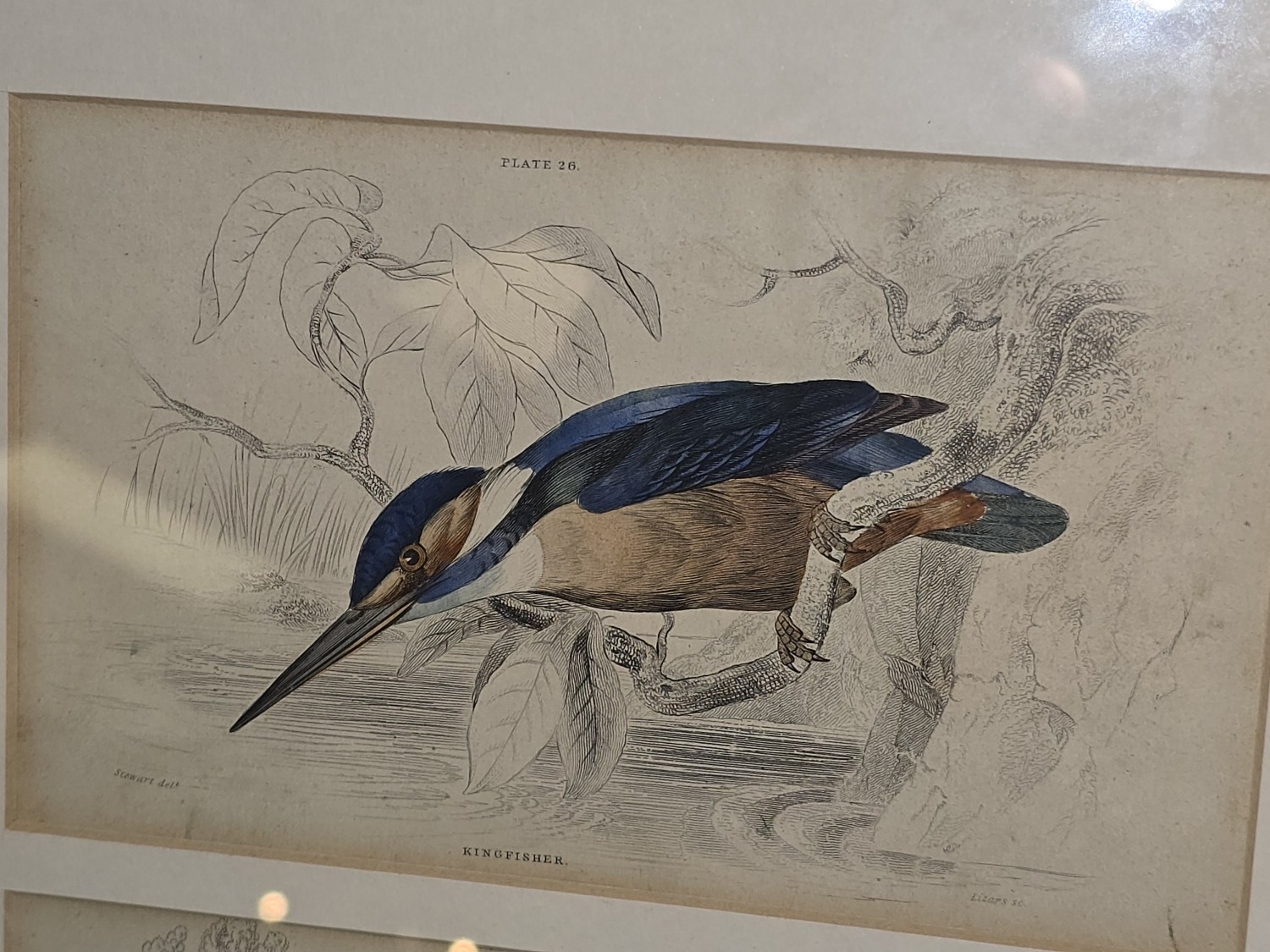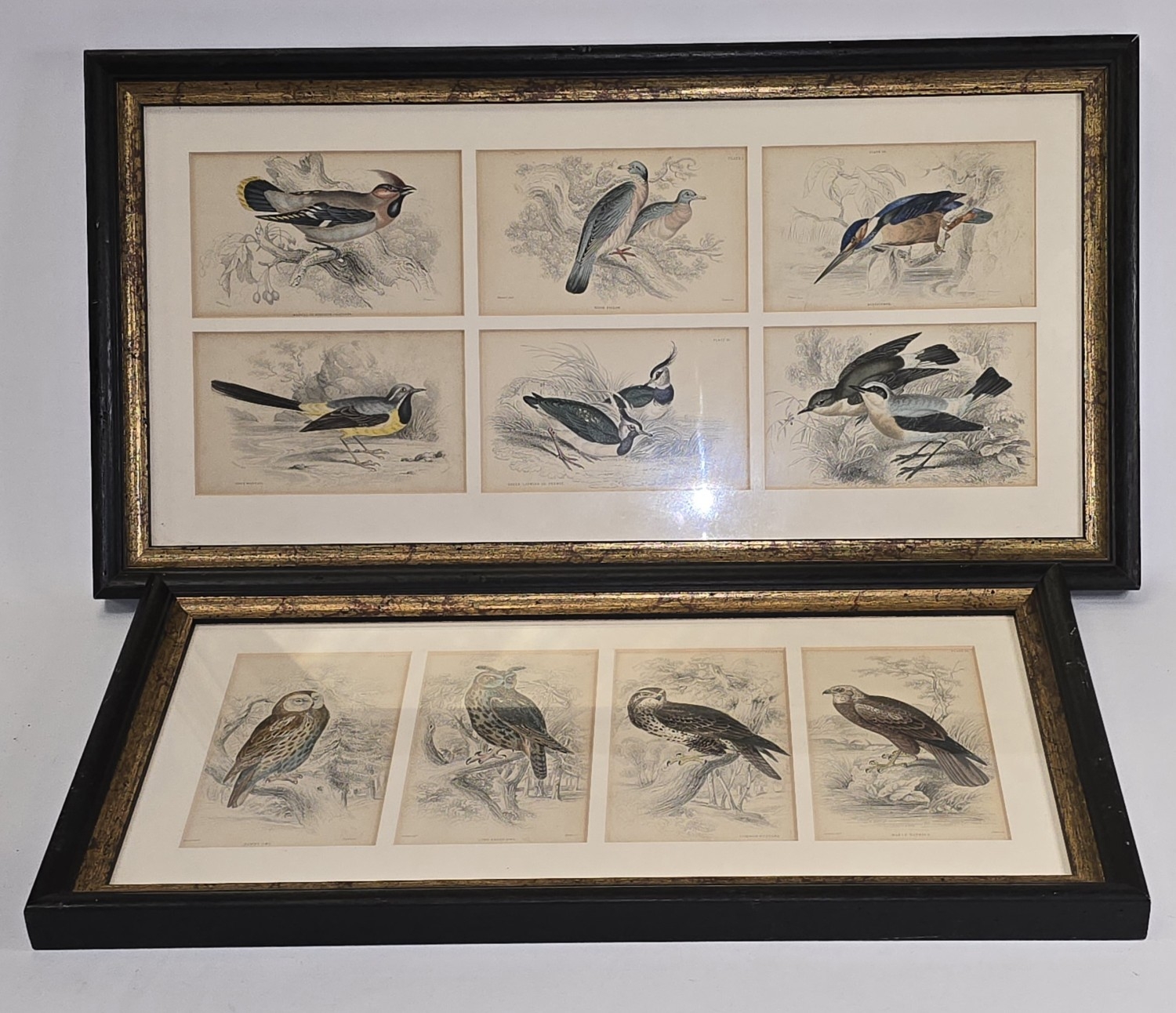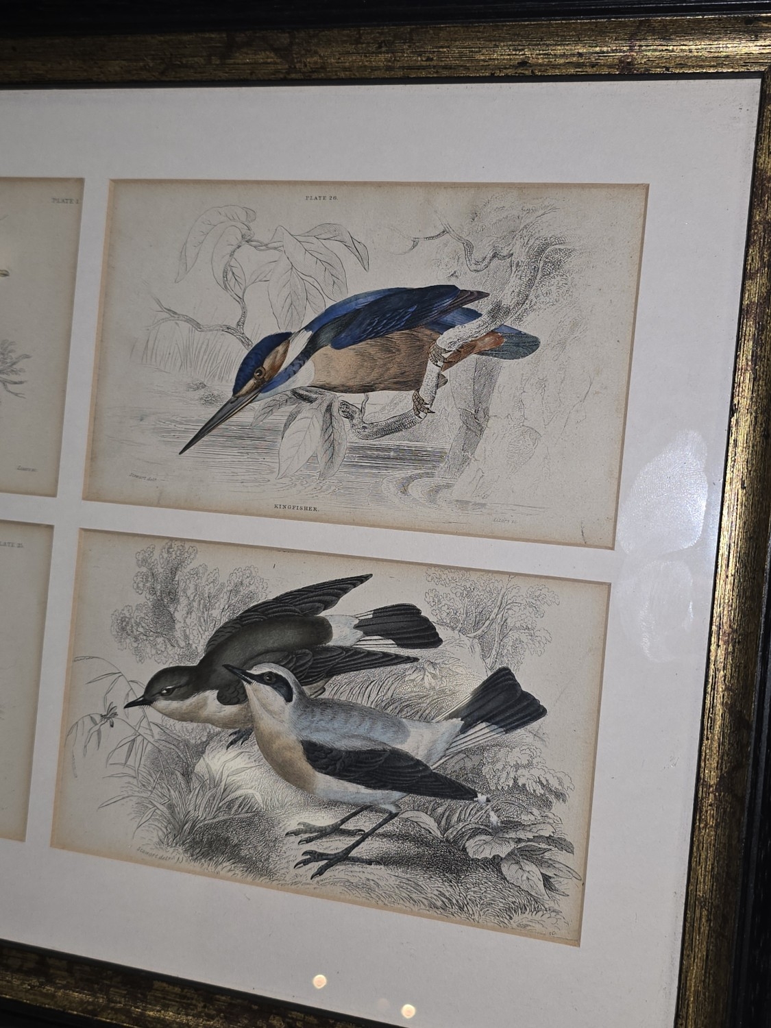 A collection of 10 antique Lizars Stewart Delt quality bird plates currently displayed within two frames. Largest frame measures 60x31cm.