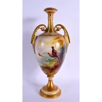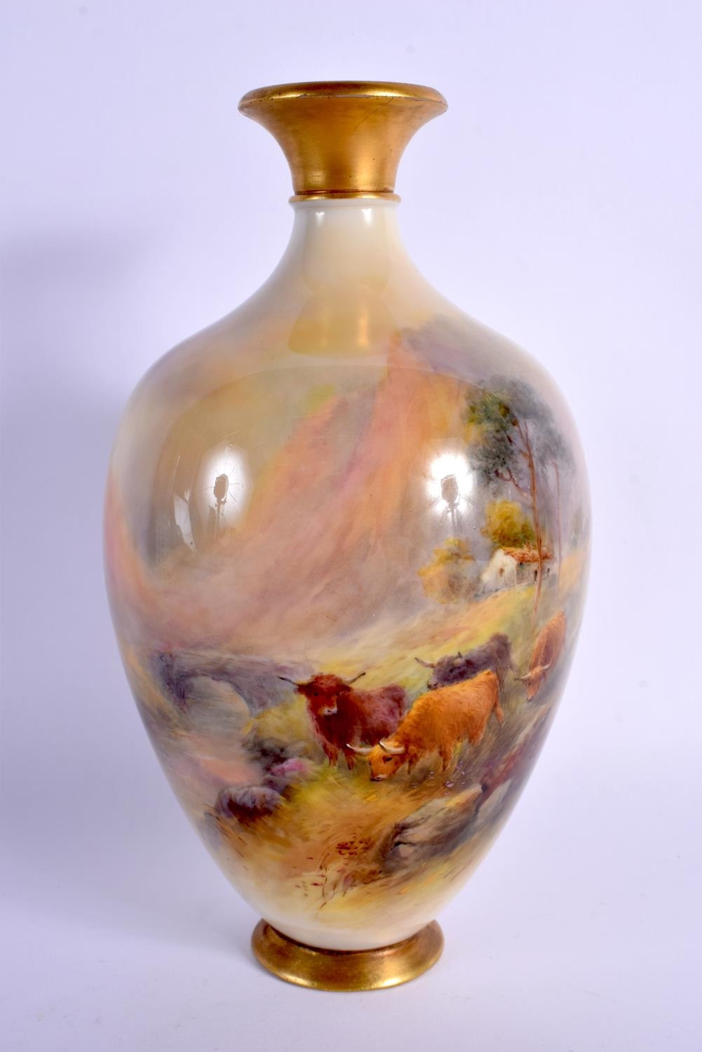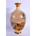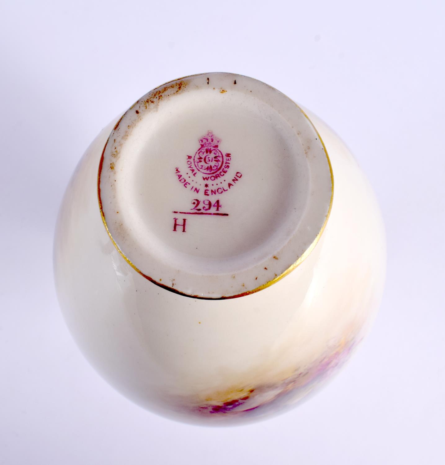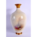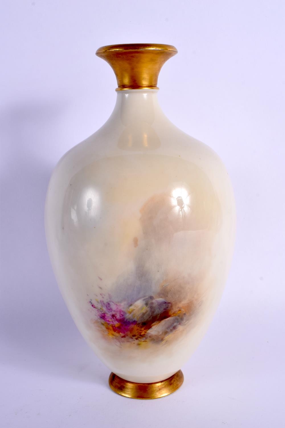 A ROYAL WORCESTER PORCELAIN BULBOUS VASE by James Stinton. 21 cm x 8 cm.
