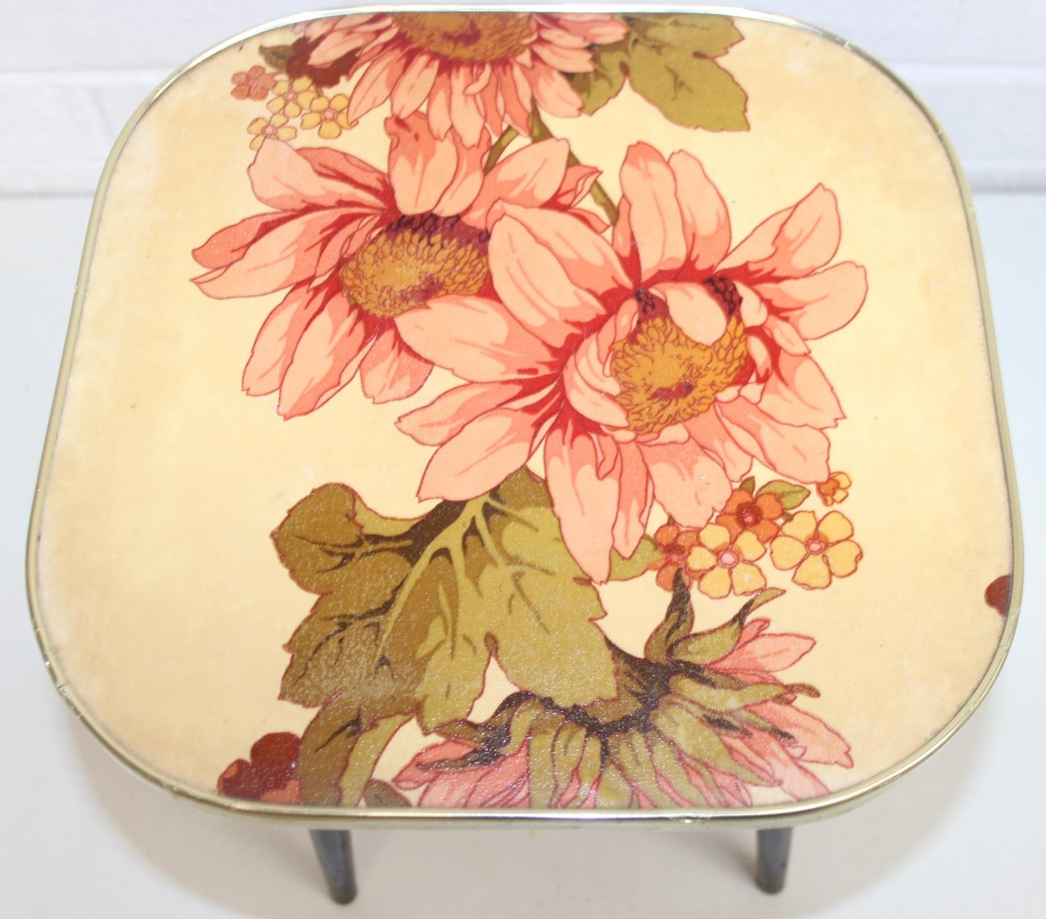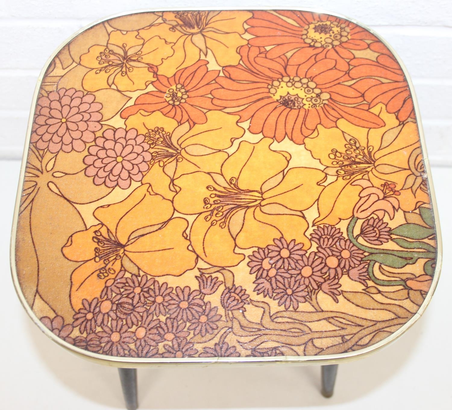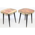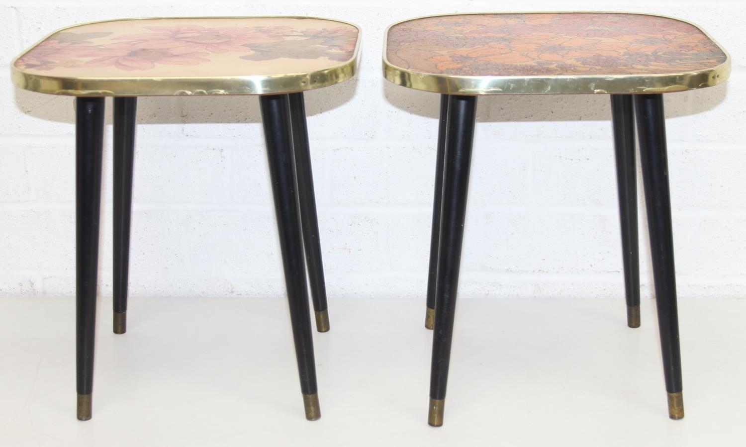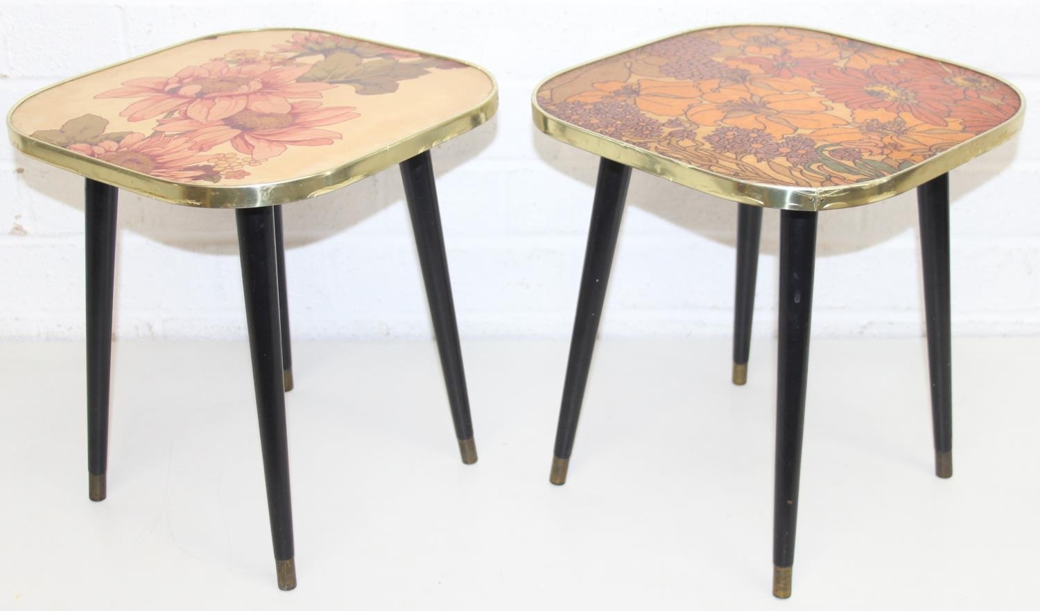 Two retro tables with floral design tops, each 30cm x 30cm x 33cm