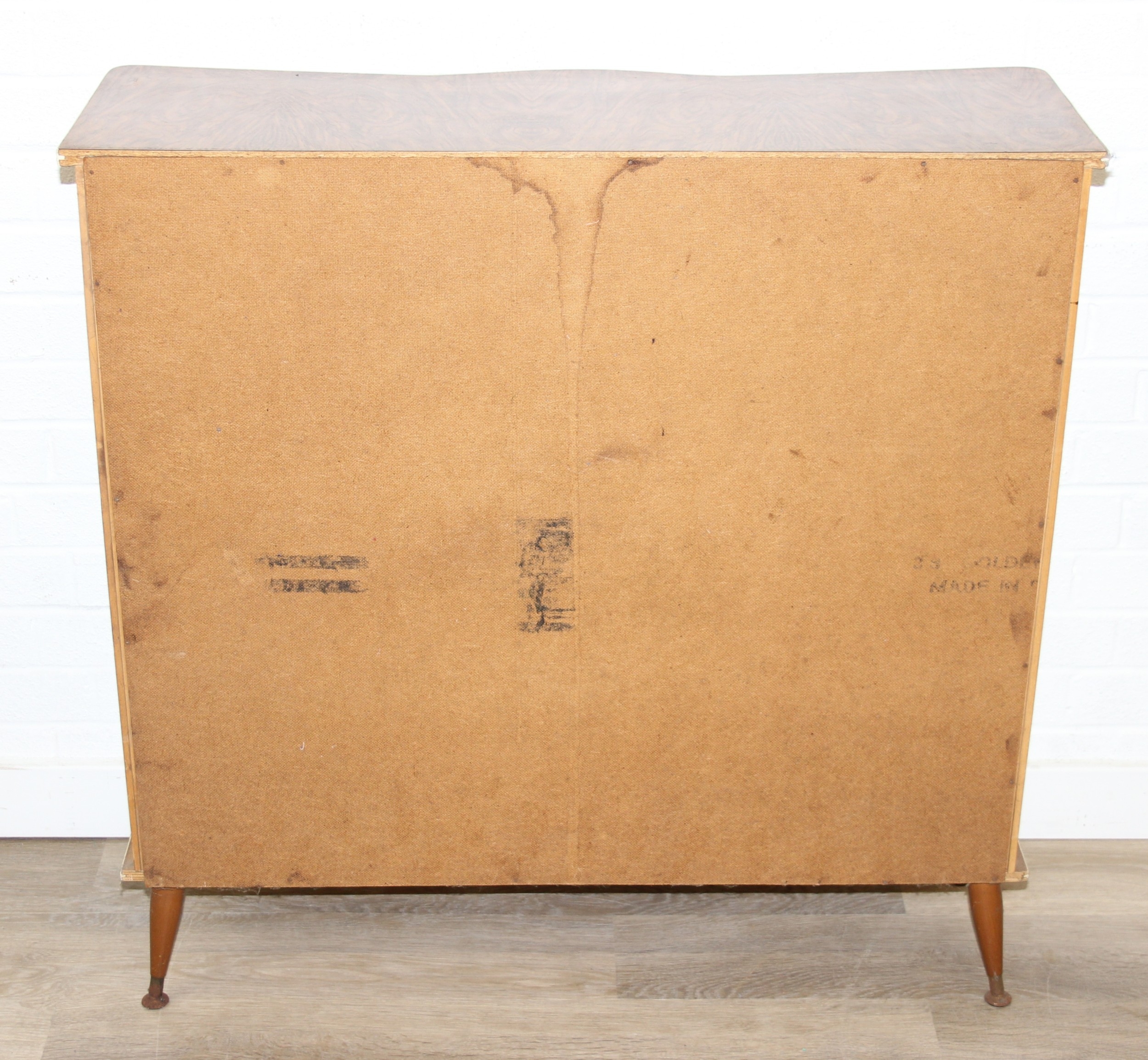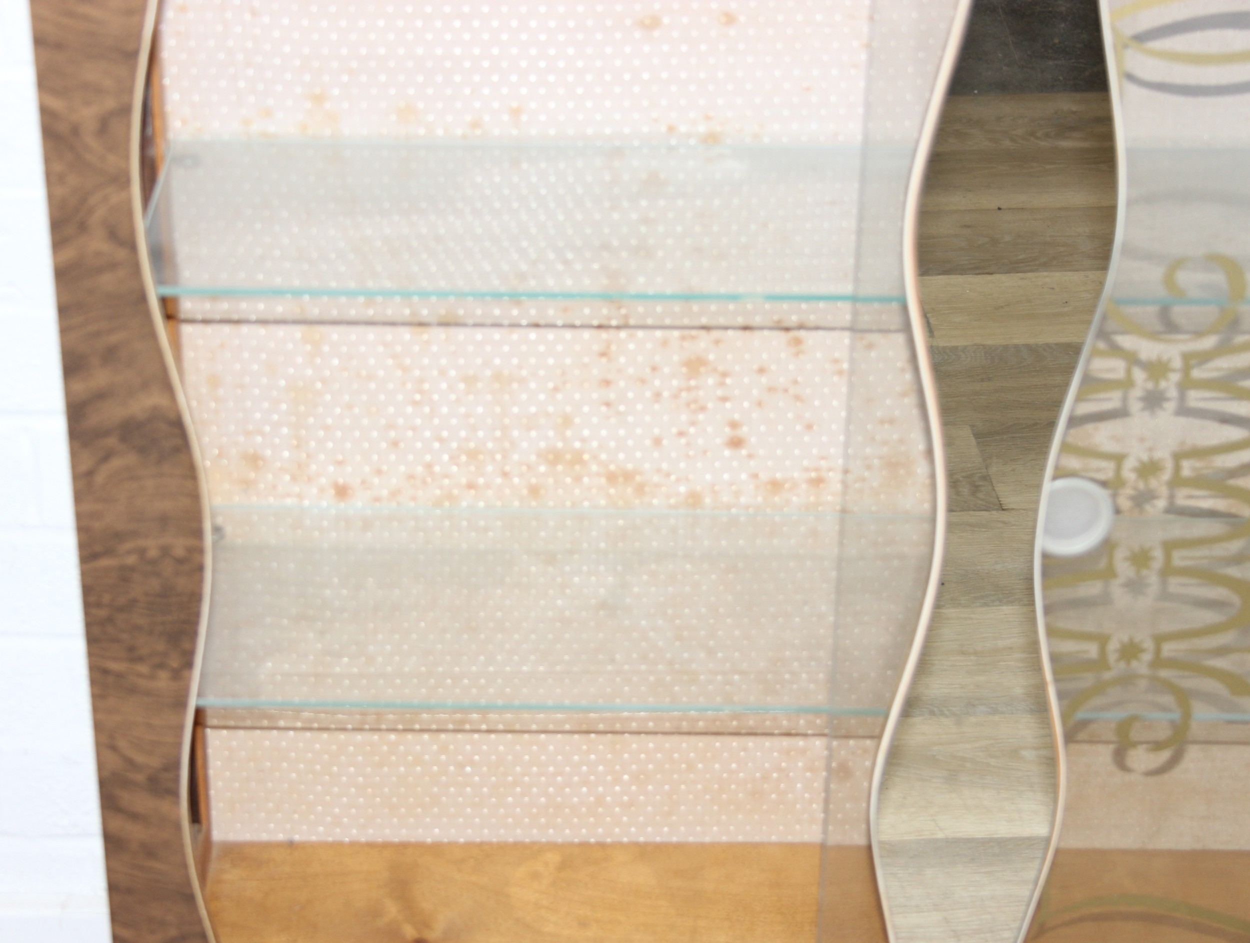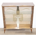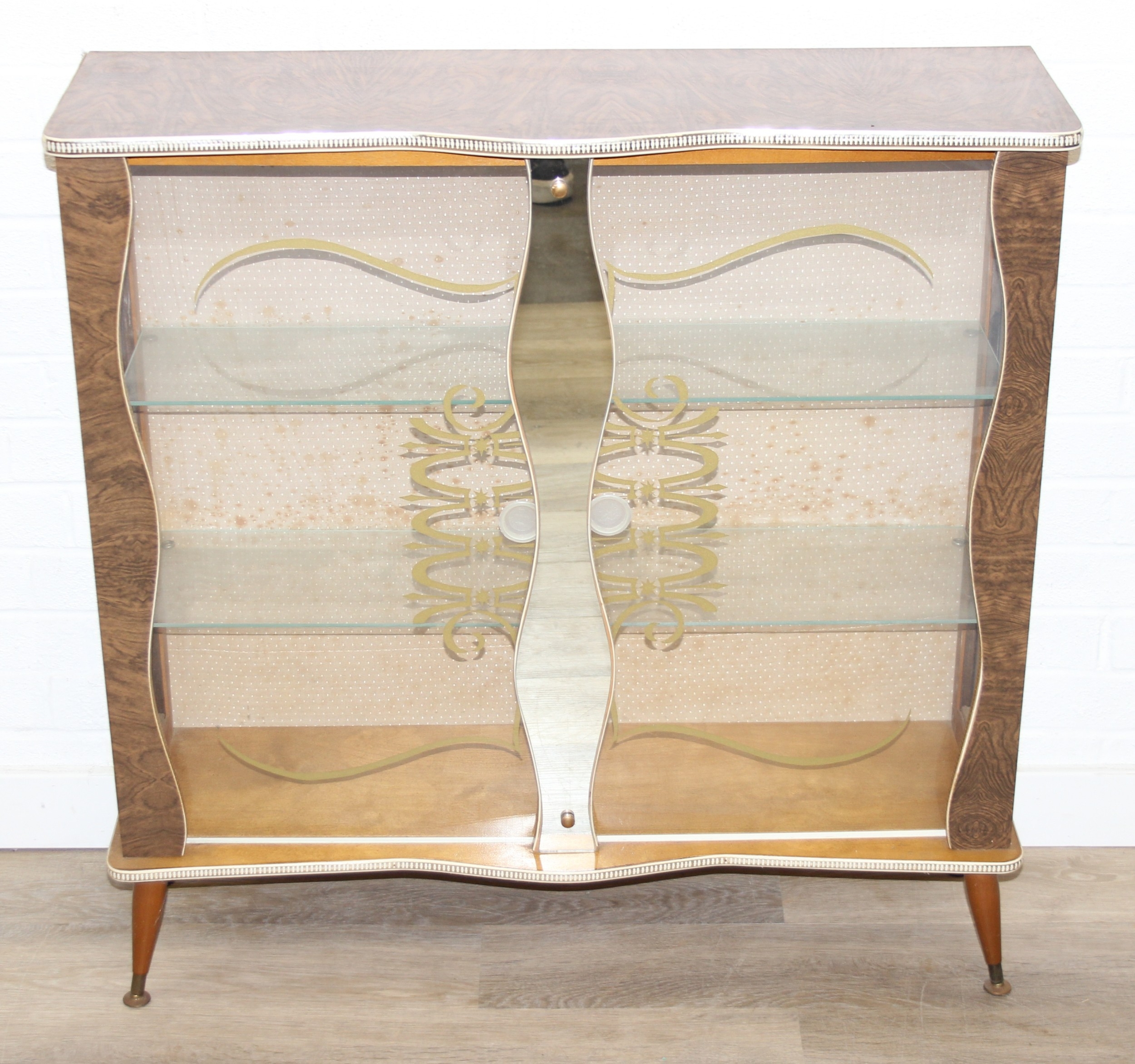 A retro 1950's display or cocktail cabinet with mirror front and glass shelves, 91cm x 28cm x 93cm