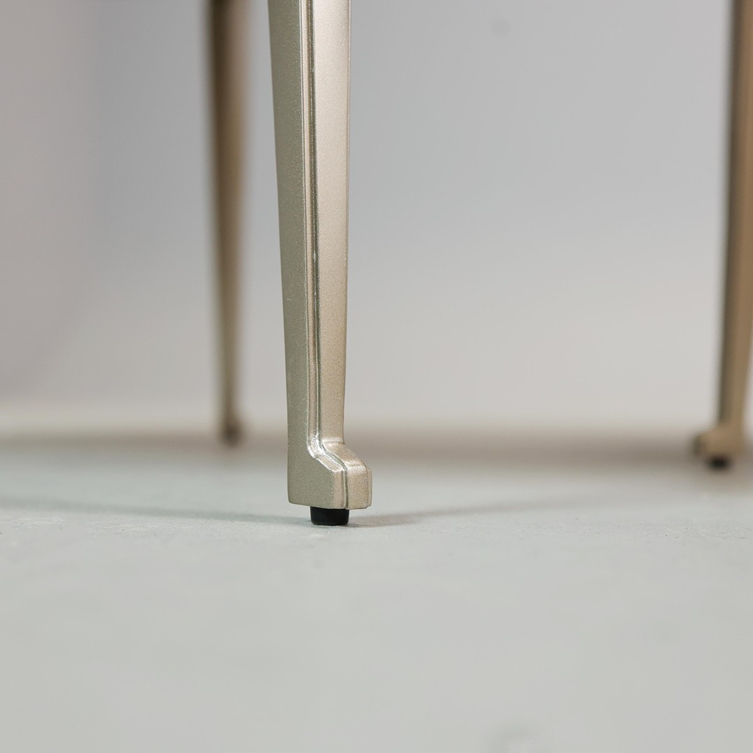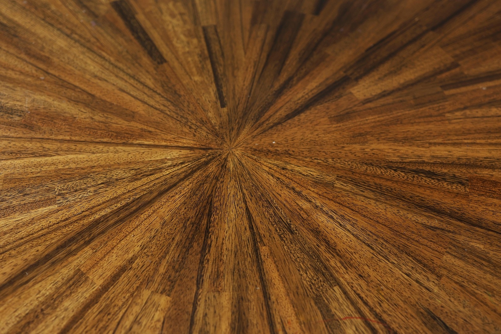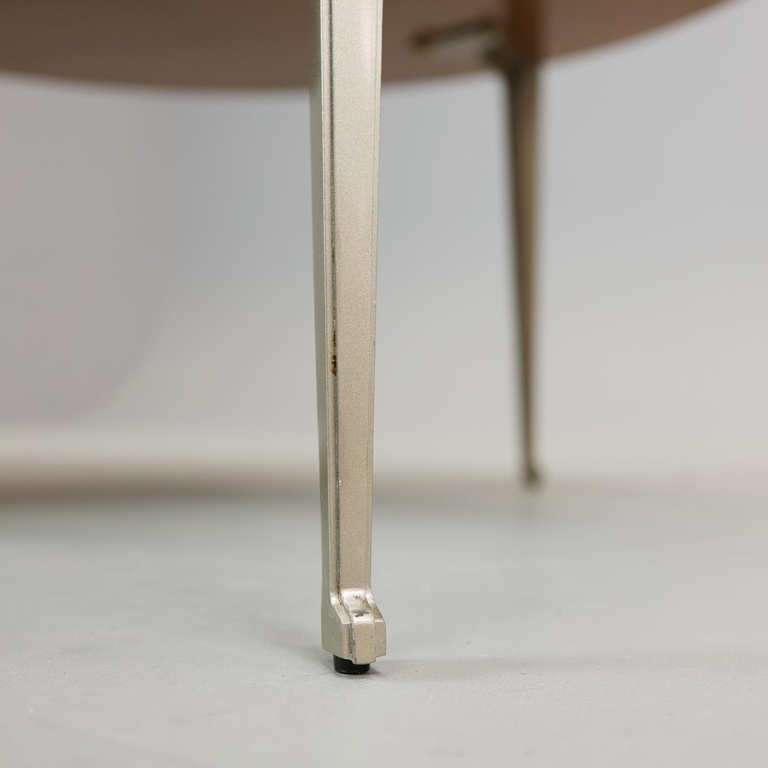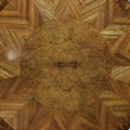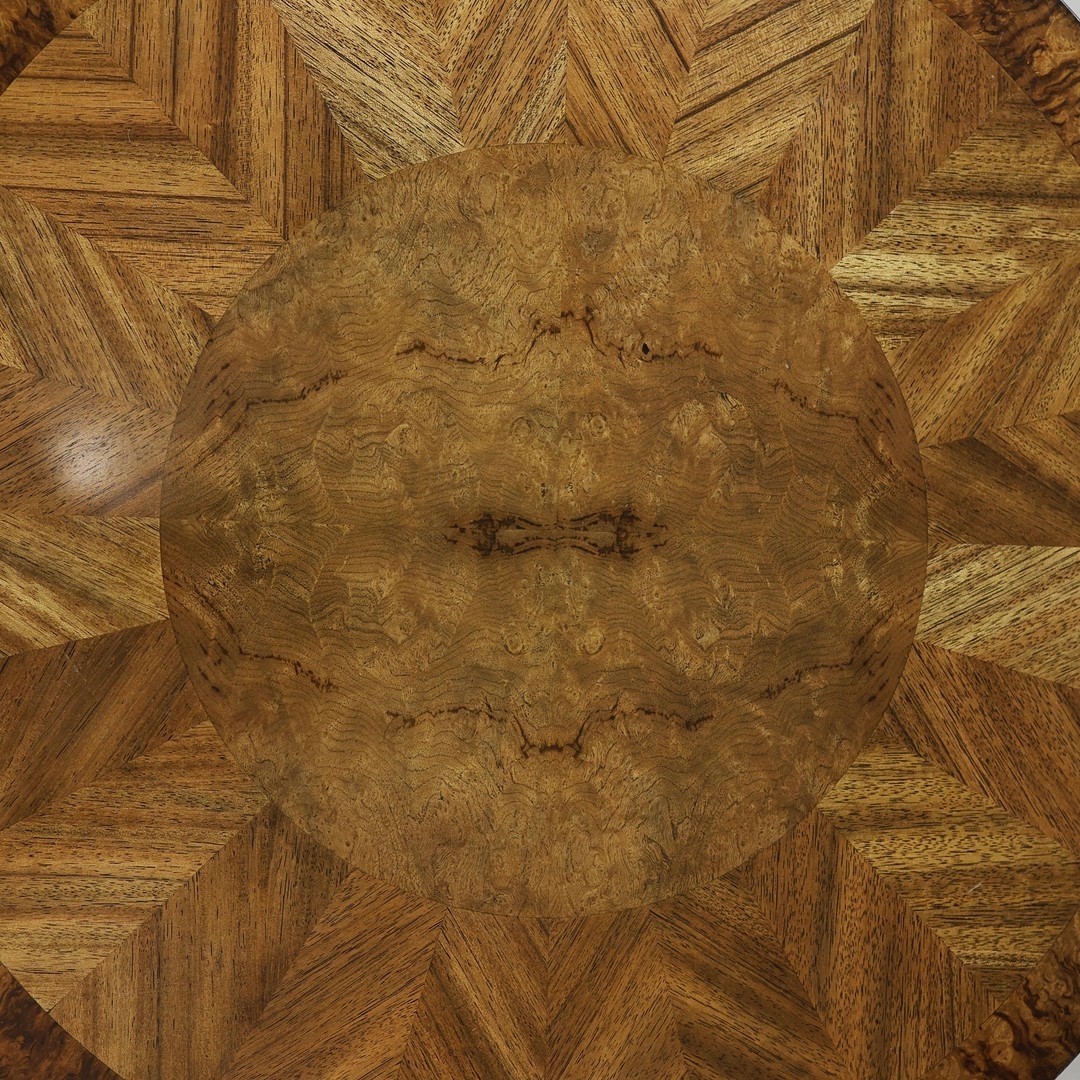 CIRCULAR COFFEE TABLES (2). a nesting pair, with circular wooden parquetry tops on metal supports, the larger 97cm w x 49cm t the other 70cm w x 43cm t (2).
