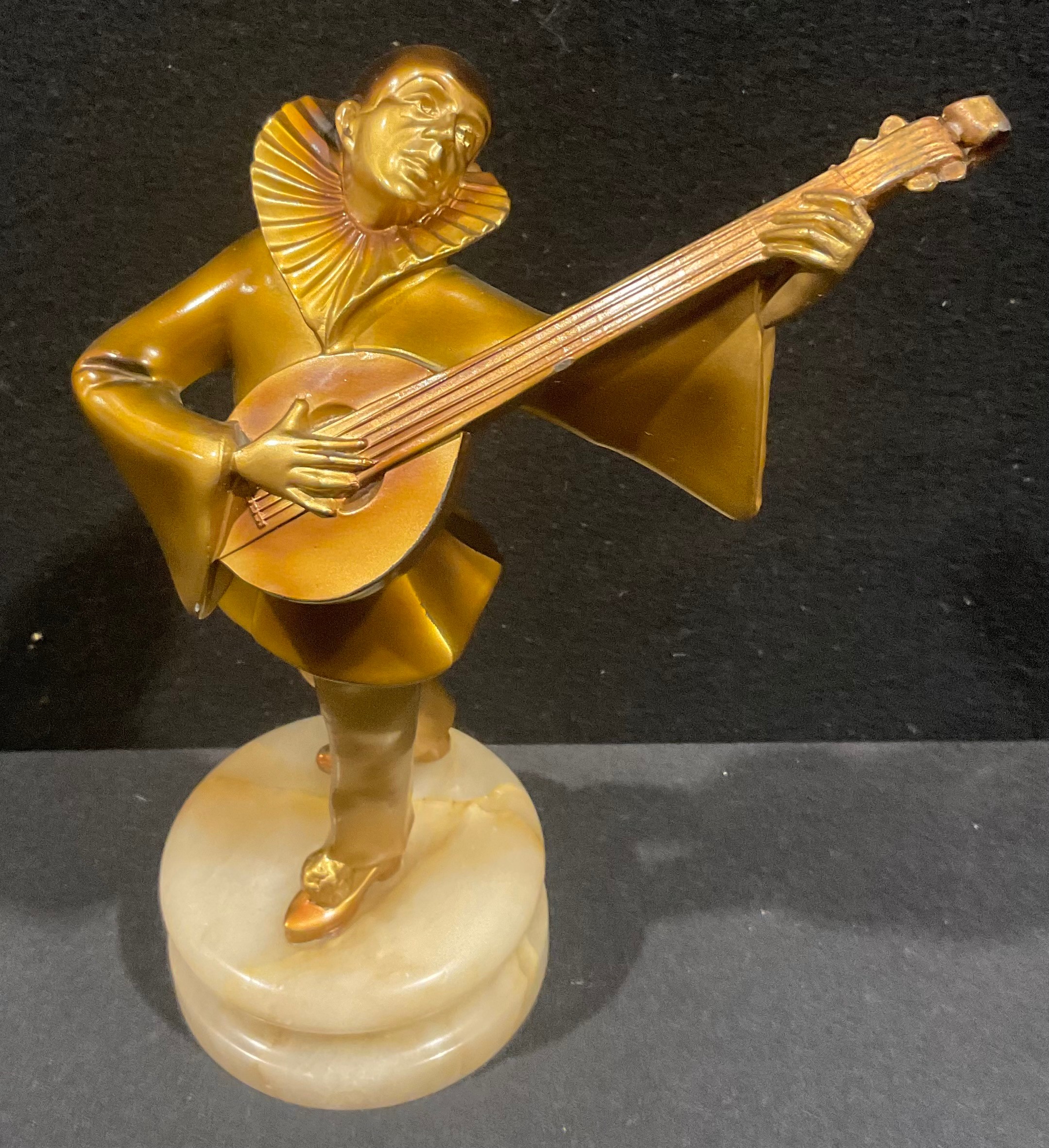 An Art Deco bronzed spelter figure after Joseph Lorenzl, the mandolin player, c.1935