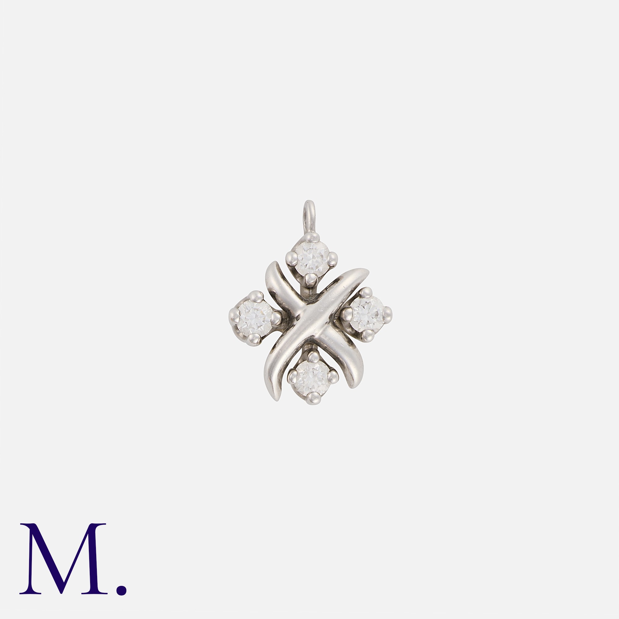 Tiffany & Co, A Diamond Pendant, in platinum, set with four round cut diamonds. Stamped T & Co, Pt 950.
