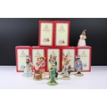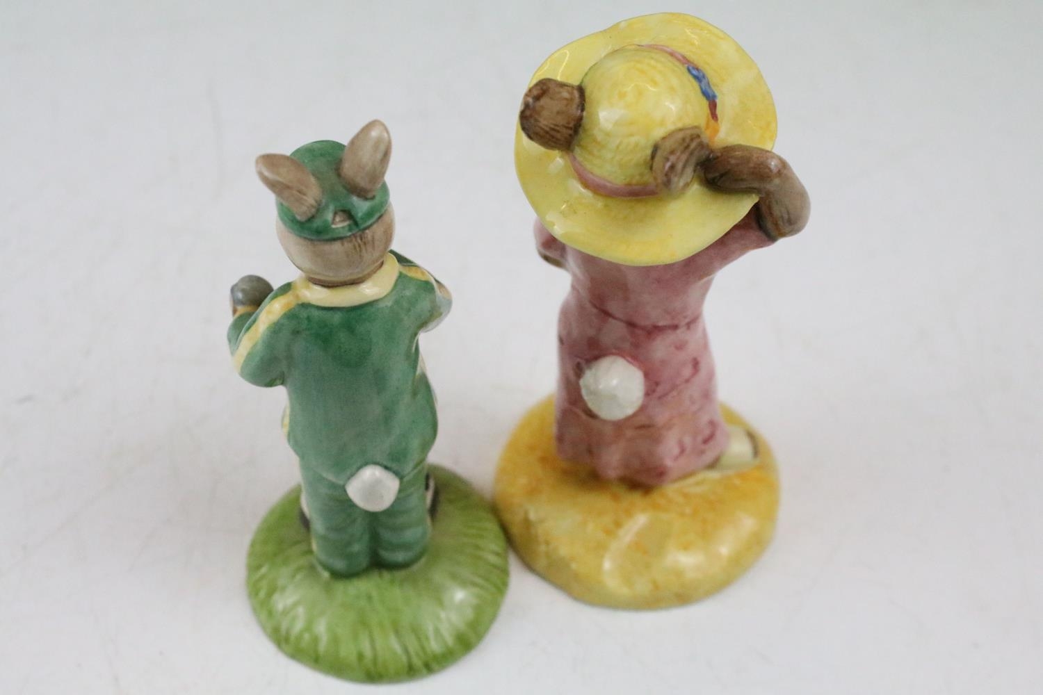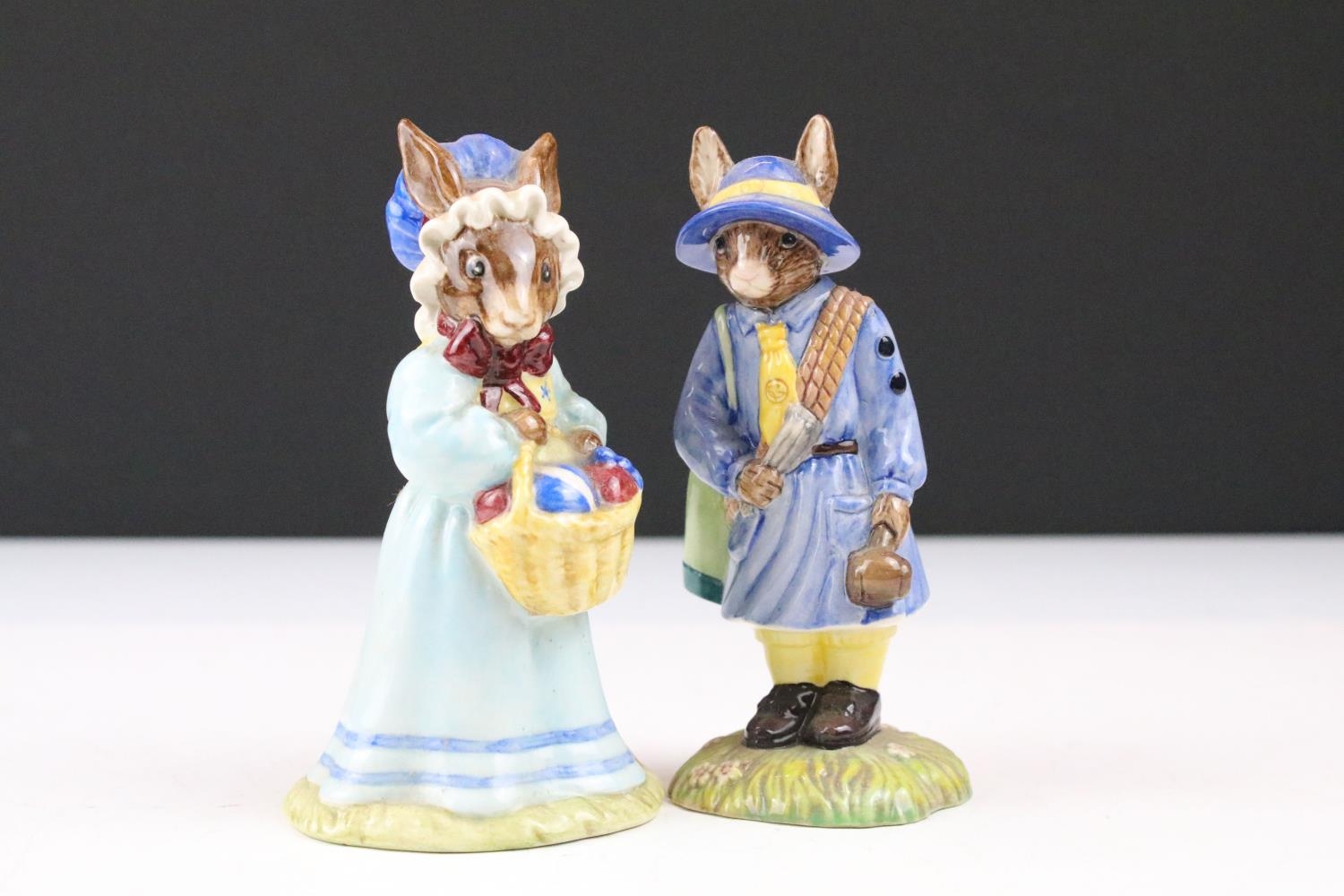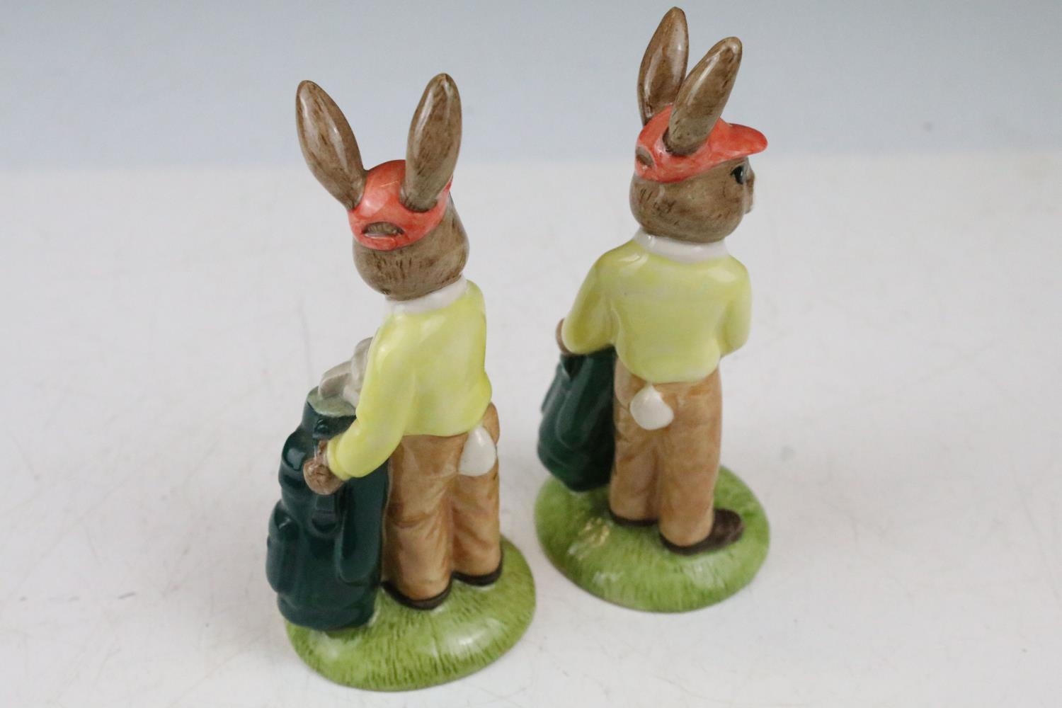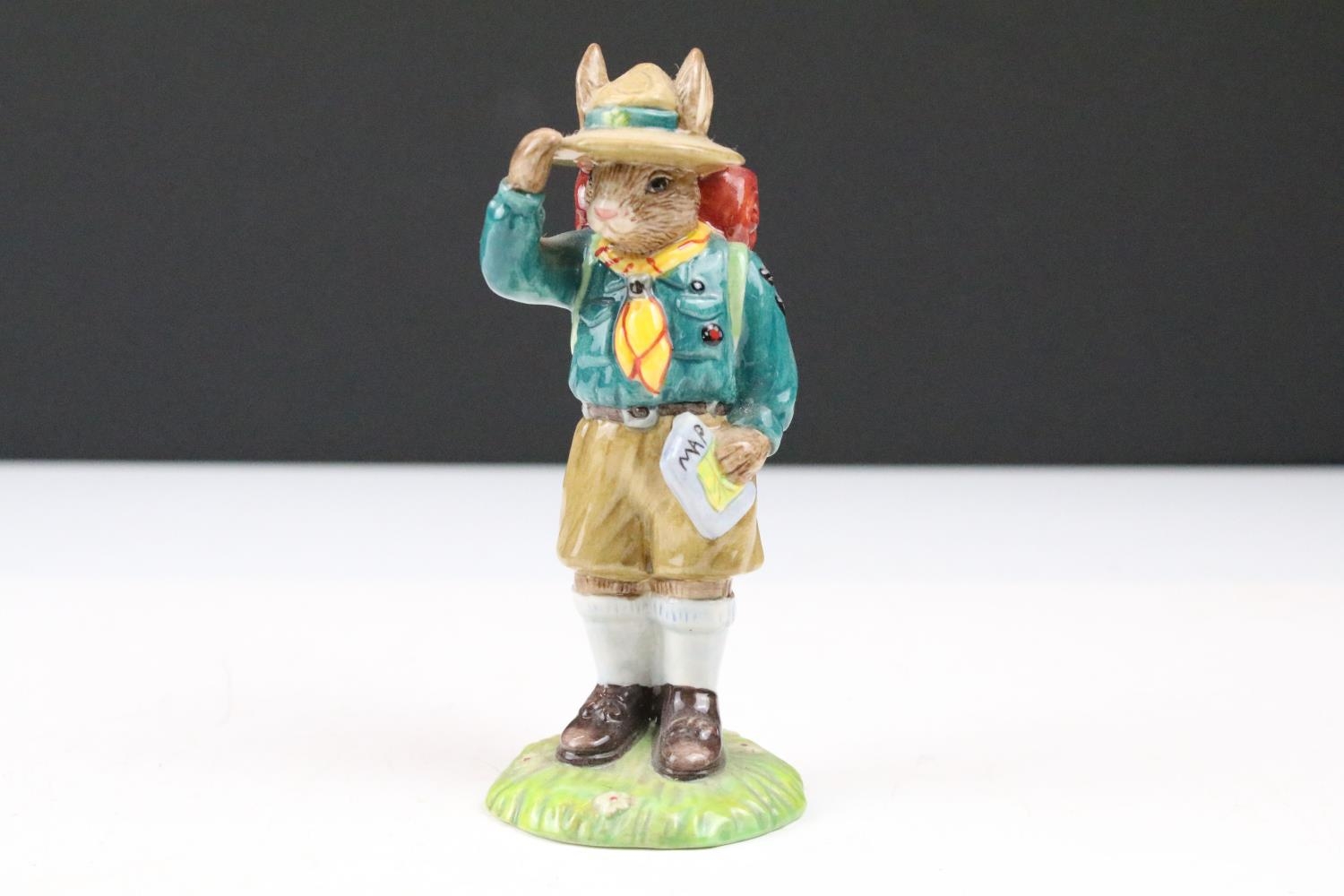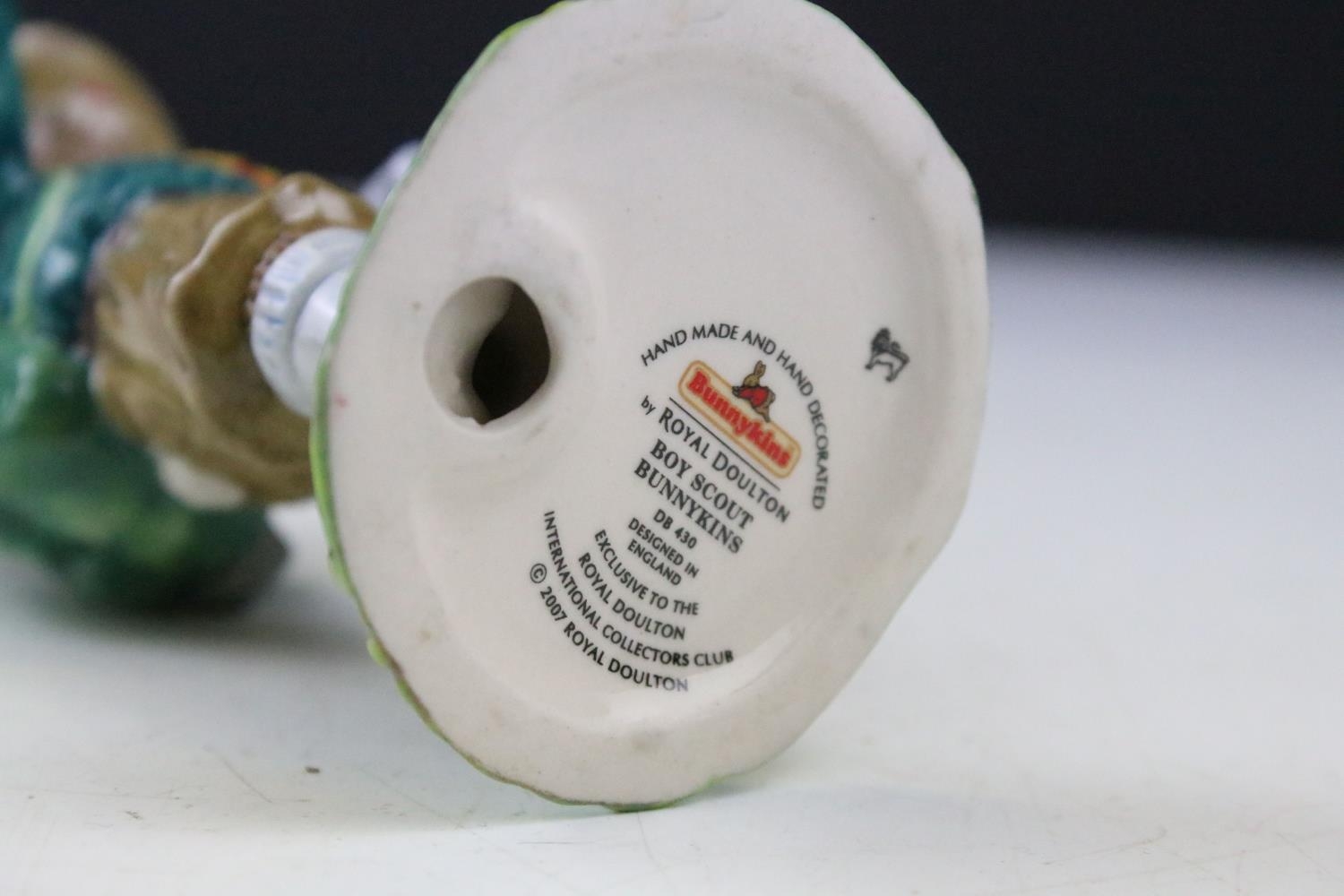 Collection of 16 Royal Doulton Bunnykins figures to include boxed examples, the lot featuring Boy Scout Bunnykins, Caddie Bunnykins, Stop Watch Bunnykins, Mr Bunybeat, Santa Bunnykins, Mrs Bunnykins, etc