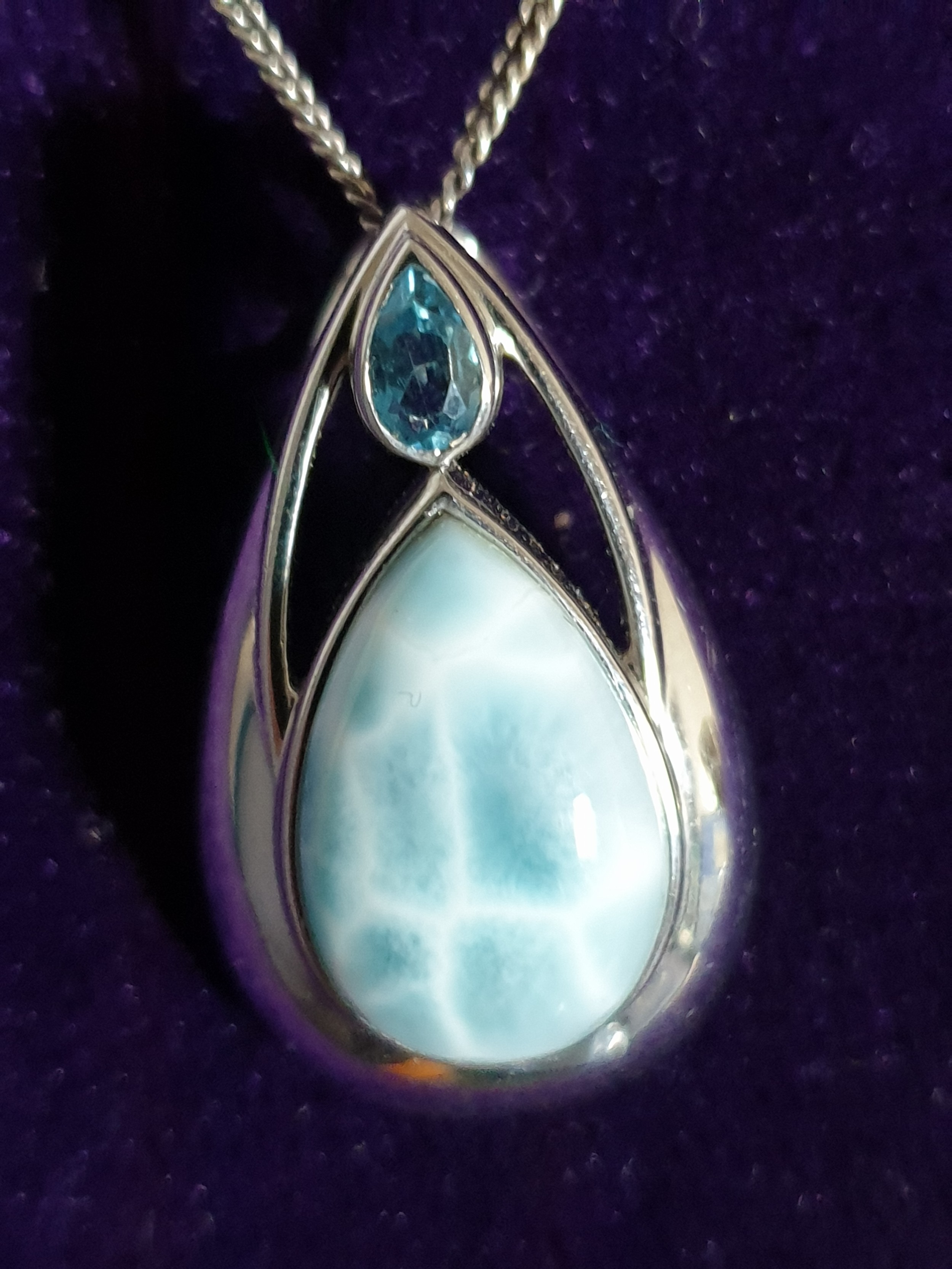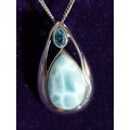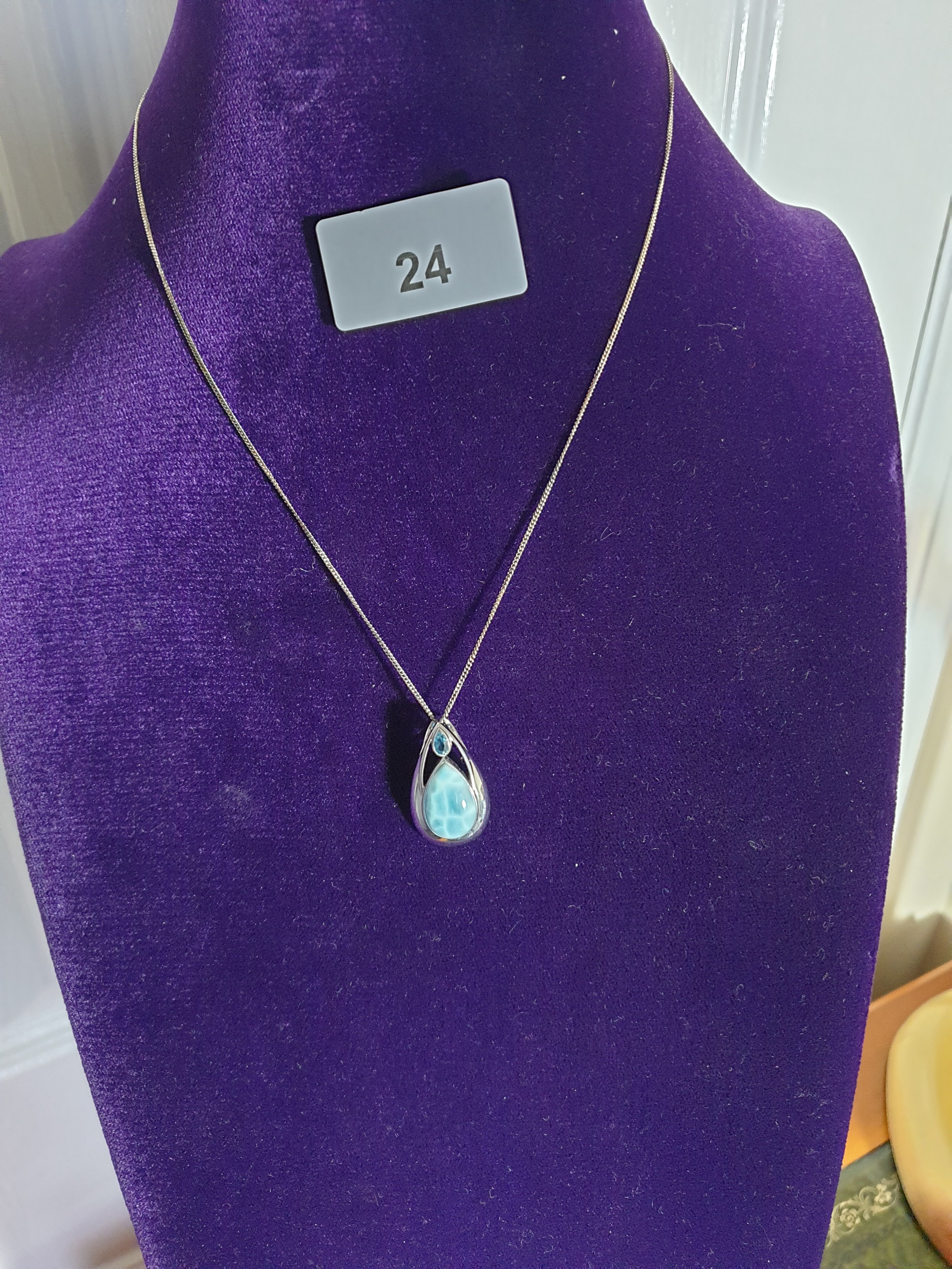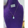 Silver Necklace With Silver And Mother Of Pearl Stone Pendant With Blue Stone To Top