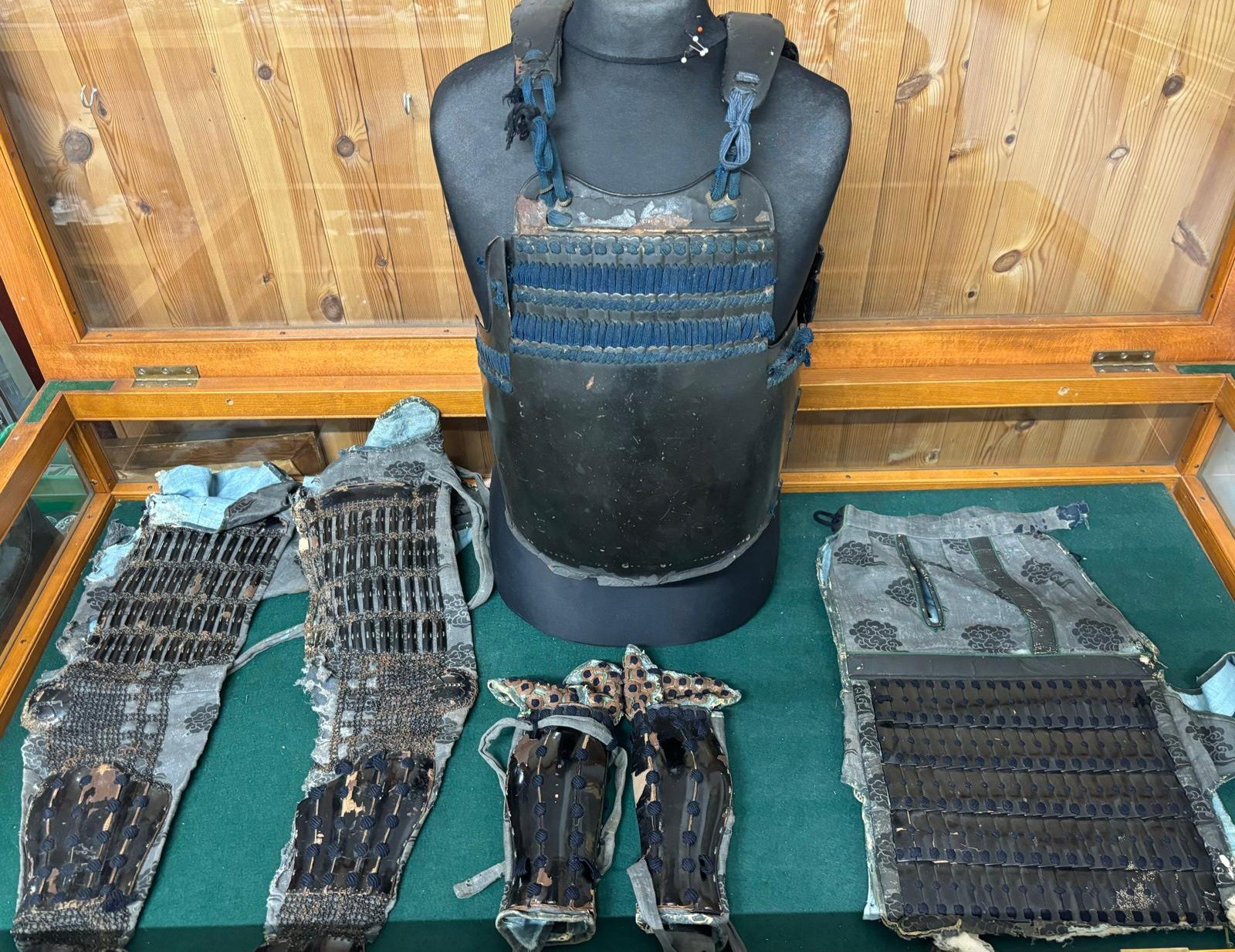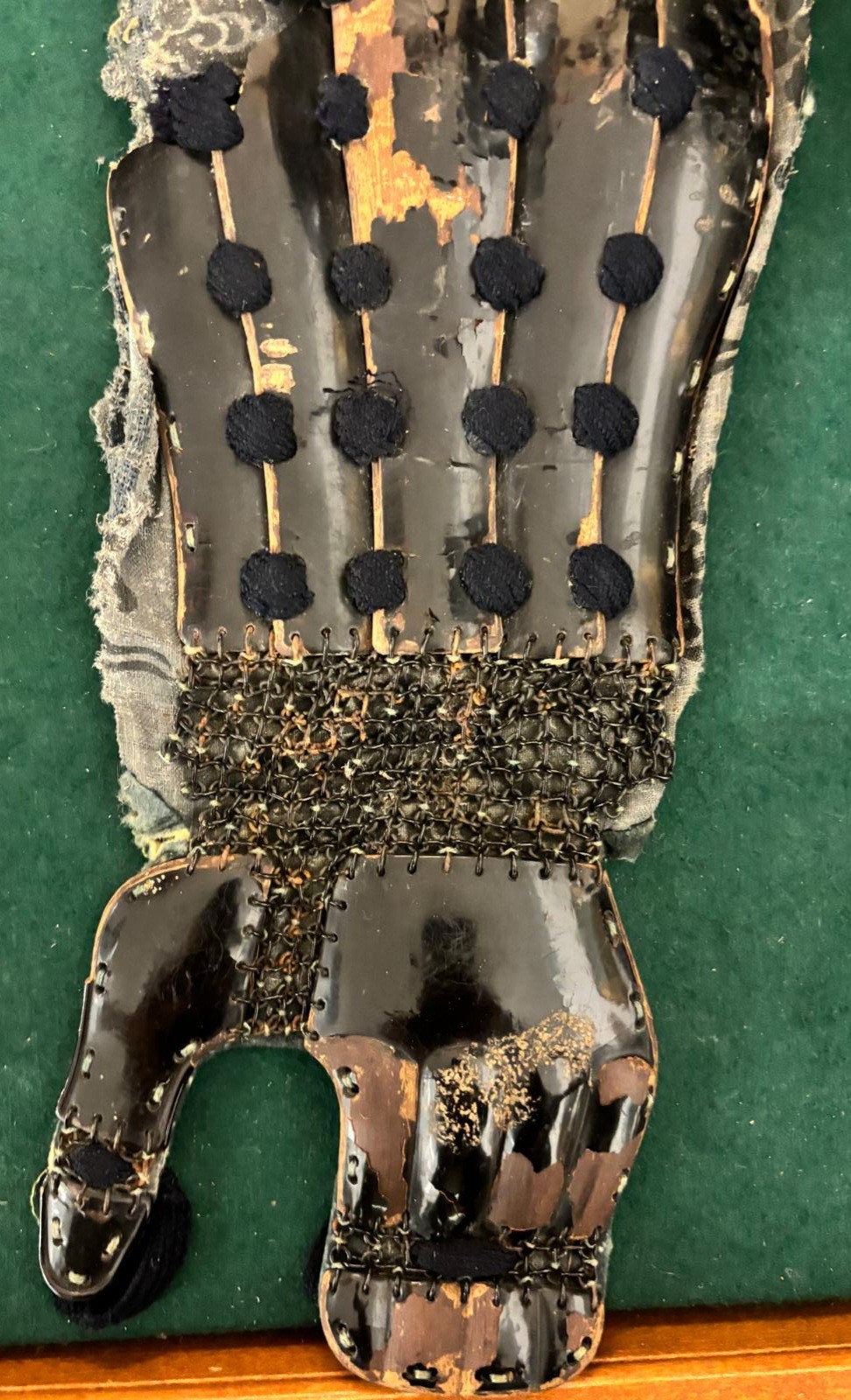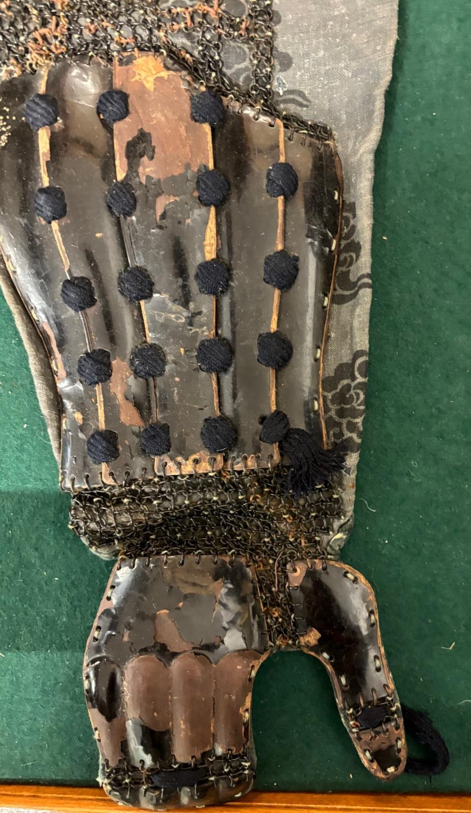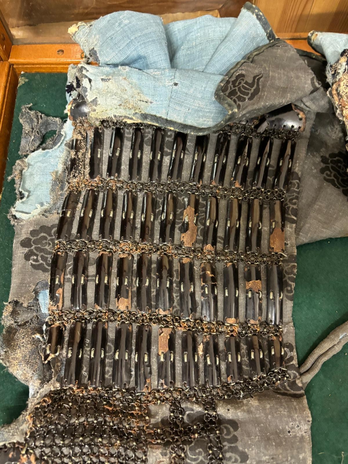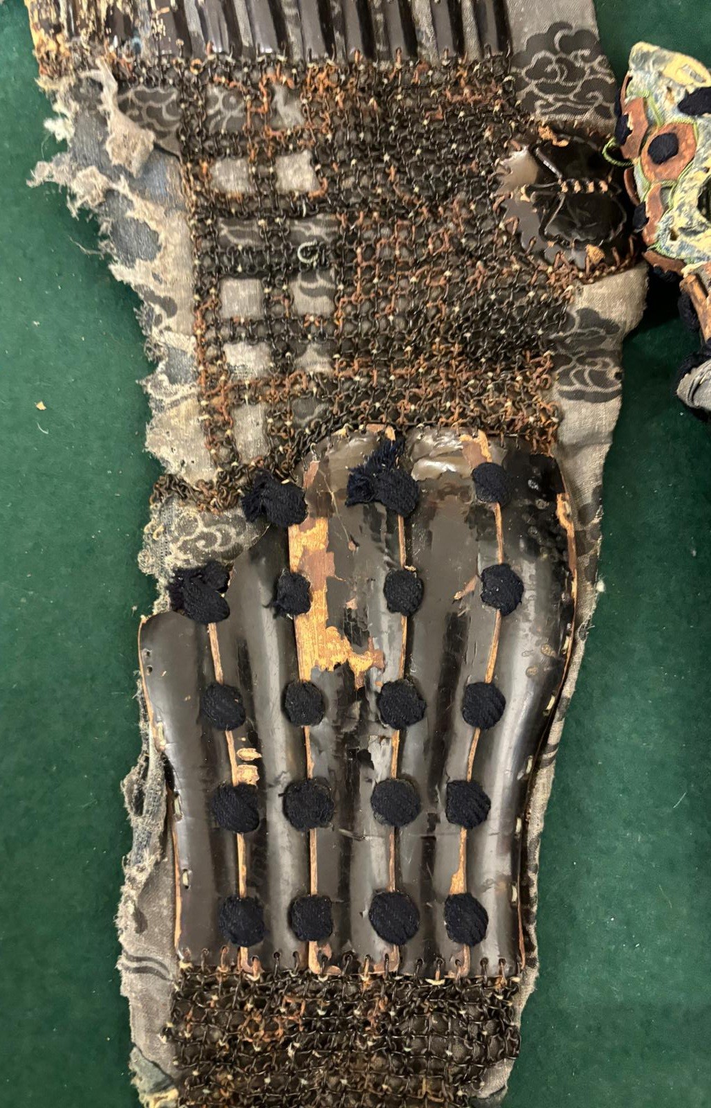 Antique Japanese Samurai part armour set; Chest and back plate [Do], arm and hand guards [Sode/ Kode], Shin guards [Suneate] and other piece [Haidate]. Age related wear- see images.
