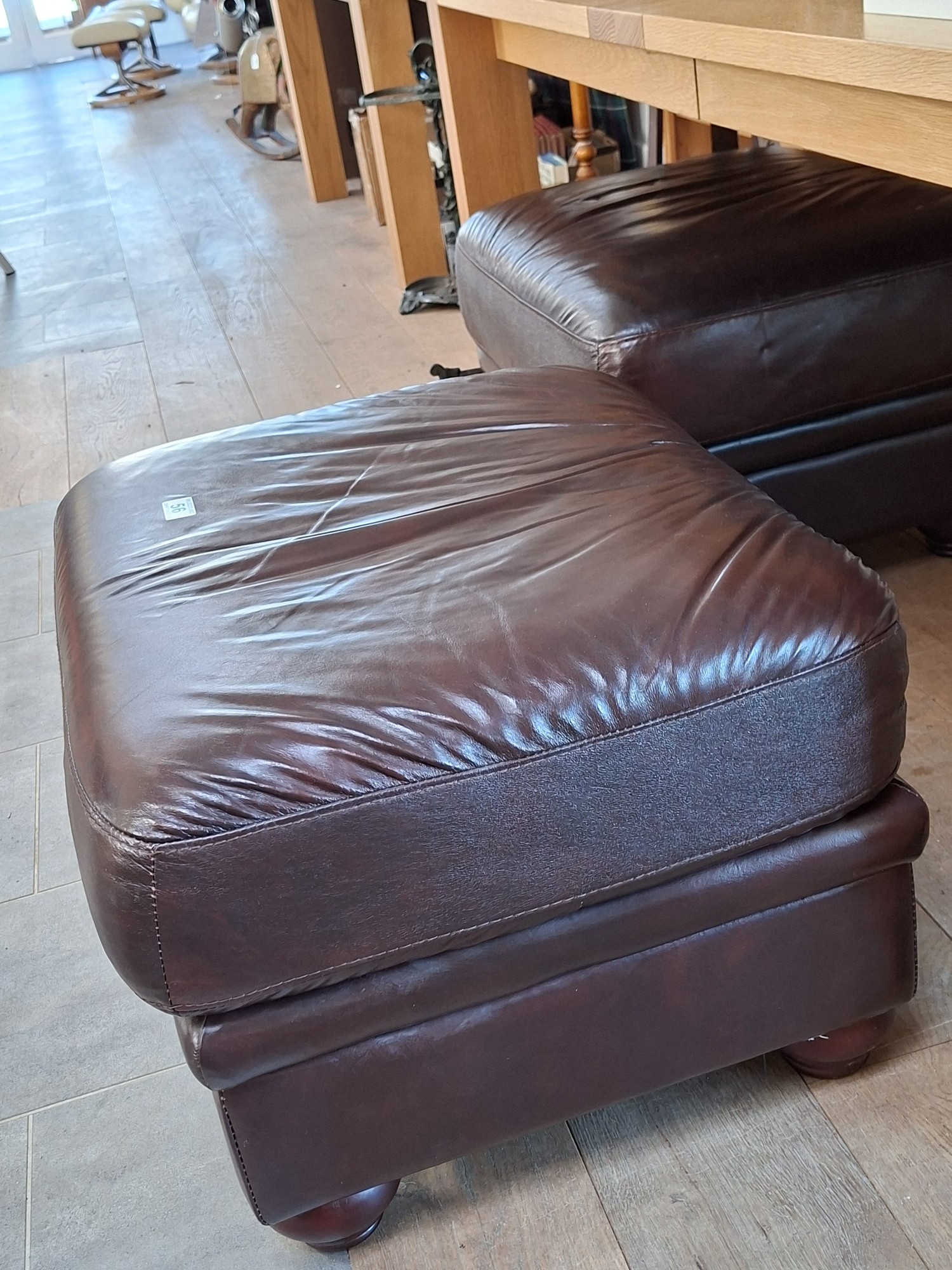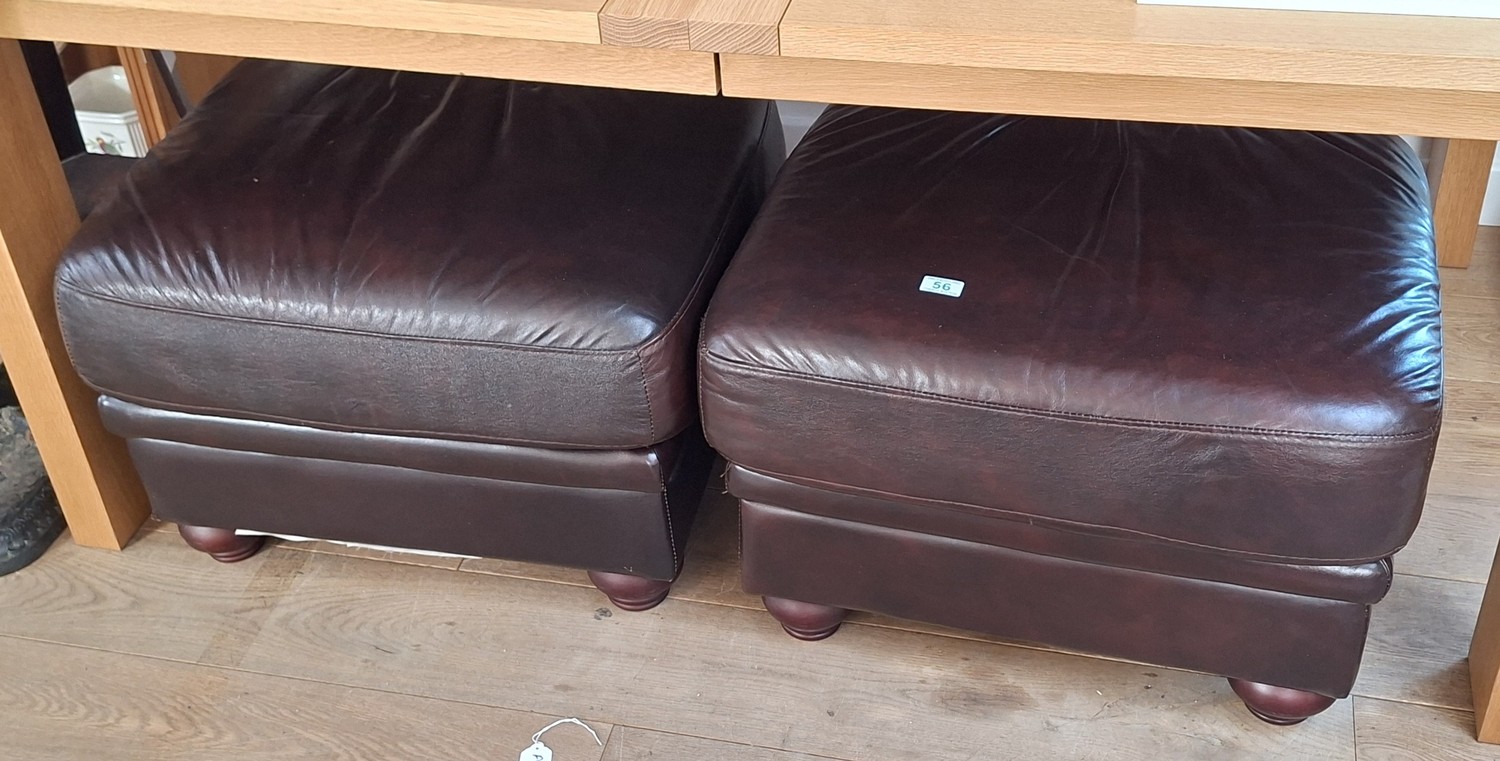 Pair of leather large footstools 68cm W each approx.