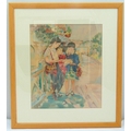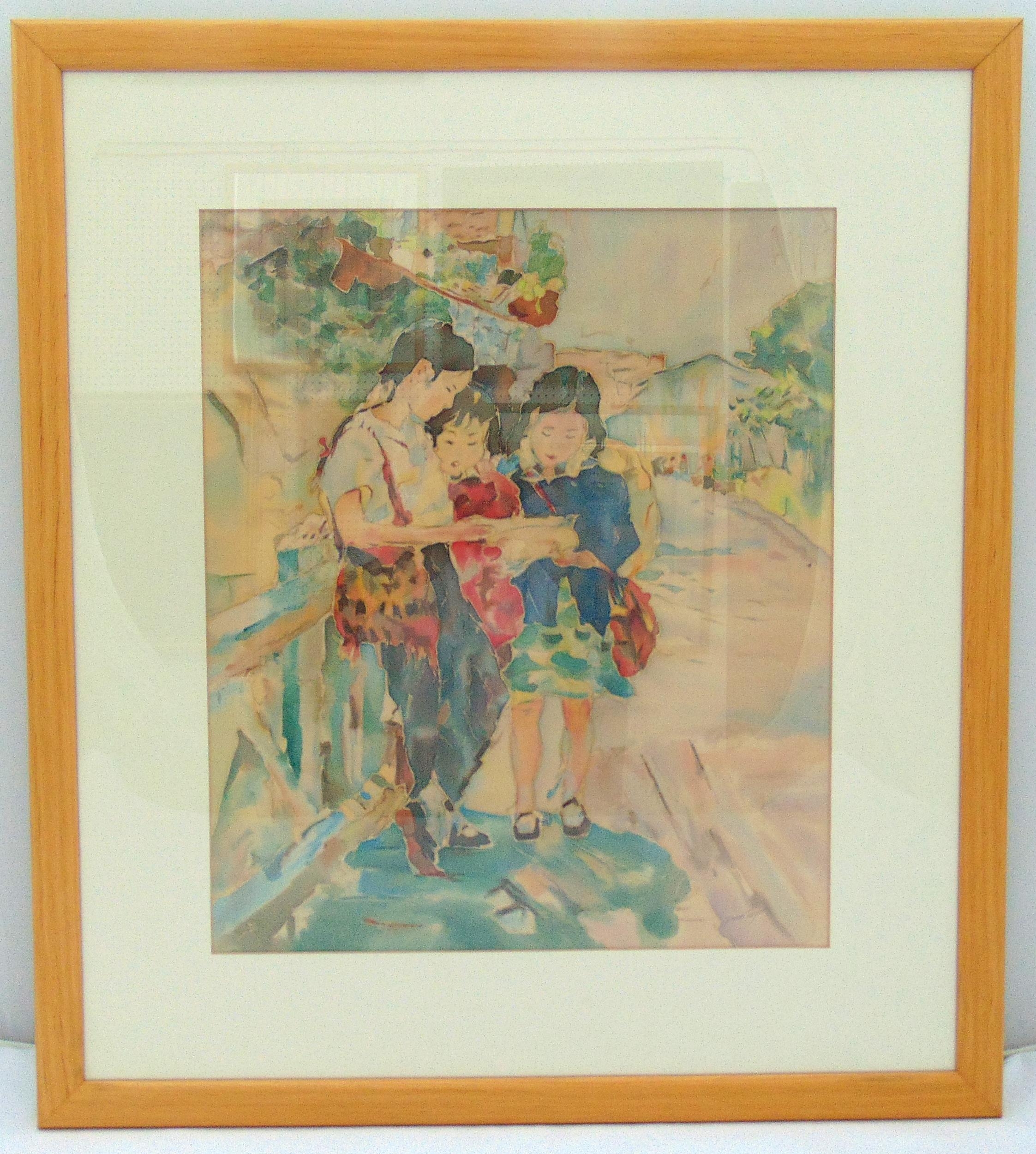 Diane Taylor framed and glazed watercolour on silk titled Chinese Schoolgirls, signed bottom right, dated 1992, 46.5 x 39cm