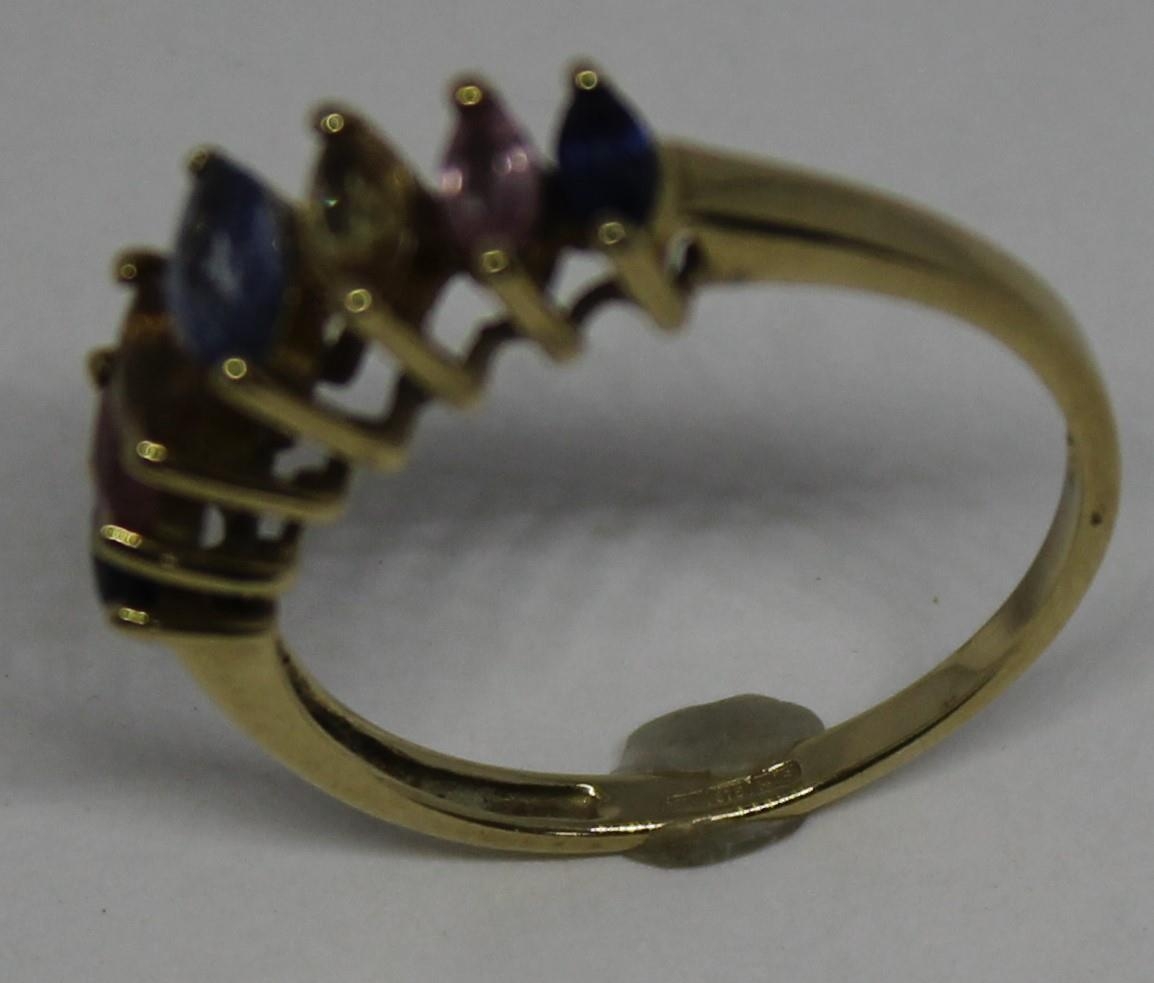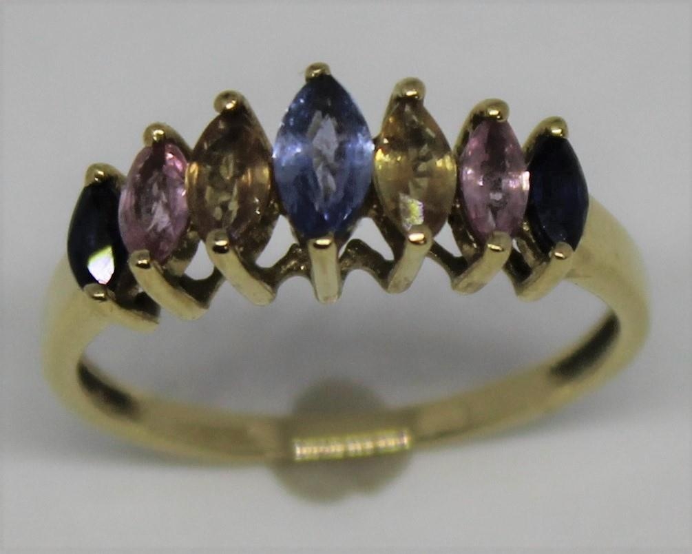 9ct GOLD RING SET COLOURED STONES (2.1g) - SIZE 0