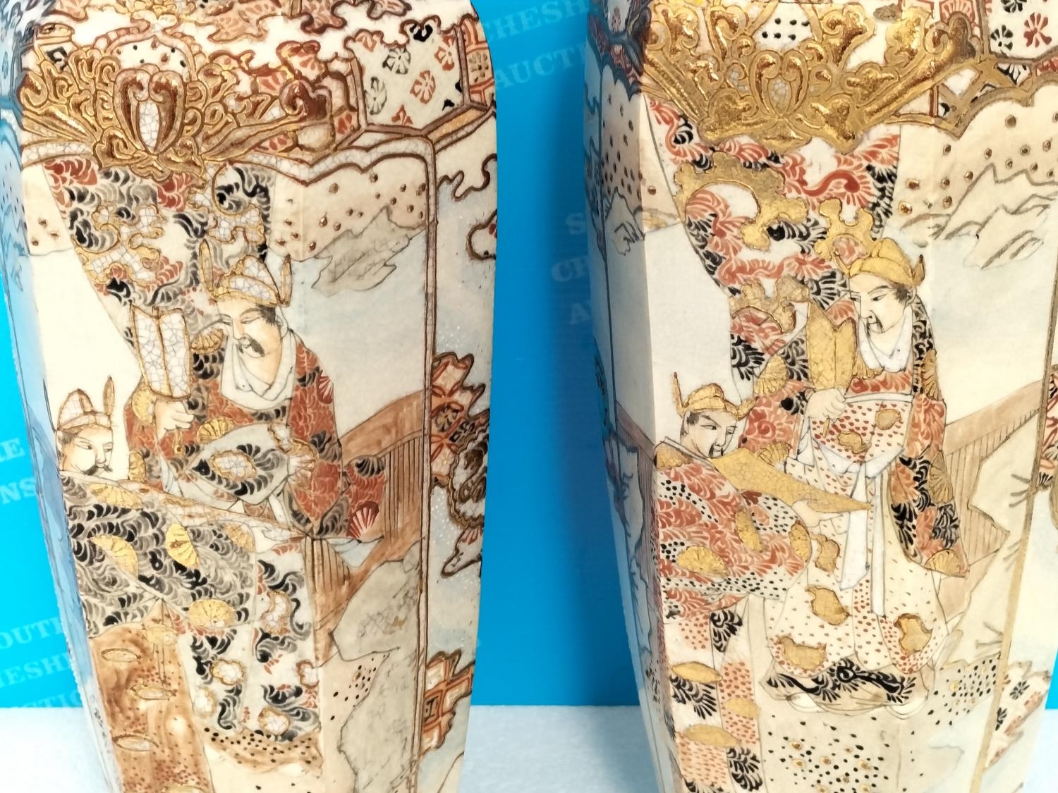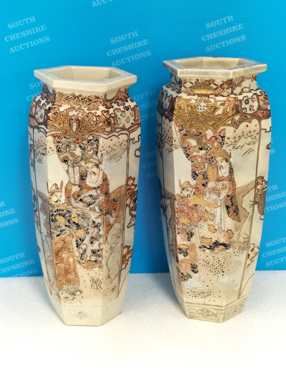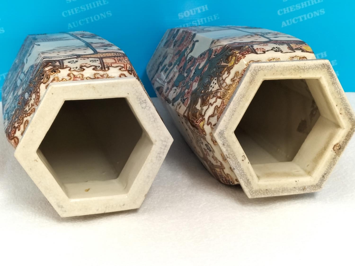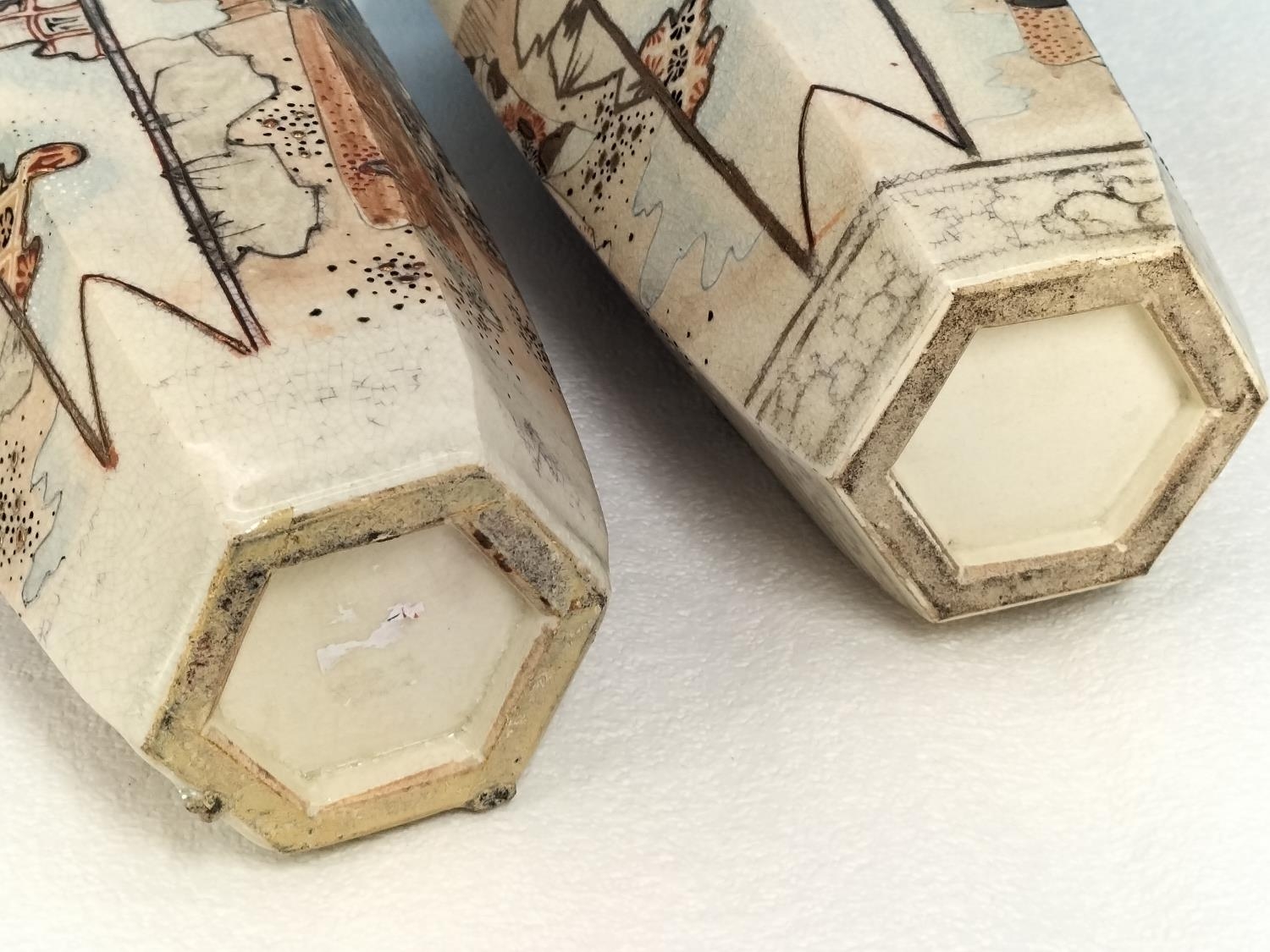 Pair of Early 20th Century Japanese Satsuma Hexagonal 32cm V...