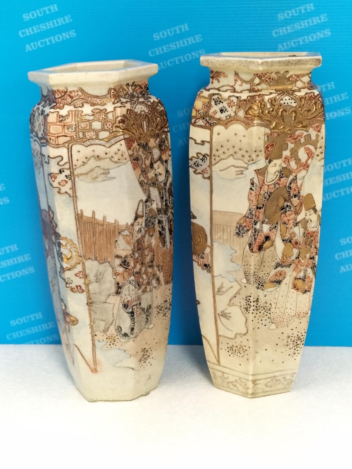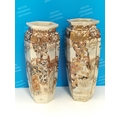 Pair of Early 20th Century Japanese Satsuma Hexagonal 32cm Vases.