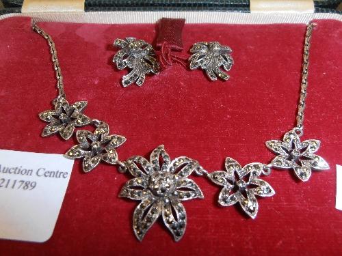 A VINTAGE SILVER AND MARCASITE NECKLACE AND EARRING SET