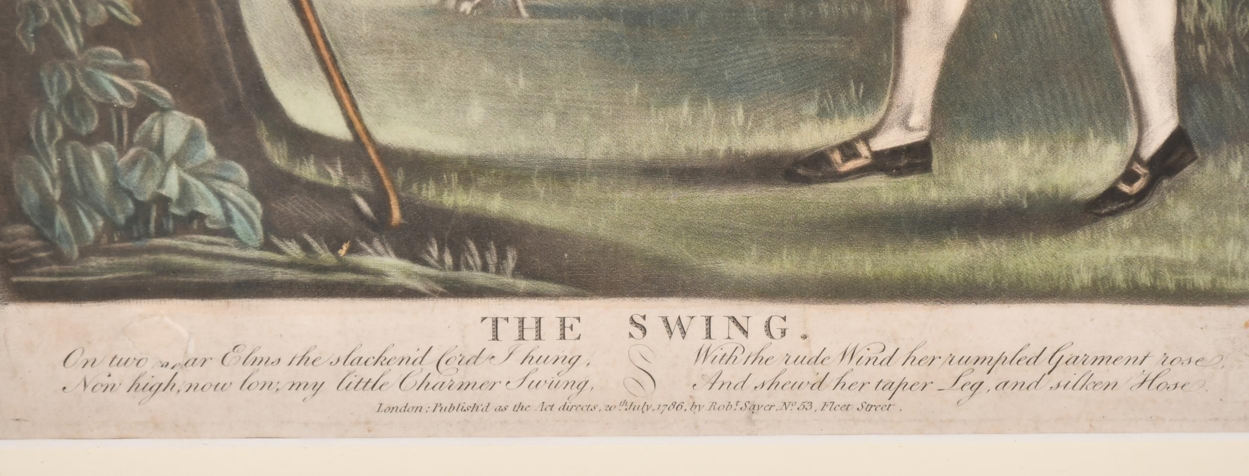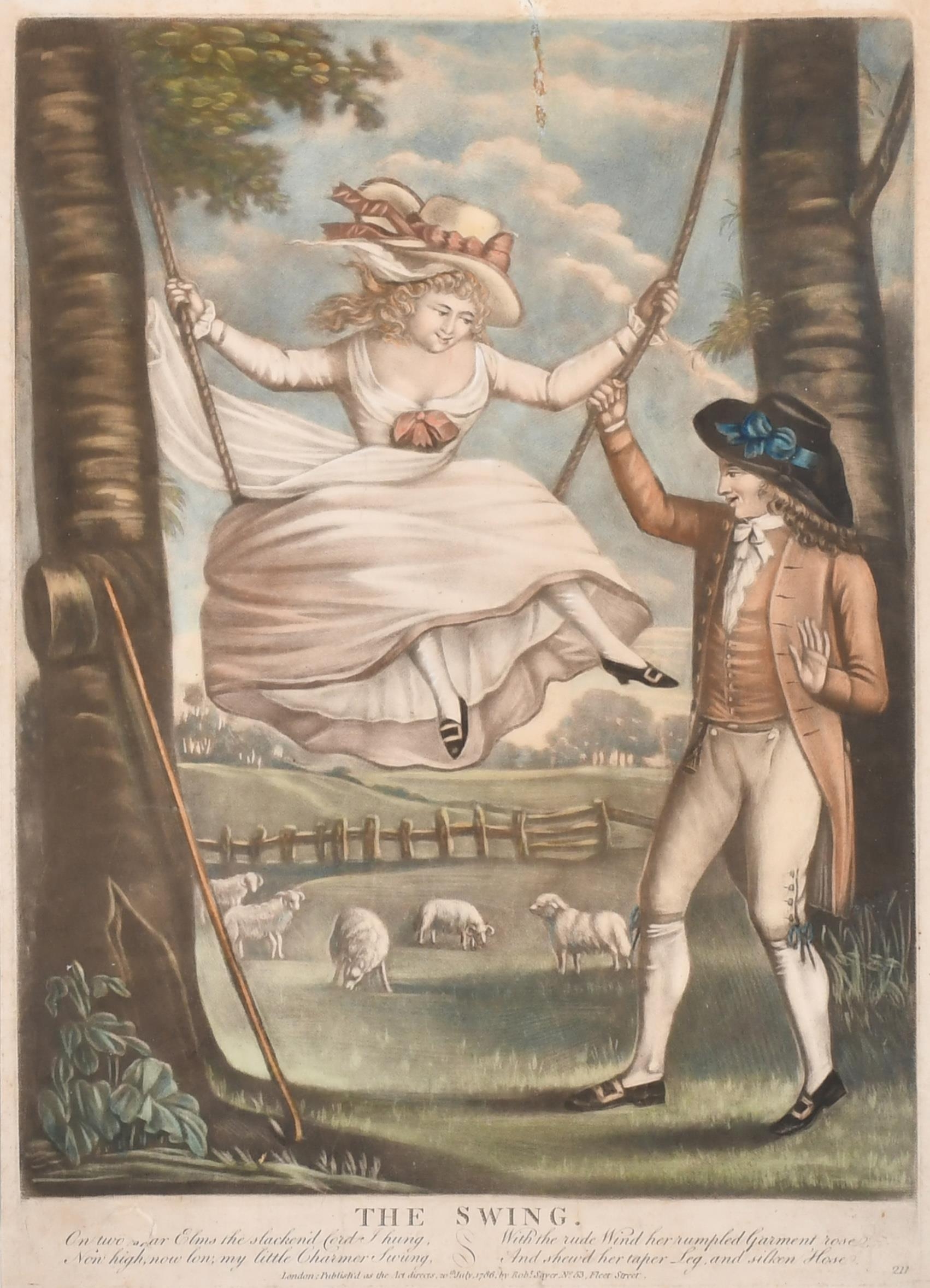 18th Century English School. "The Swing", Etching published by Sayer, Overall 14" x 10" (35.5 x 25.4cm)