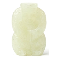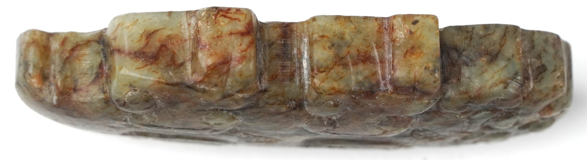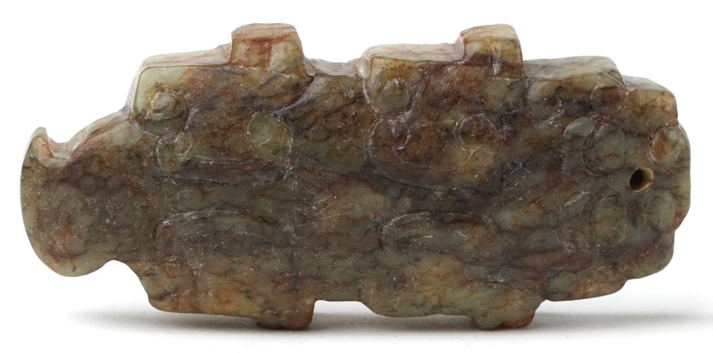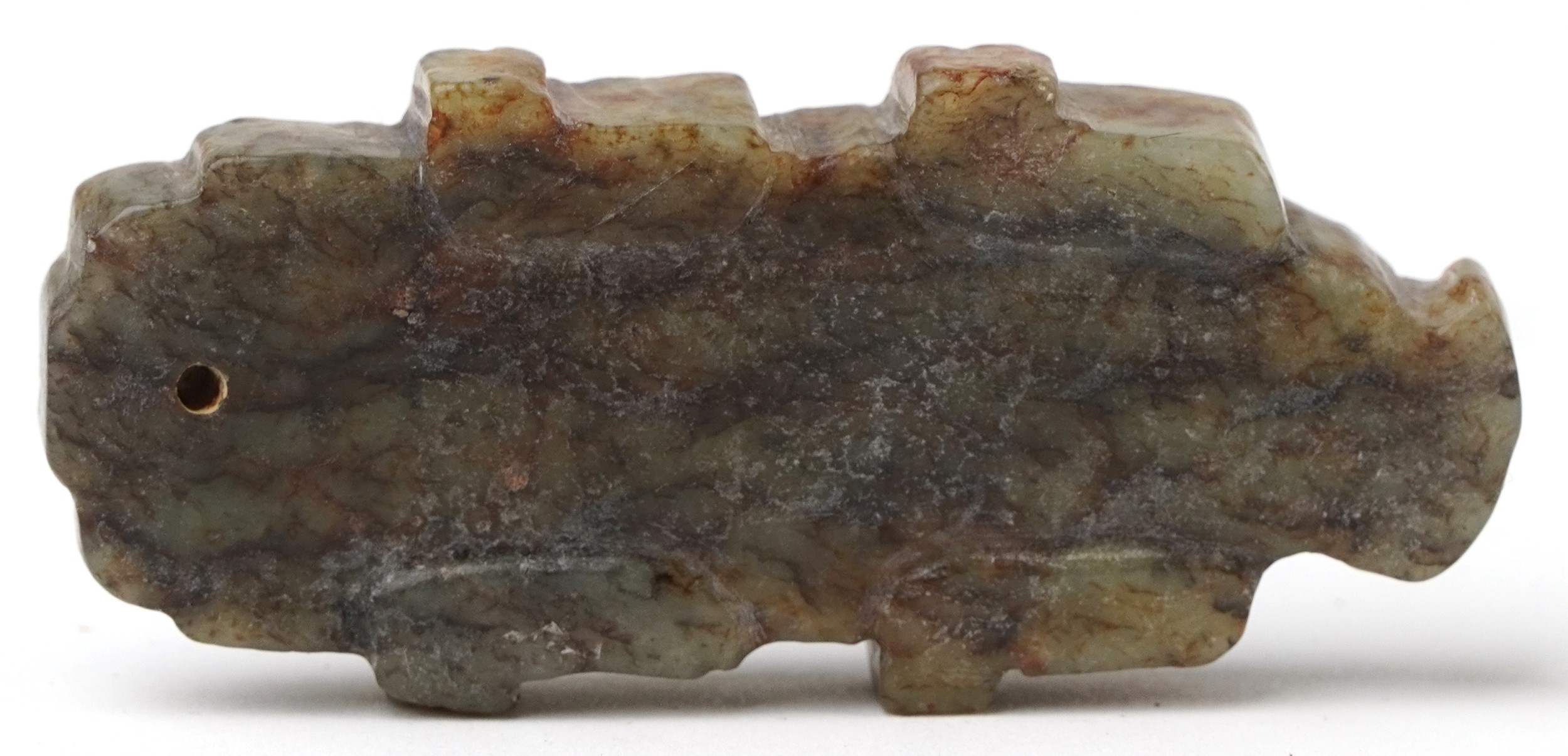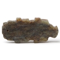 A Chinese green stone carving of an alligator, 6.9cm high, 5...