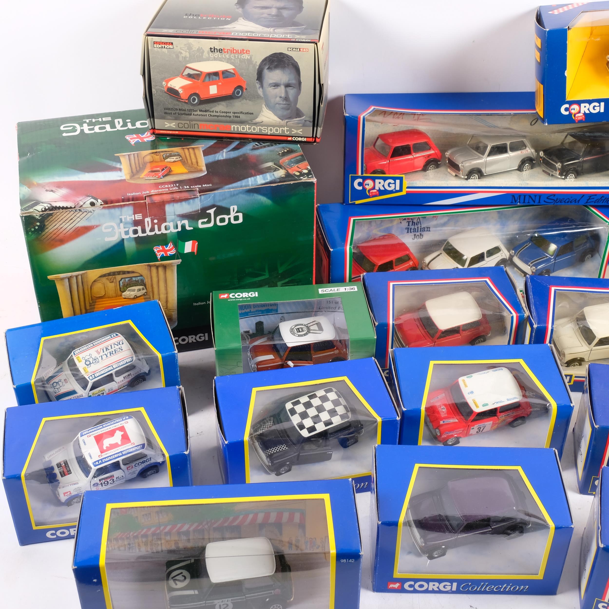 19 various boxed sets of Corgi Minis, including The Italian Job Special Edition, set of 3 in red white and blue, a Rally Mini, a Monte Carlo Mini, etc, all in original boxes