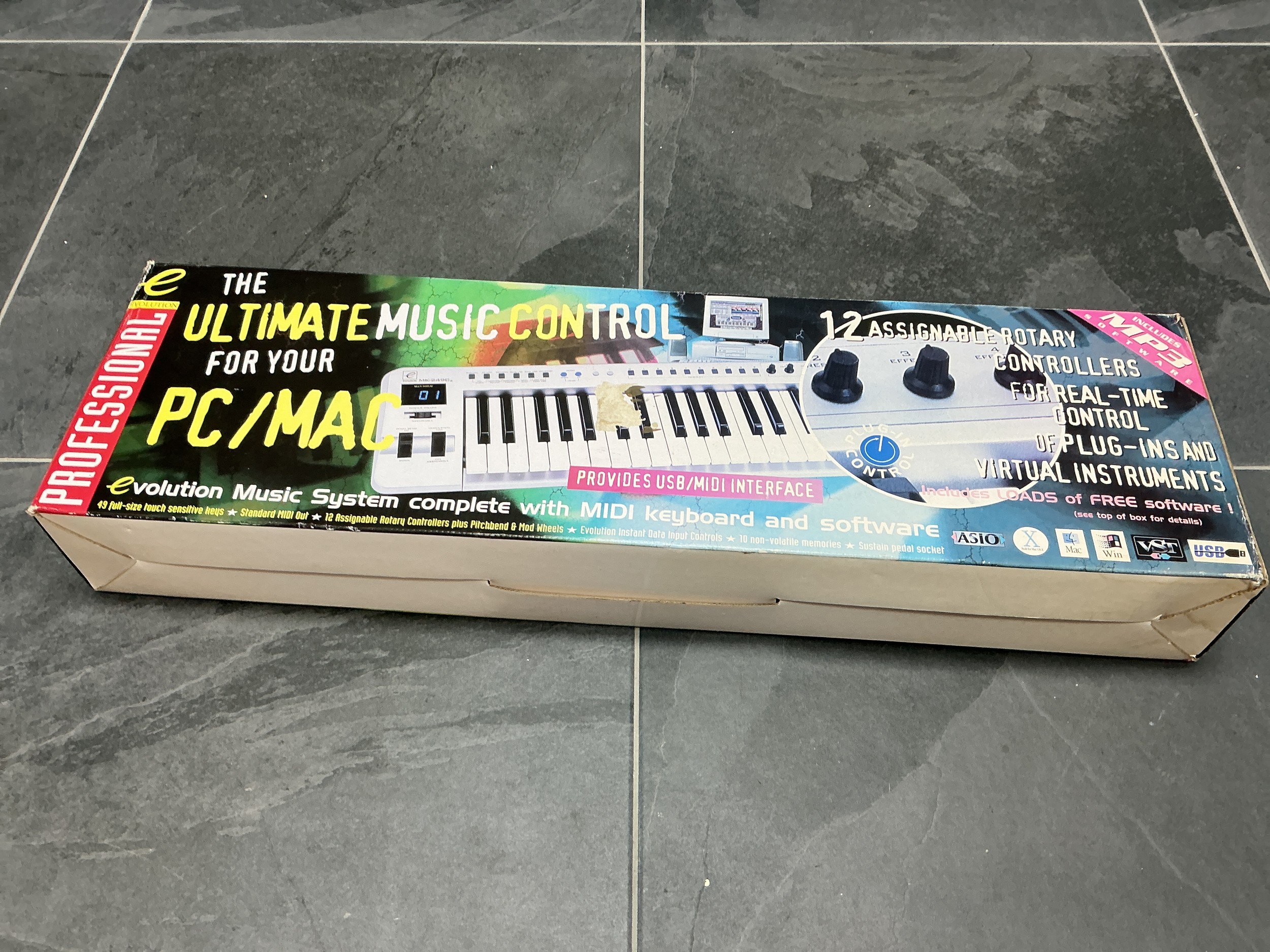 Boxed Professional Evolution PC/MAC Keyboard complete with Patch Leads, Disc and Instruction Manual, untested item