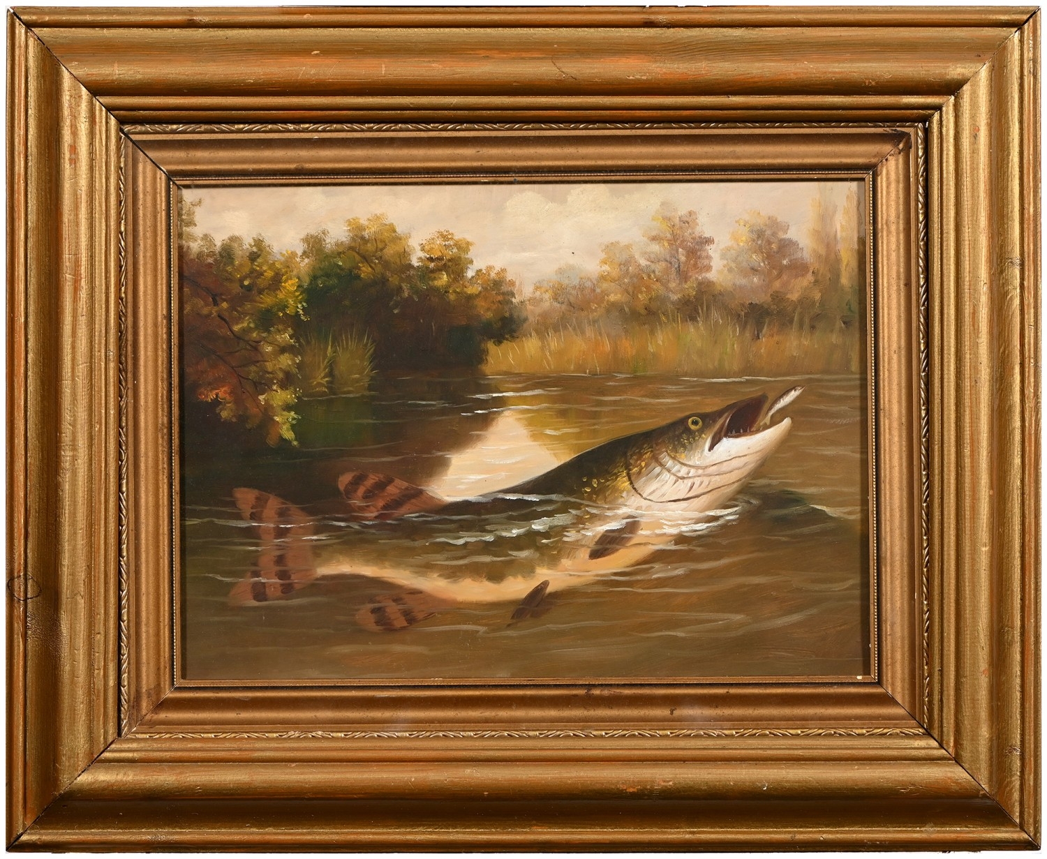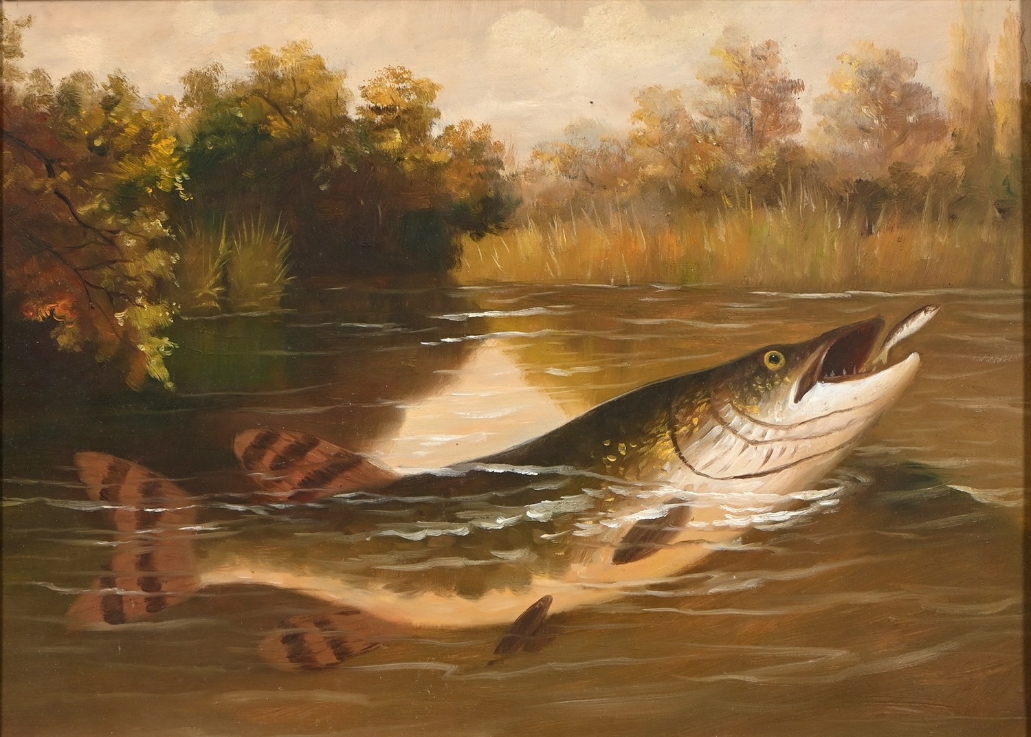 Arthur Roland Knight (1845- 1921) - Study of a Pike, attributed and inscribed verso, oil on canvas, 28.5 x 40.5cm