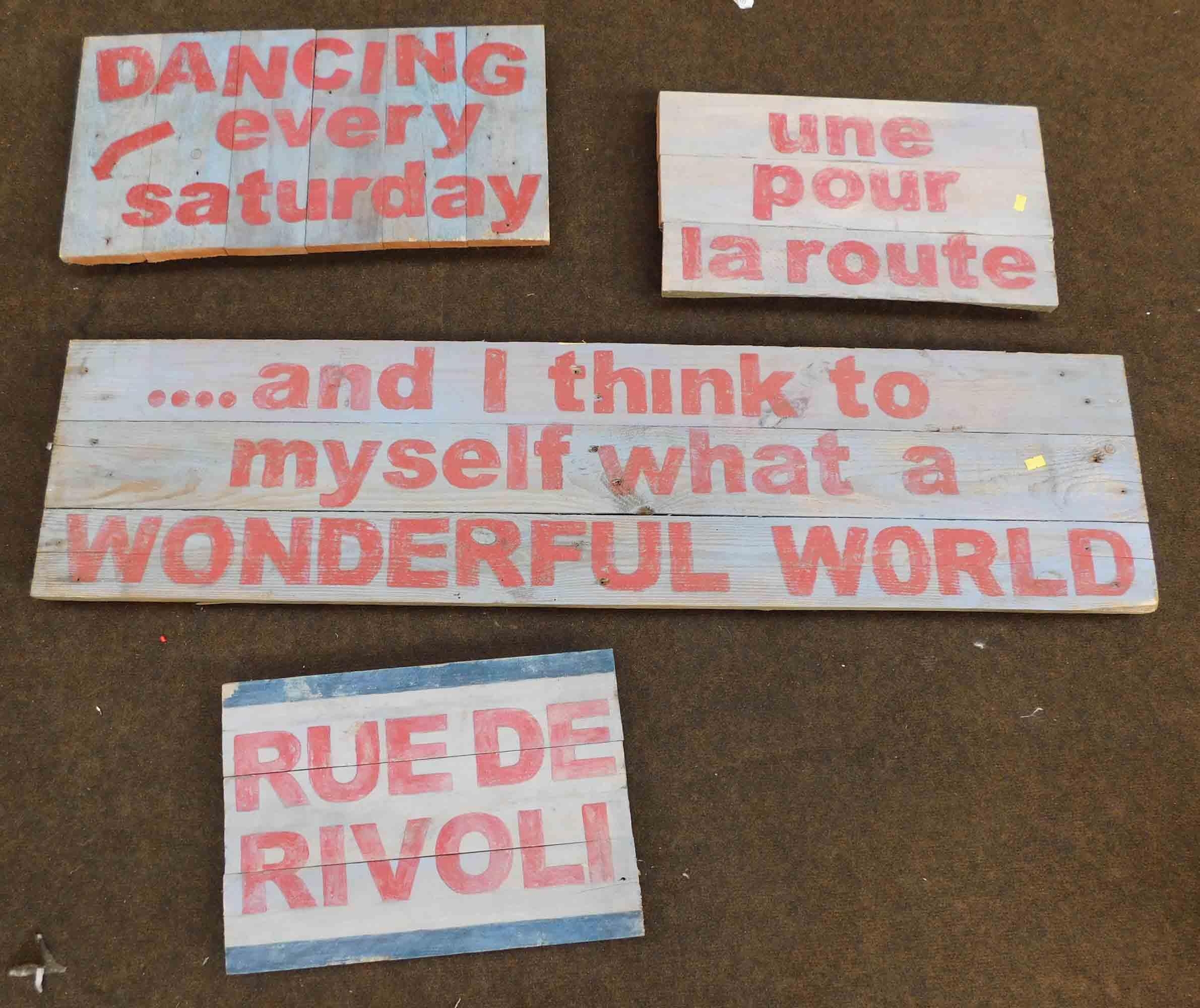 4x Wooden wall signs - largest approx. 48" wide