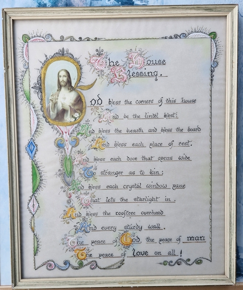A vintage framed religious blessing.