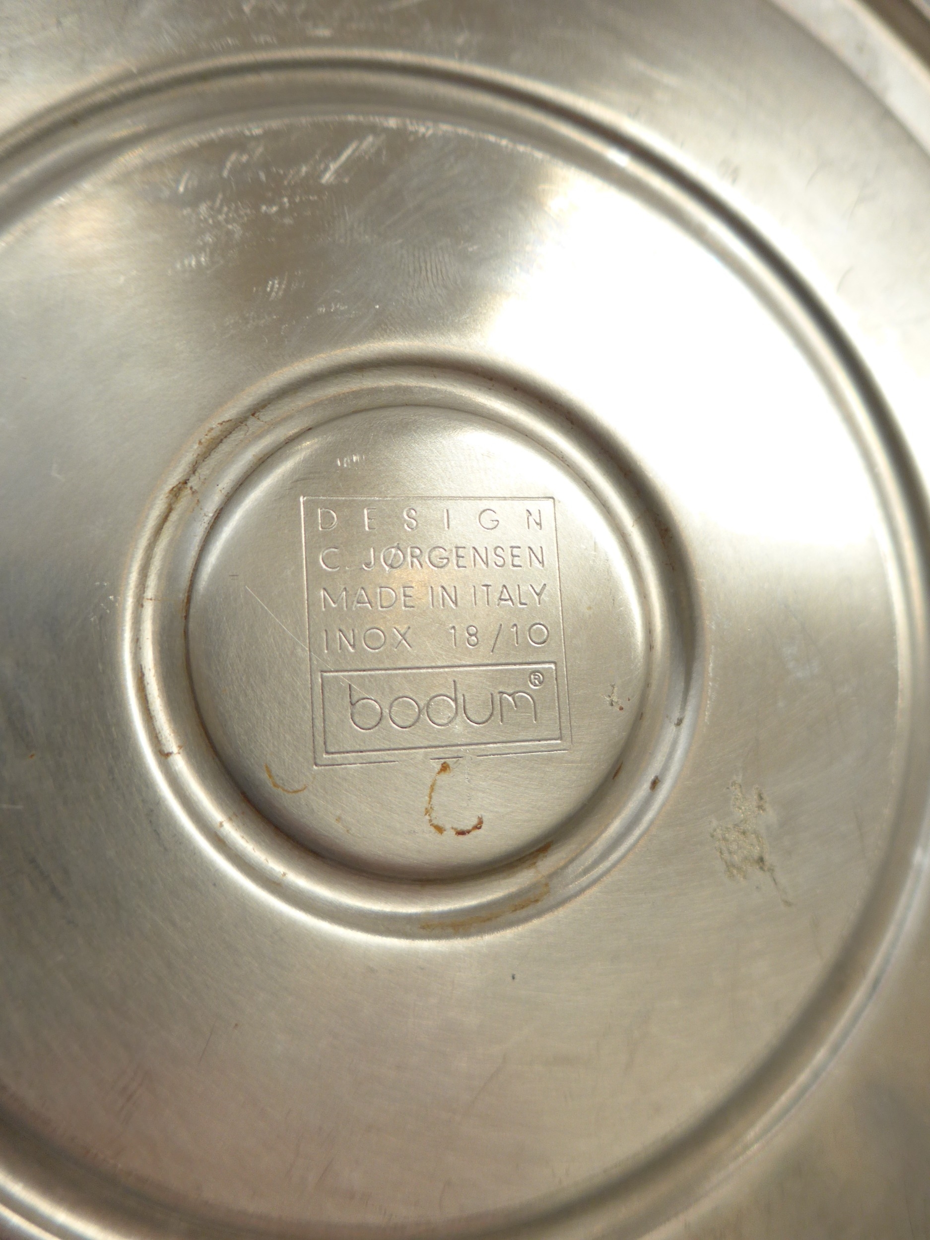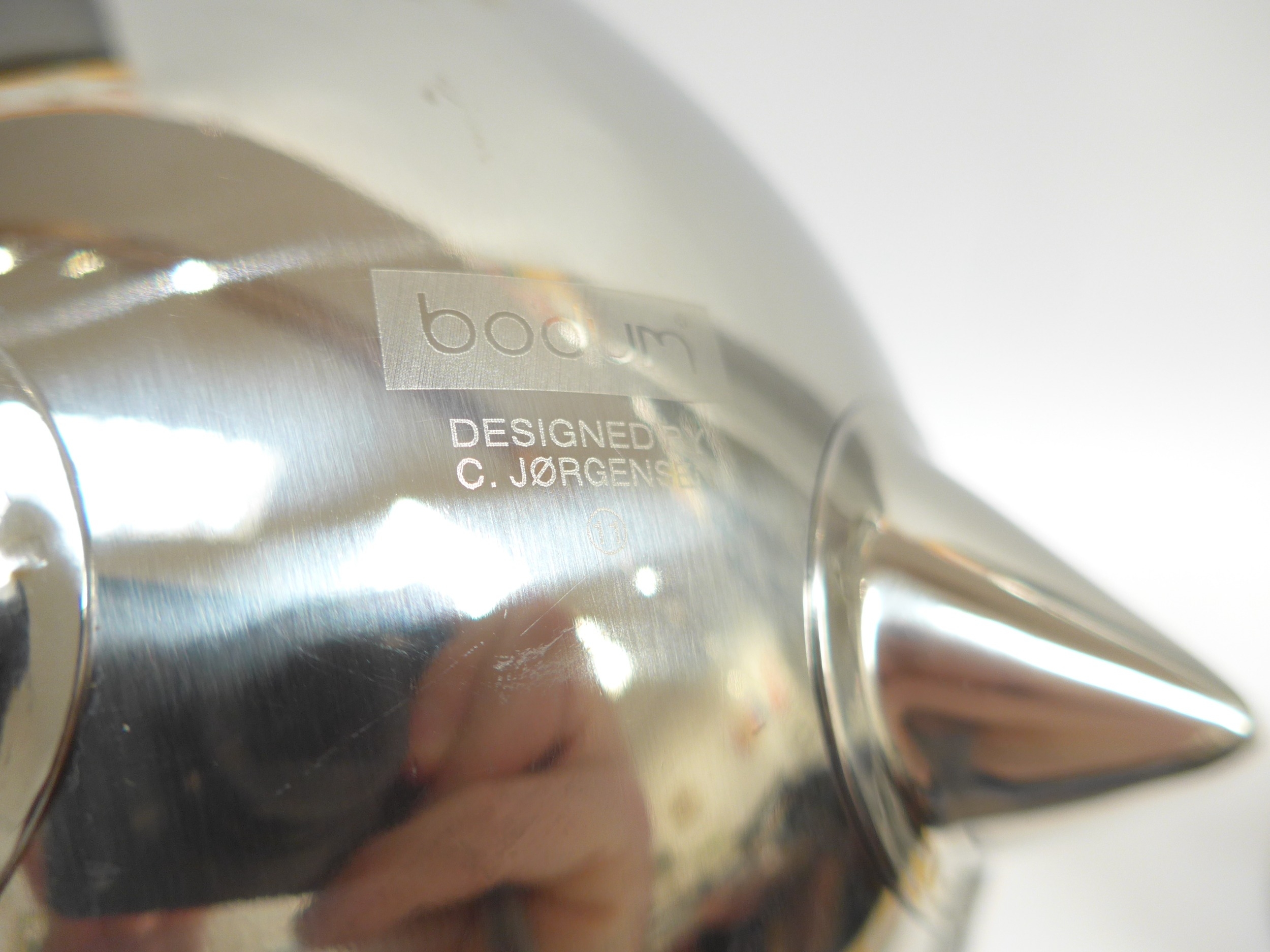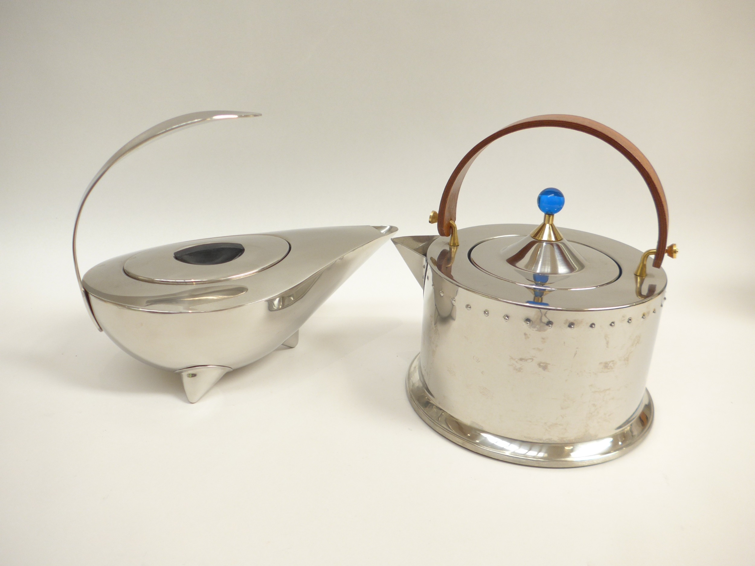 A Bodum Ottoni stove kettle designed by C. Jorgensen, made in Italy, 20.5cm high including handle, together with a Bodum tea pot by the same designer, 20cm high. (2)