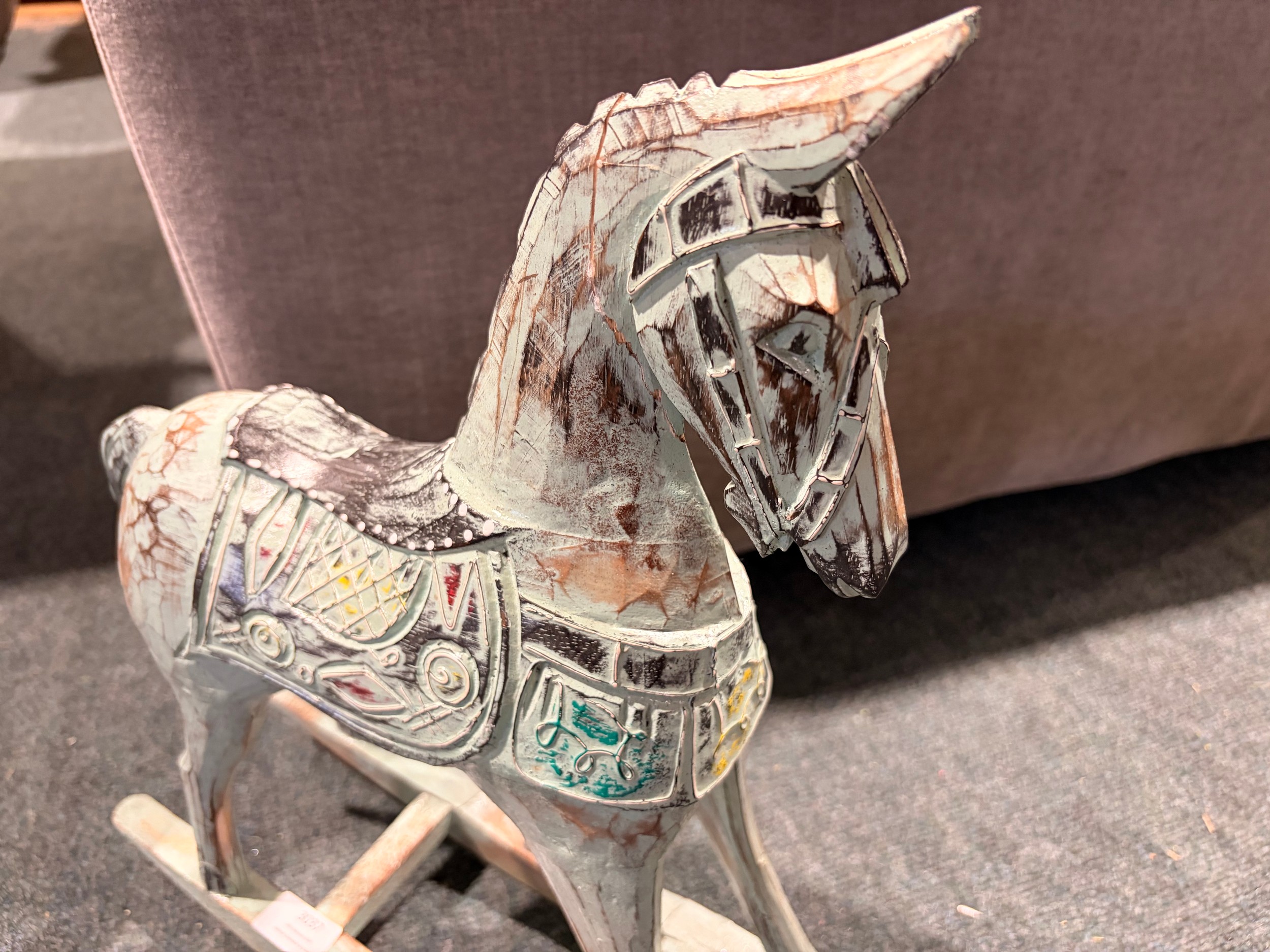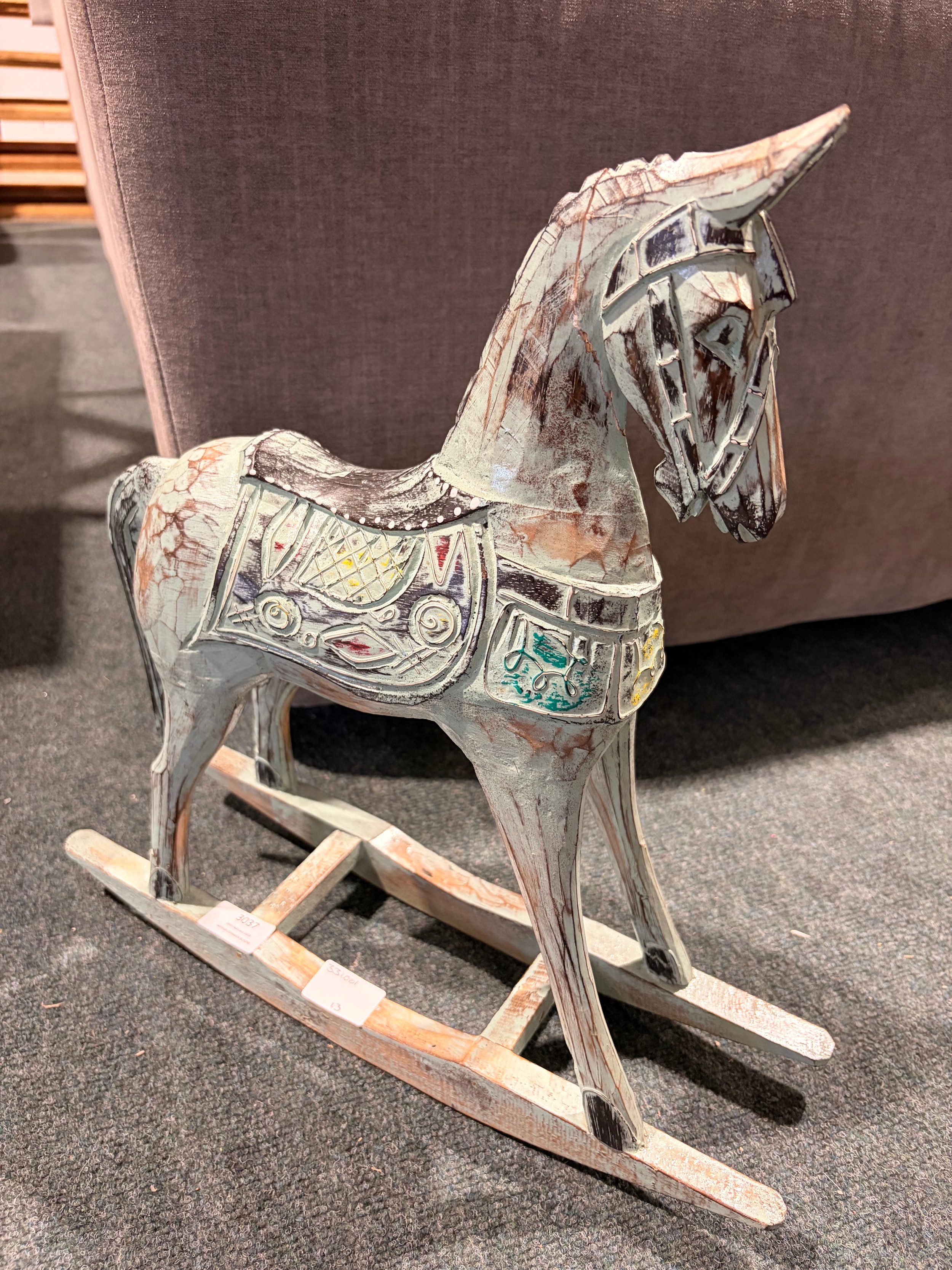 A duck egg blue painted rocking horse decoration